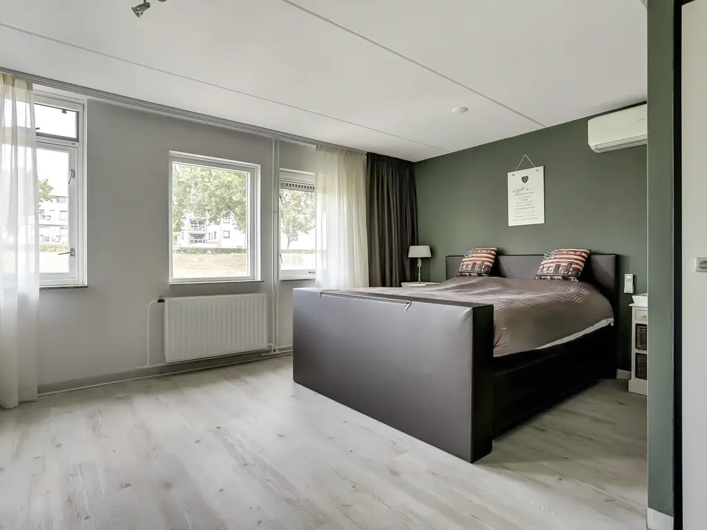 De slaapkamer aan de voorzijde heeft toegang tot een zonnig balkon.