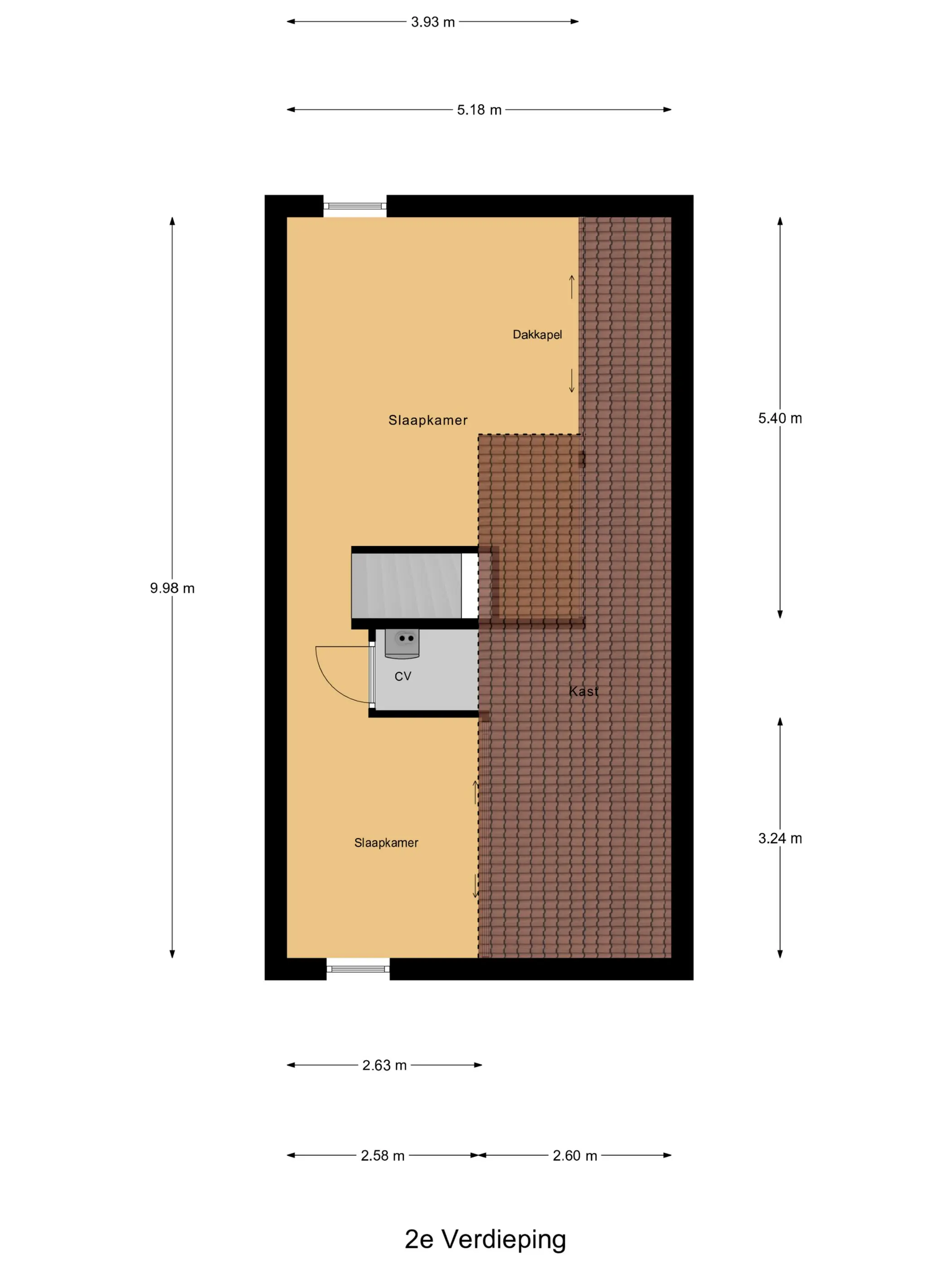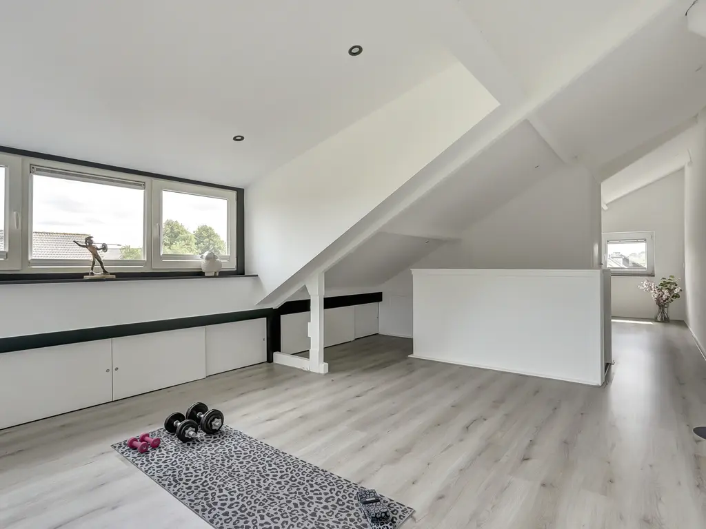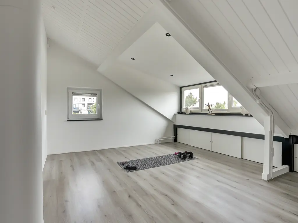 Ruime zolderverdieping met mogelijkheid voor 2 slaapkamers, waarvan 1 met een kunststof dakkapel.