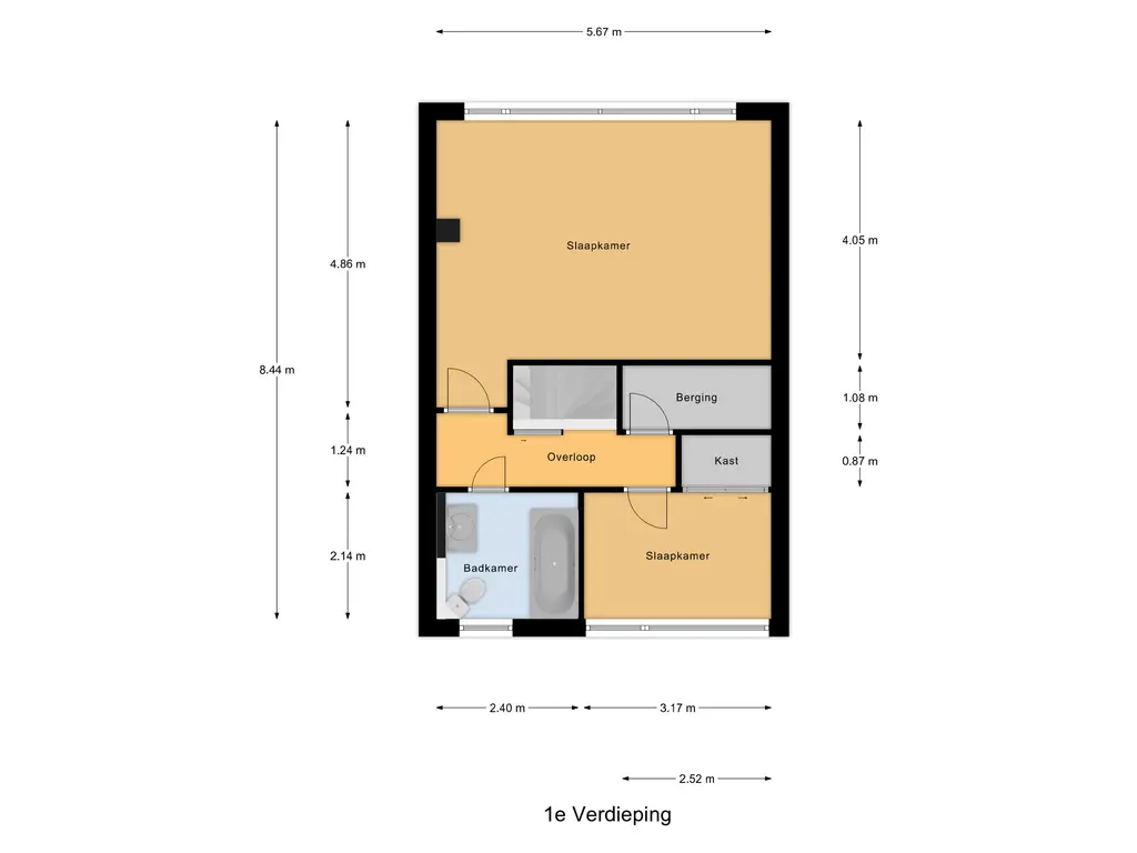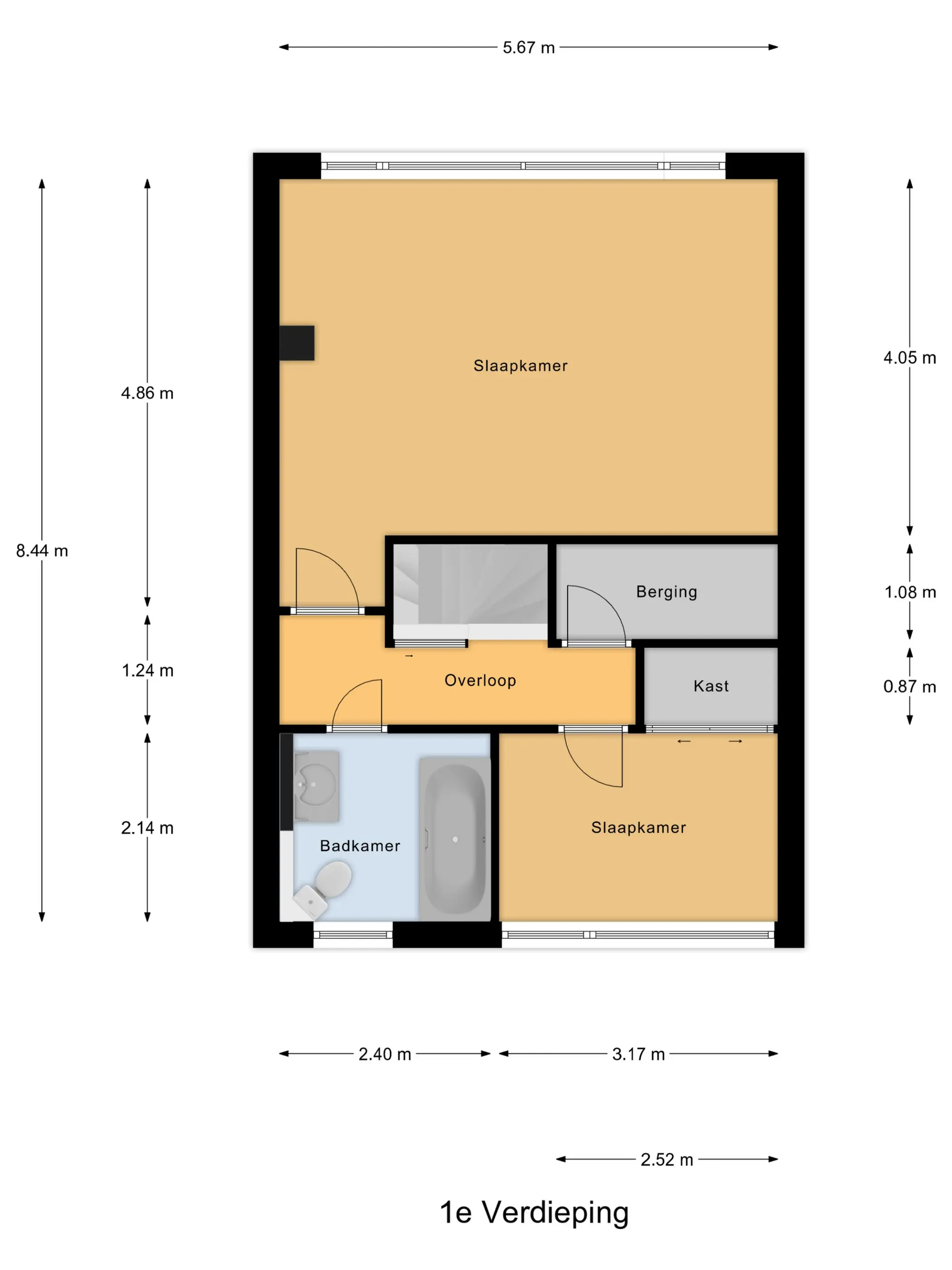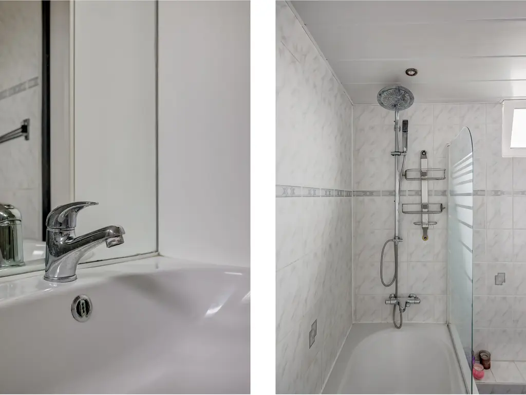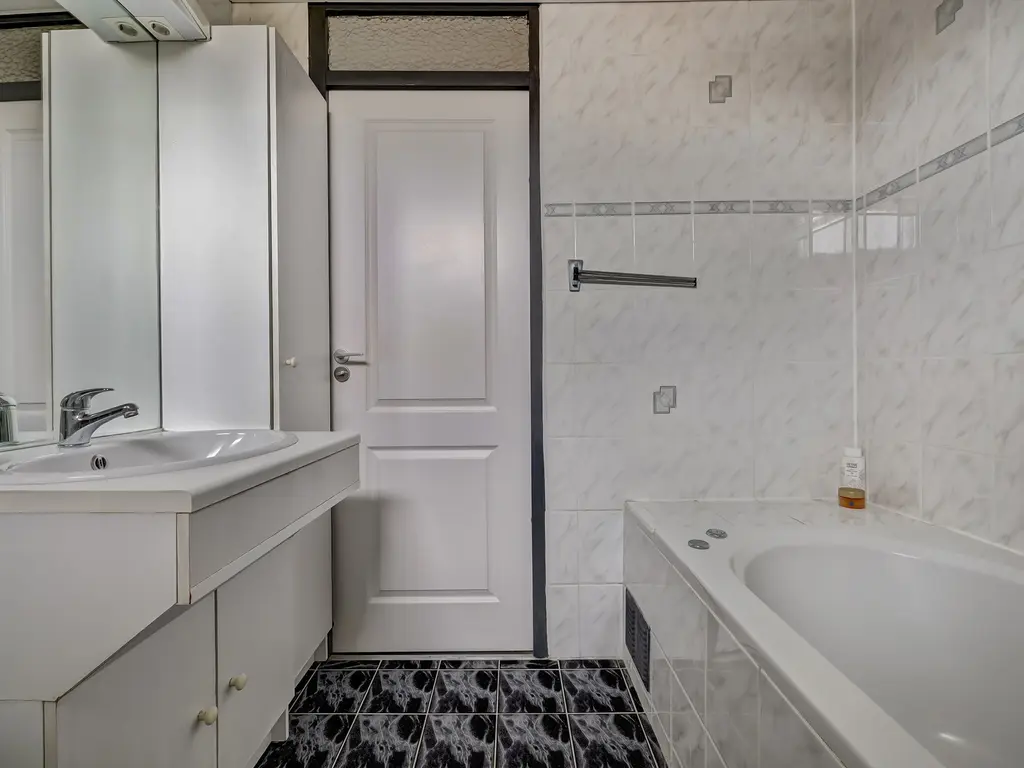 1e verdieping: Overloop met toegang tot 2 ruime slaapkamers met rechte geveloptrek. De hoofdslaapkamer beschikt over een airco en de woning is eenvoudig terug te brengen naar 3 slaapkamers. De volledig betegelde badkamer is uitgerust met een whirlpool, wastafel met meubel en een tweede toilet.