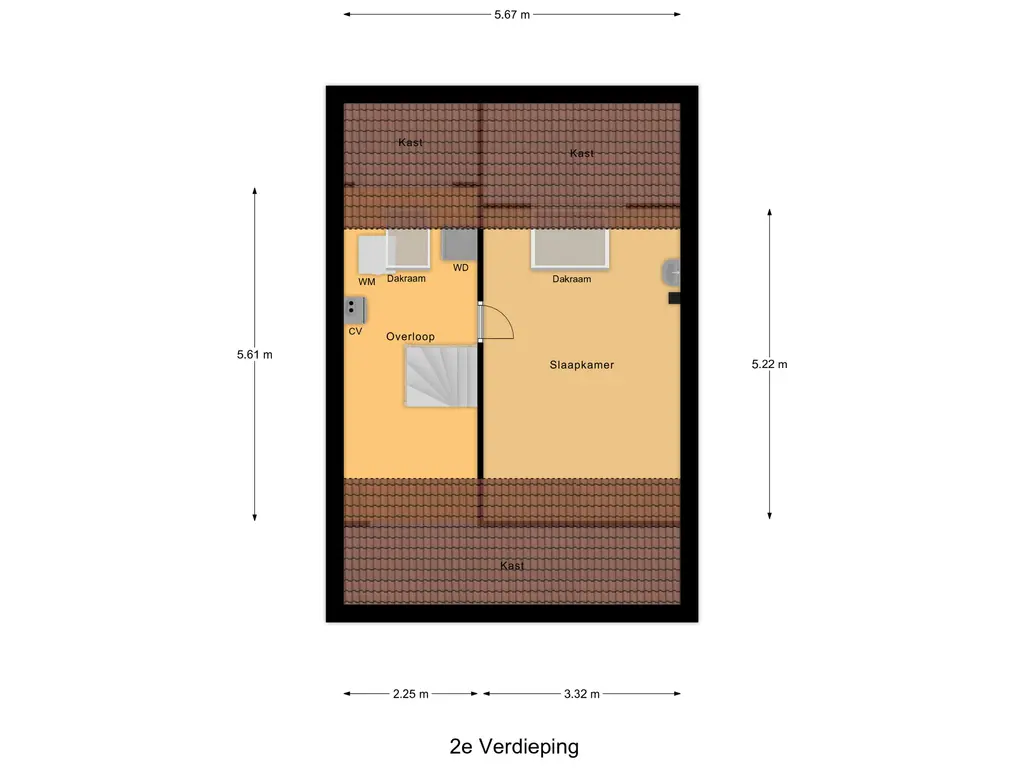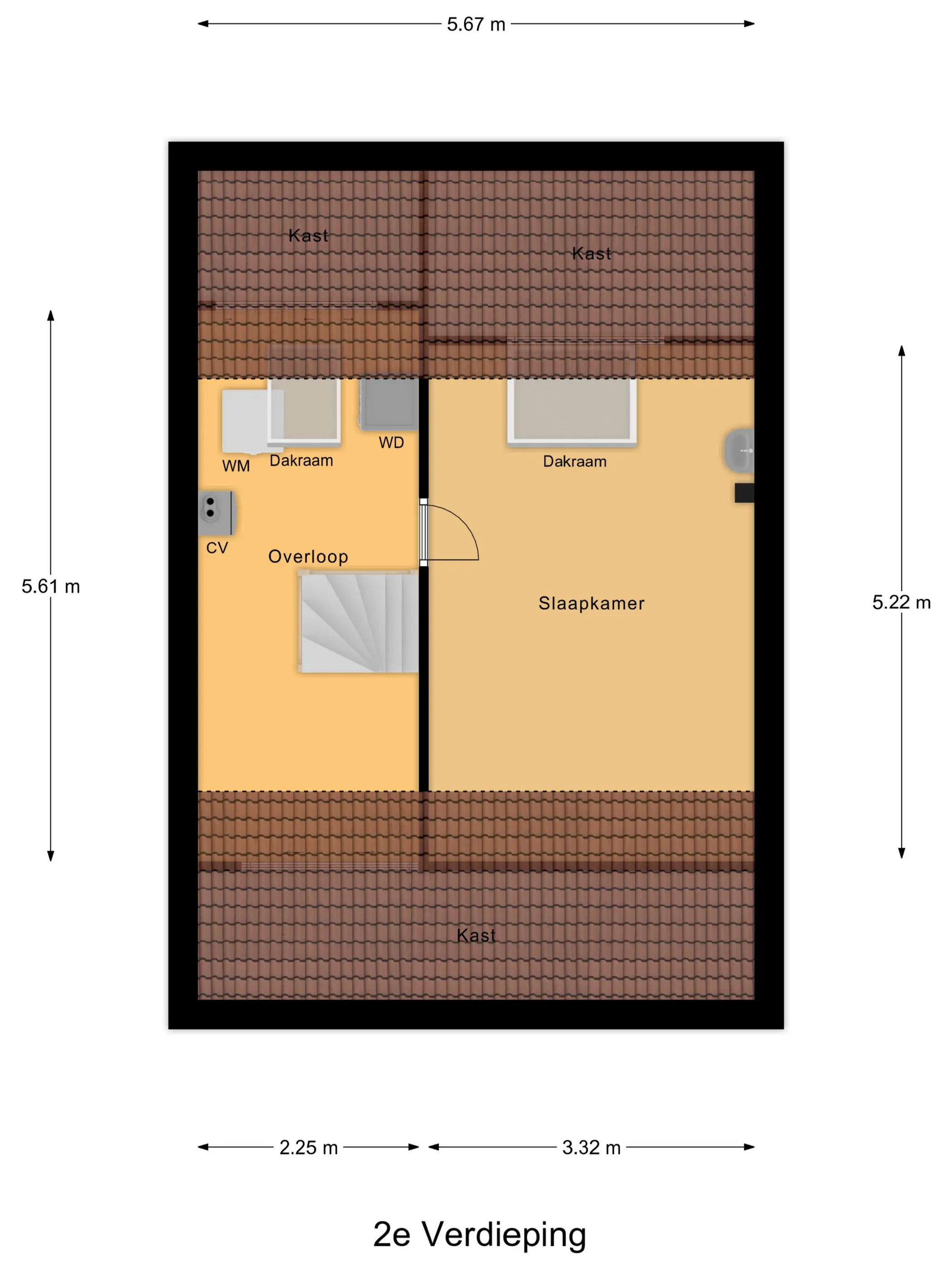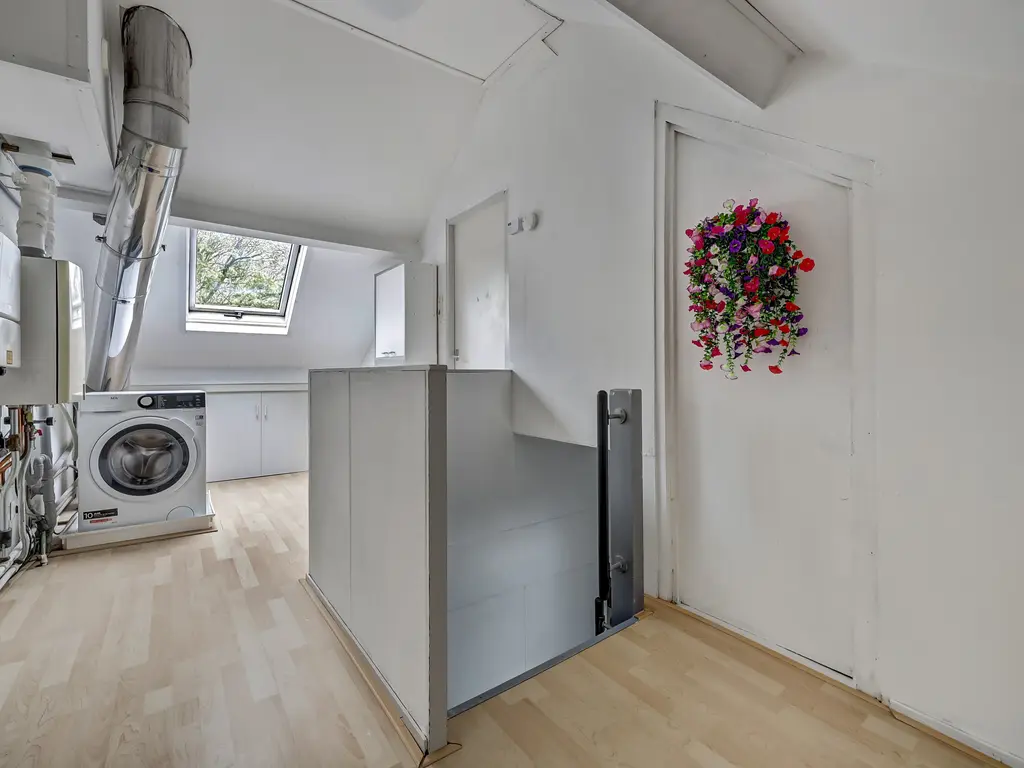 2e verdieping: Voorzolder met CV-combiketel, dakraam en wasmachineaansluiting. Daarnaast bevindt zich hier de 4e slaapkamer met dakraam en laminaatvloer.