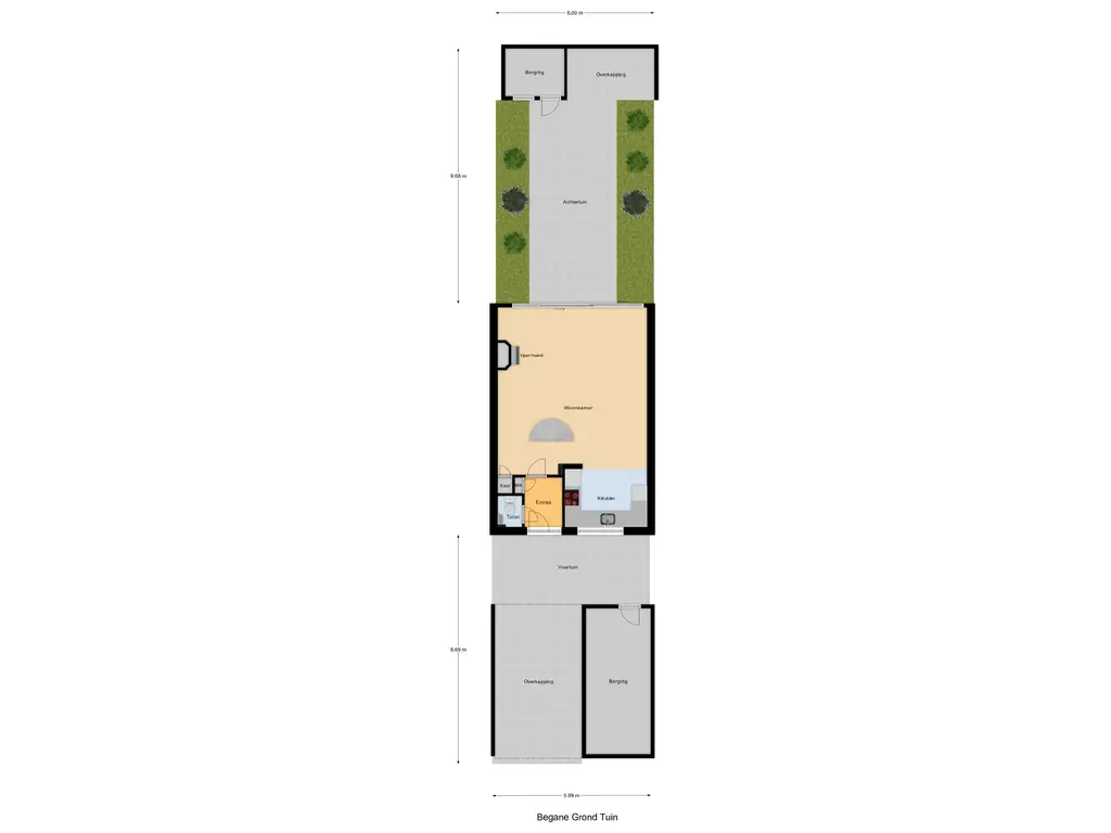 | Tuin | achtertuin met een oppervlakte van 58 m² en is gelegen op het zuiden |