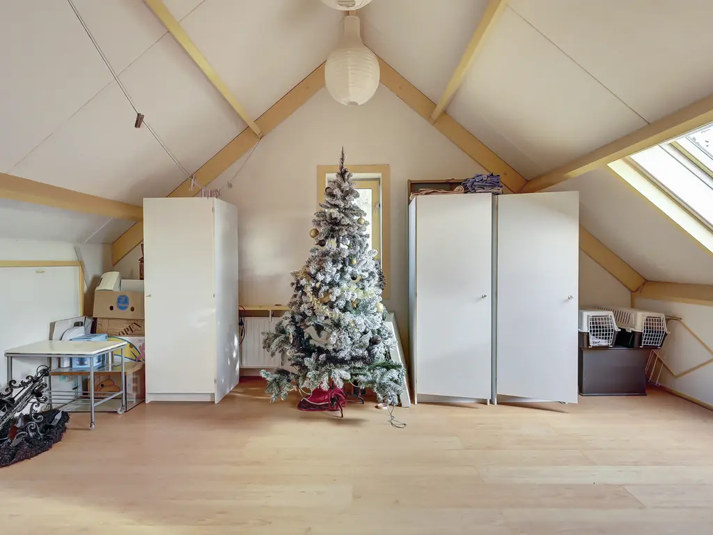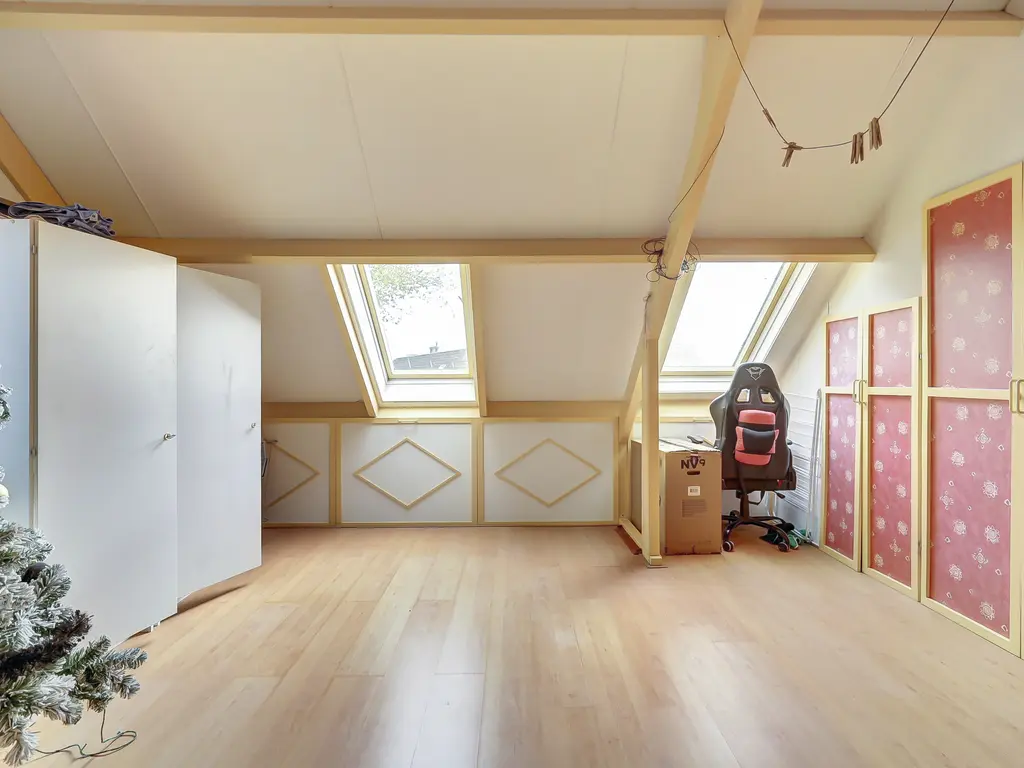 Tweede verdieping: Op de zolder vind je een voorzolder met de opstelling van de CV-ketel (Remeha, 2019) en aansluitingen voor wasmachine en droger. Daarnaast bevindt zich hier de vierde slaapkamer, eveneens voorzien van laminaatvloer en meerdere dakramen, wat zorgt voor veel natuurlijk licht.