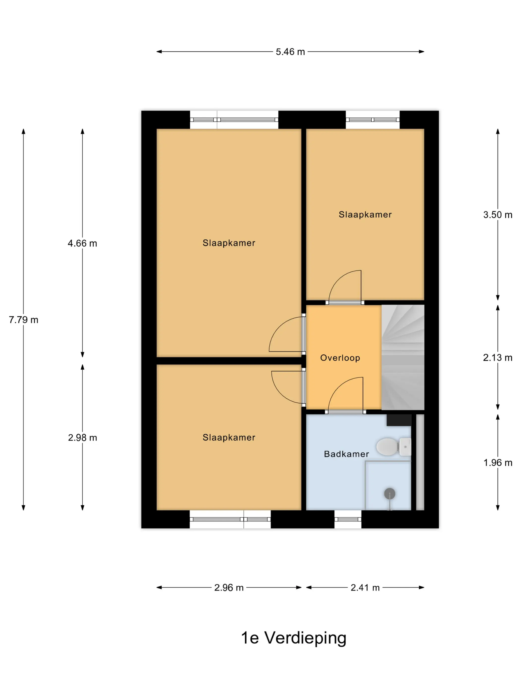 Eerste verdieping: De overloop biedt toegang tot drie ruime slaapkamers, allemaal voorzien van laminaatvloer en een rechte geveloptrek waardoor de kamers lekker licht zijn. De badkamer beschikt over een douchecabine, wastafel en een tweede toilet.
