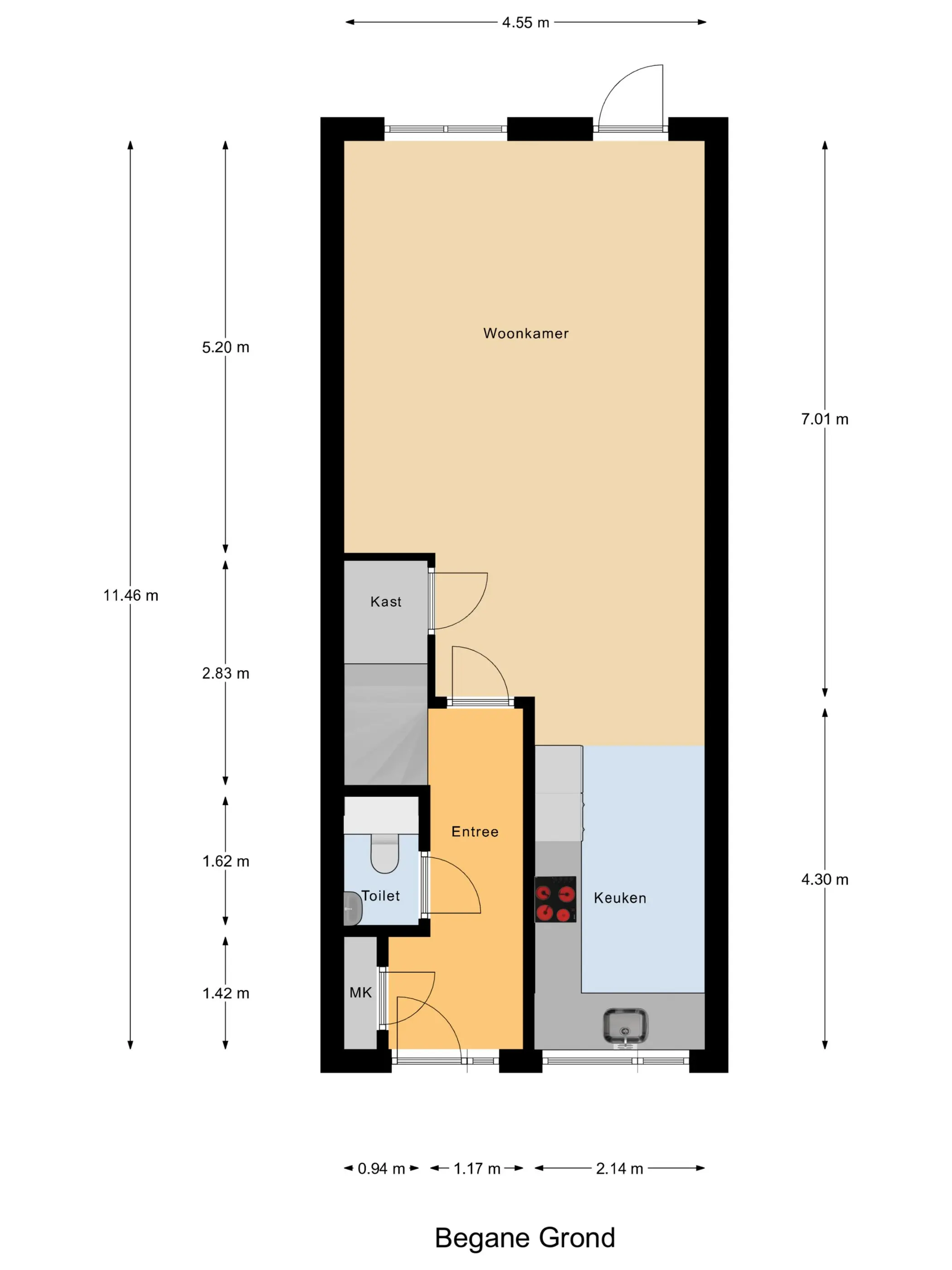 Begane grond: Via de verzorgde entree kom je in de hal met meterkast en een modern, zwevend toilet met fonteintje. De lichte, tuingerichte woonkamer is dankzij de uitbouw heerlijk ruim en voorzien van een laminaatvloer met comfortabele vloerverwarming. De strak afgewerkte wanden geven het geheel een eigentijdse uitstraling. Vanuit de woonkamer stap je zo de onderhoudsvrije, zonnige achtertuin in, compleet met houten berging en praktische achterom. Aan de voorzijde van de woning bevindt zich de nette open keuken met een L-opstelling. Deze is van alle gemakken voorzien, waaronder een koelkast, vriezer, vaatwasser, magnetron, oven, inductiekookplaat, afzuigkap en close-in boiler. Een fijne plek om uitgebreid te koken en gezellig te tafelen.