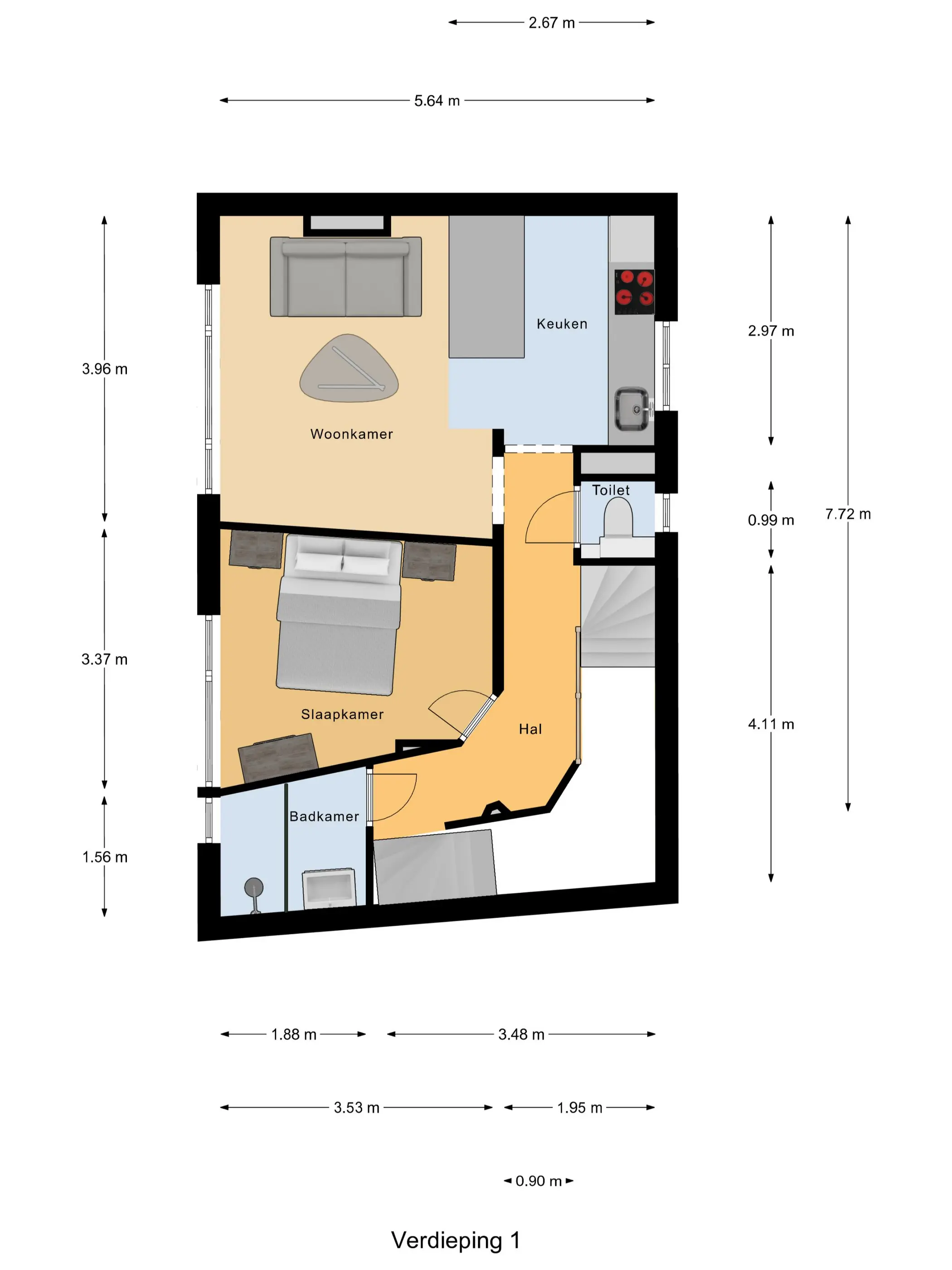 Begane grond: Eigen opgang naar de eerste verdieping.