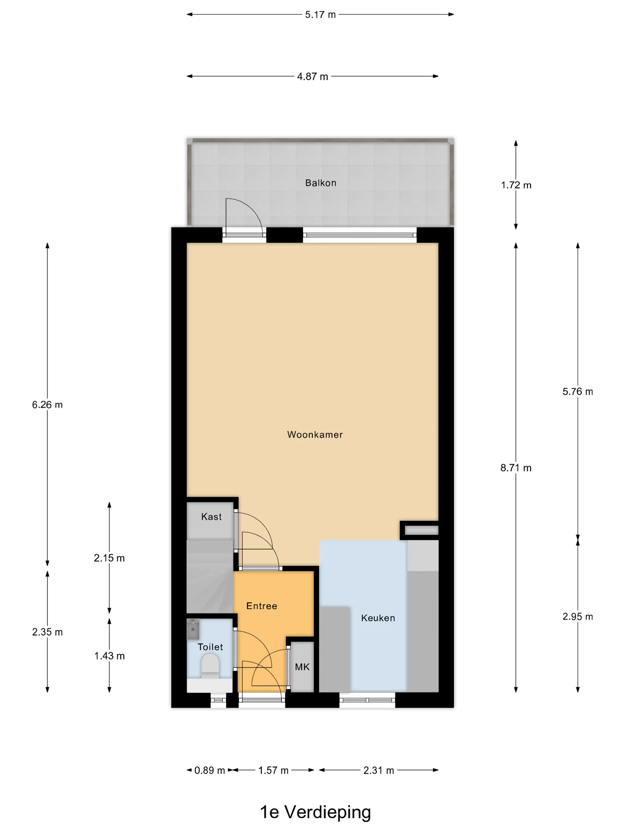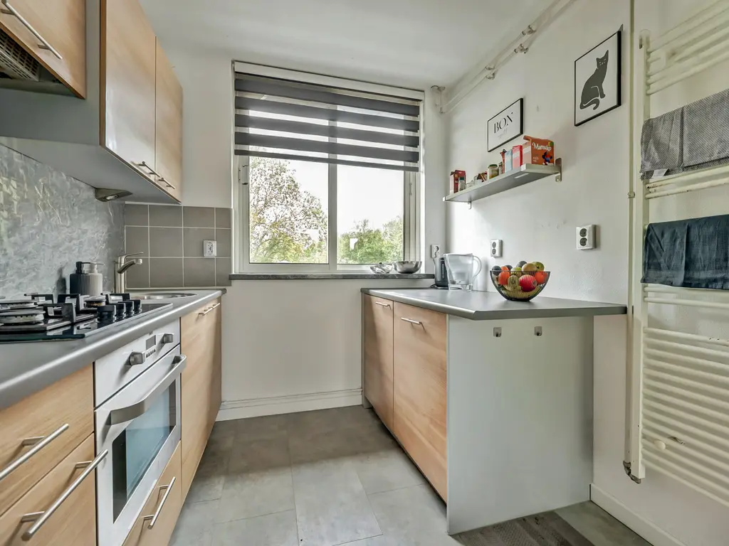 Eerste verdieping: Entree via de galerij. Hal met meterkast, modern toilet (v.v. hangend closet en fonteintje) en trap naar de slaapverdieping. De sfeervolle woonkamer heeft een trapkast, nette afwerking en toegang tot het zonnige terras met zonnescherm (2021) en prachtig uitzicht. De halfopen keuken aan de voorzijde (grotendeels vernieuwd in 2019) is voorzien van diverse inbouwapparatuur: 4-pits gaskookplaat, oven, afzuigkap, koelkast, vriezer, vaatwasser, spoelbak en close-in boiler. De gehele verdieping is voorzien van een moderne PVC-vloer (2021).