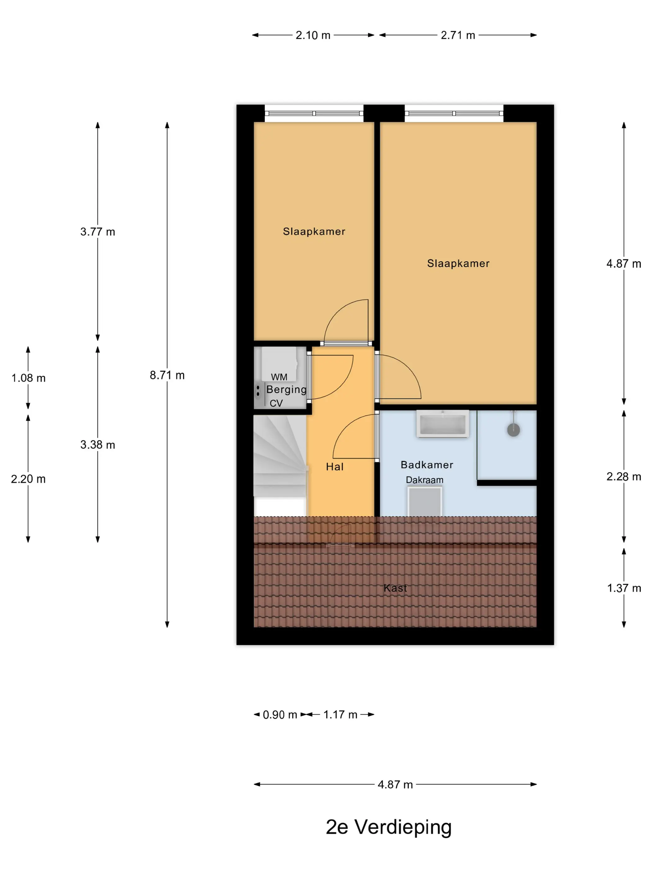 Tweede verdieping: Overloop met vaste kast (opstelling CV-combiketel Remeha 2024) en aansluiting voor wasmachine/droger. Twee ruime slaapkamers aan de achterzijde en een nette badkamer aan de voorzijde met douche en wastafelmeubel (2021).