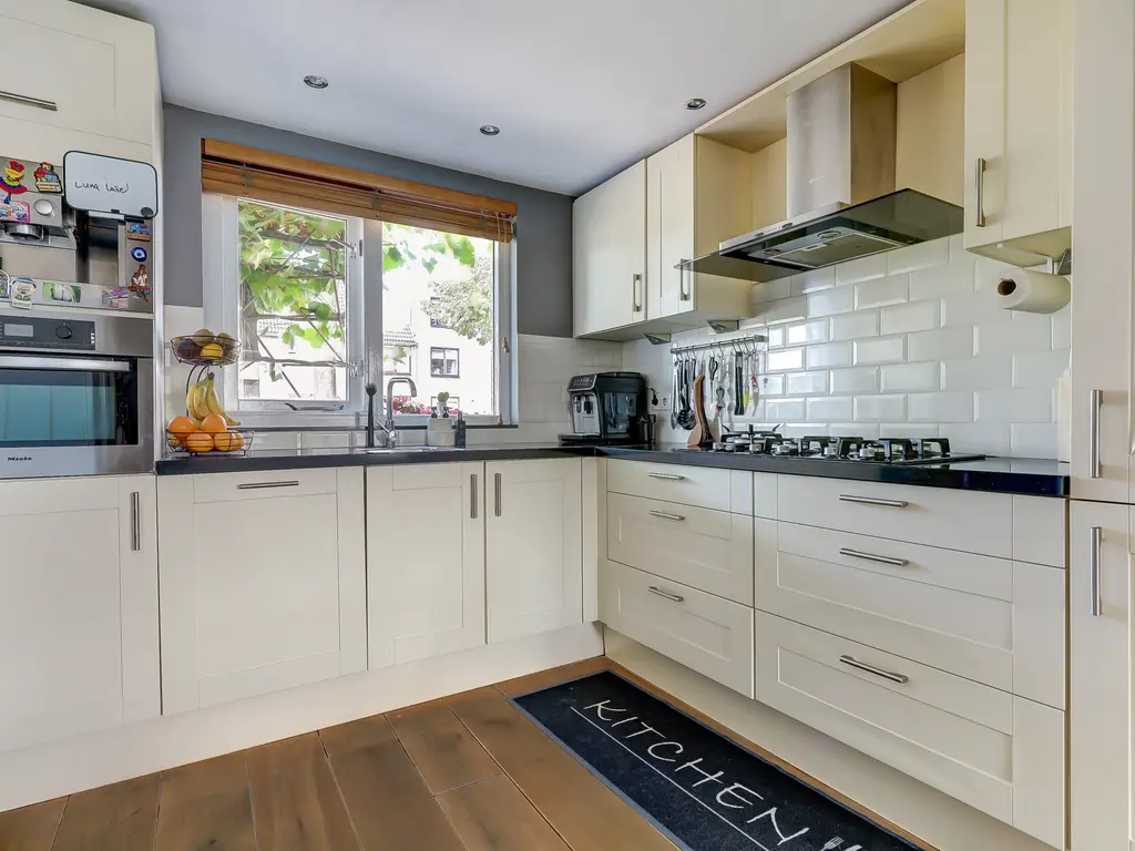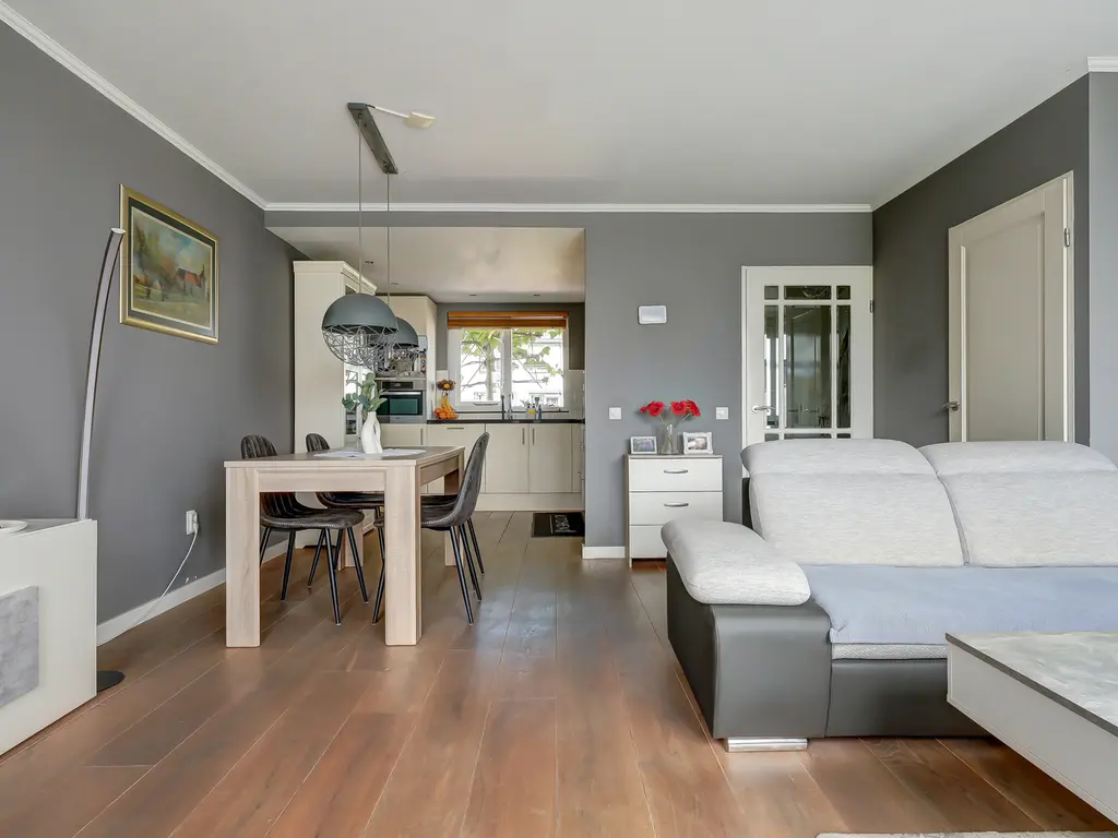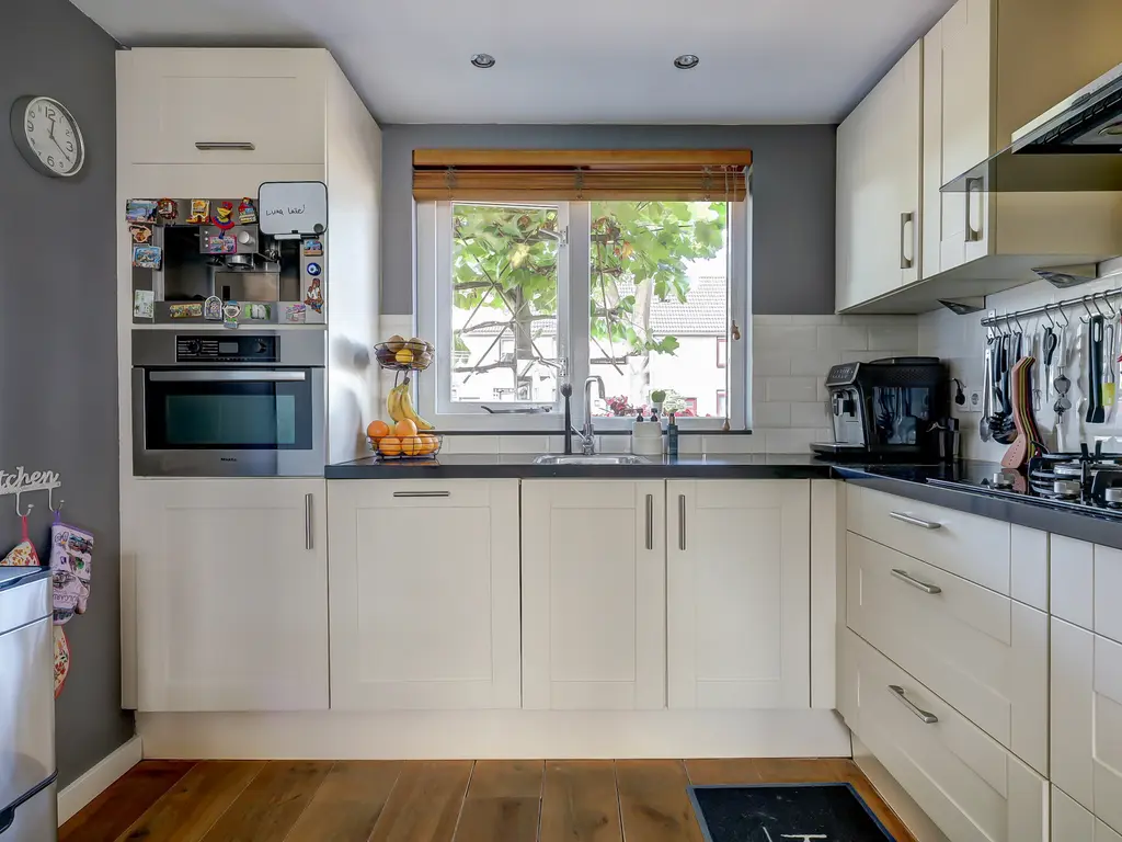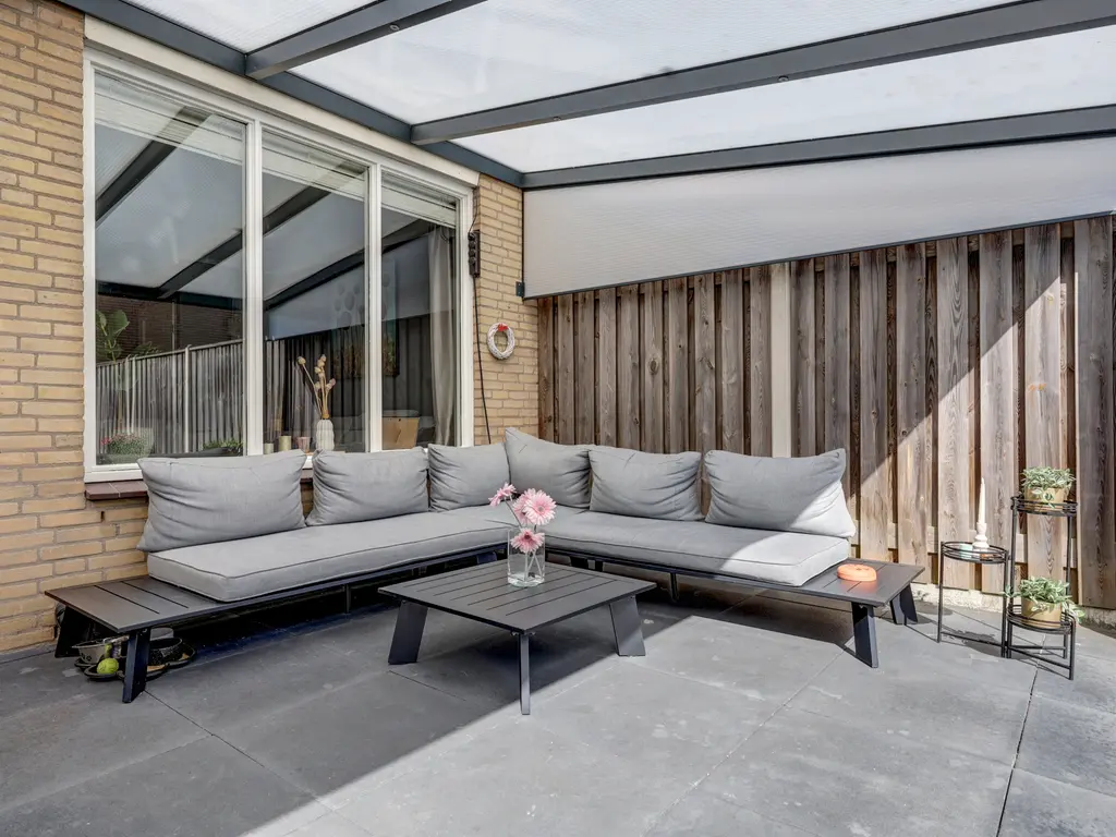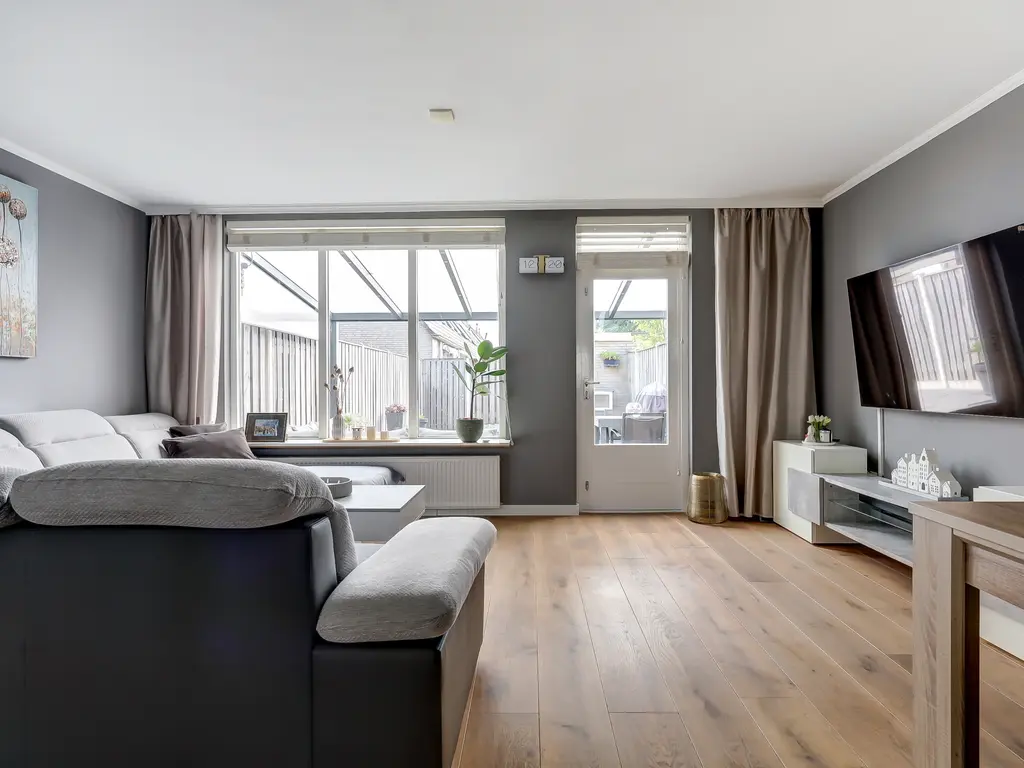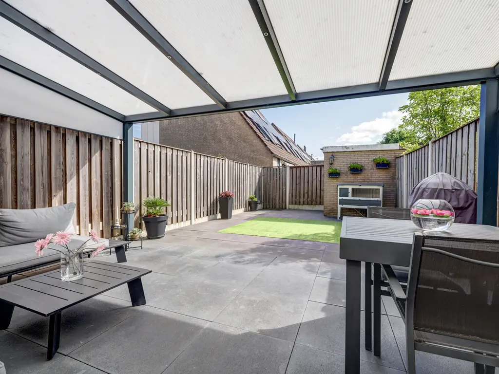 De lichte, tuingerichte woonkamer is voorzien van een fraaie eikenhouten vloer met vloerverwarming en achterdeur naar de mooie overkapping welke toegang biedt tot de zonnige achtertuin op het zuidoosten. De tuin is fraai aangelegd met hardhouten schuttingen met betonnen palen, een stenen berging én achterom.