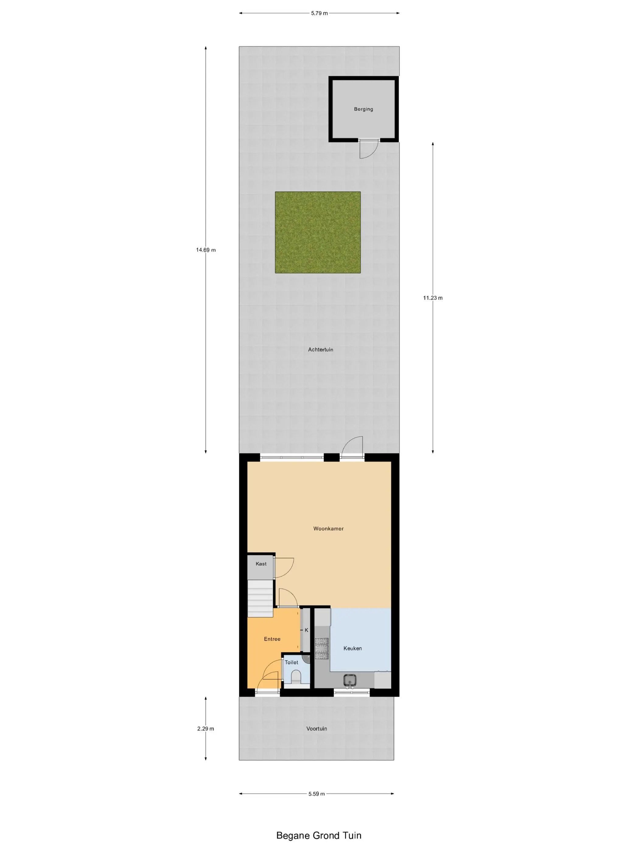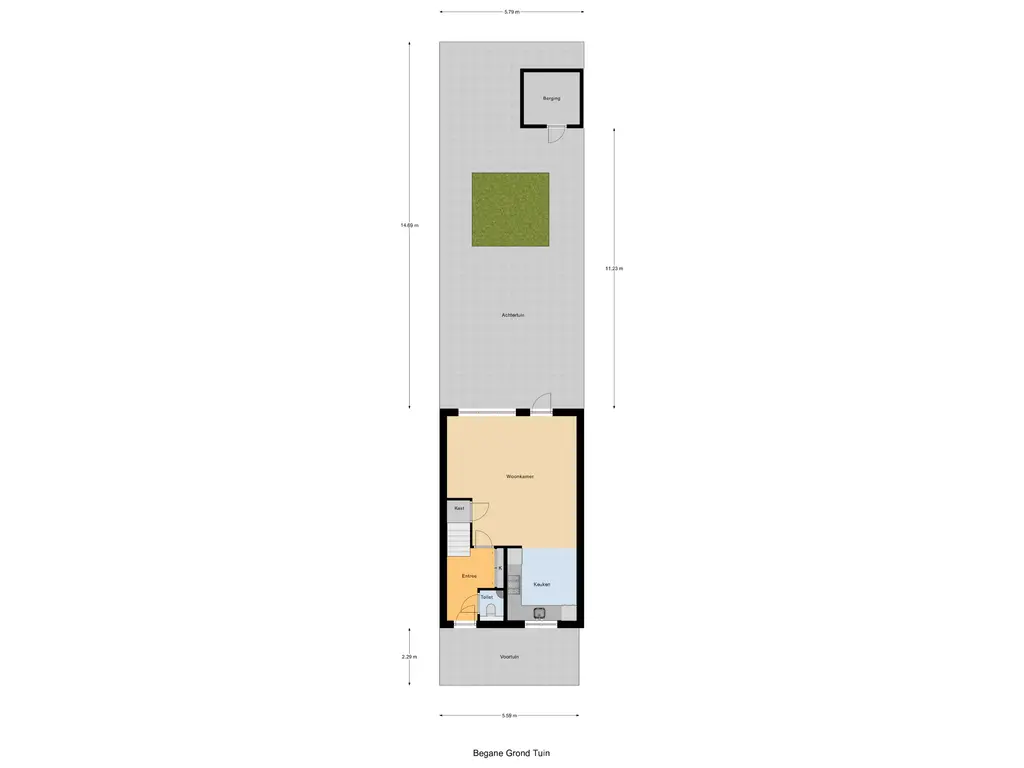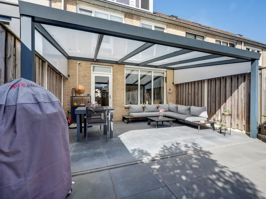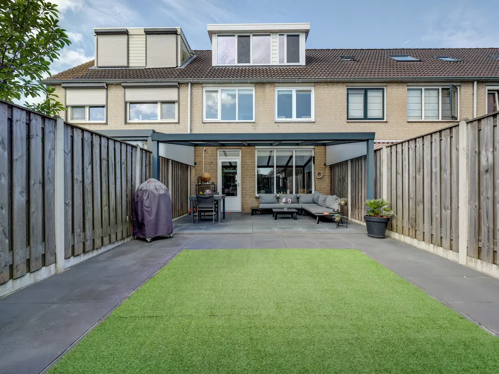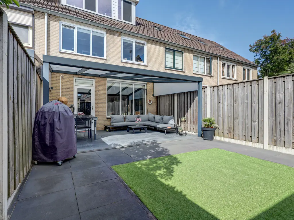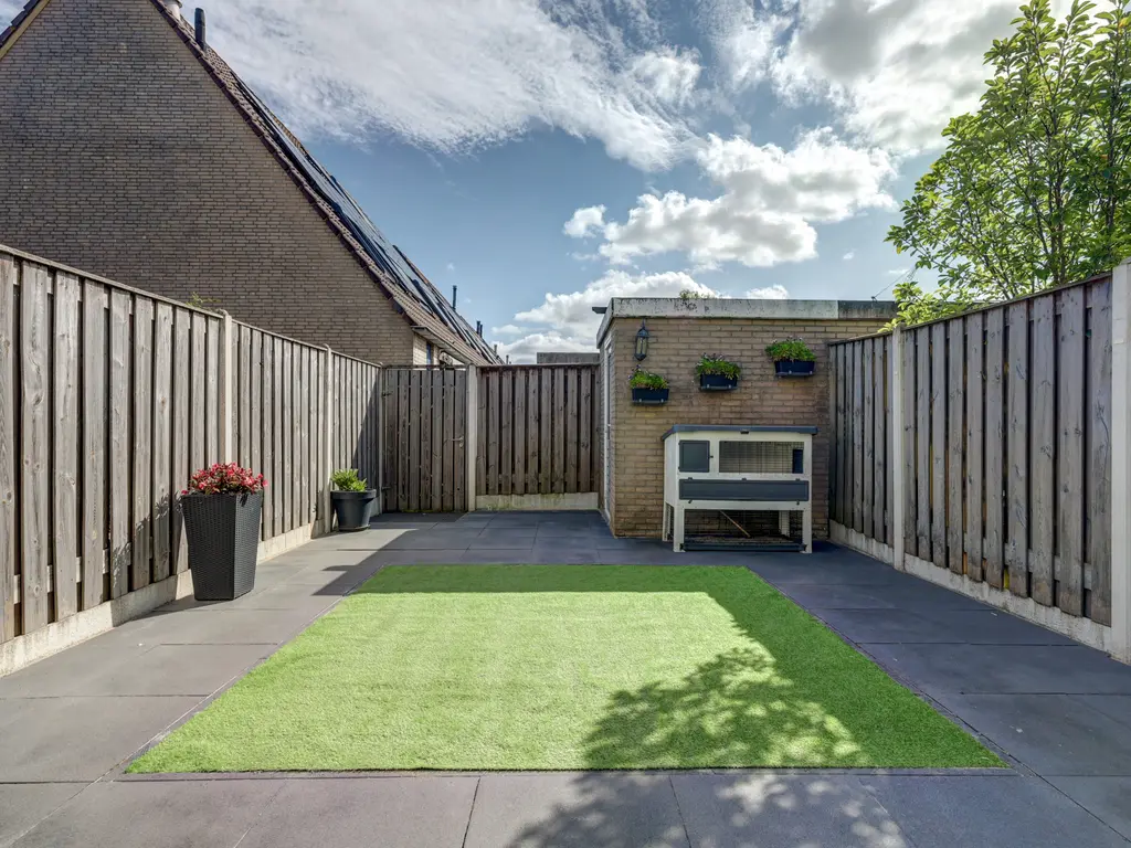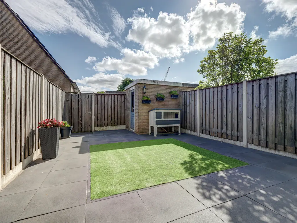 - Onderhoudsvrije achtertuin met stenen berging en achterom