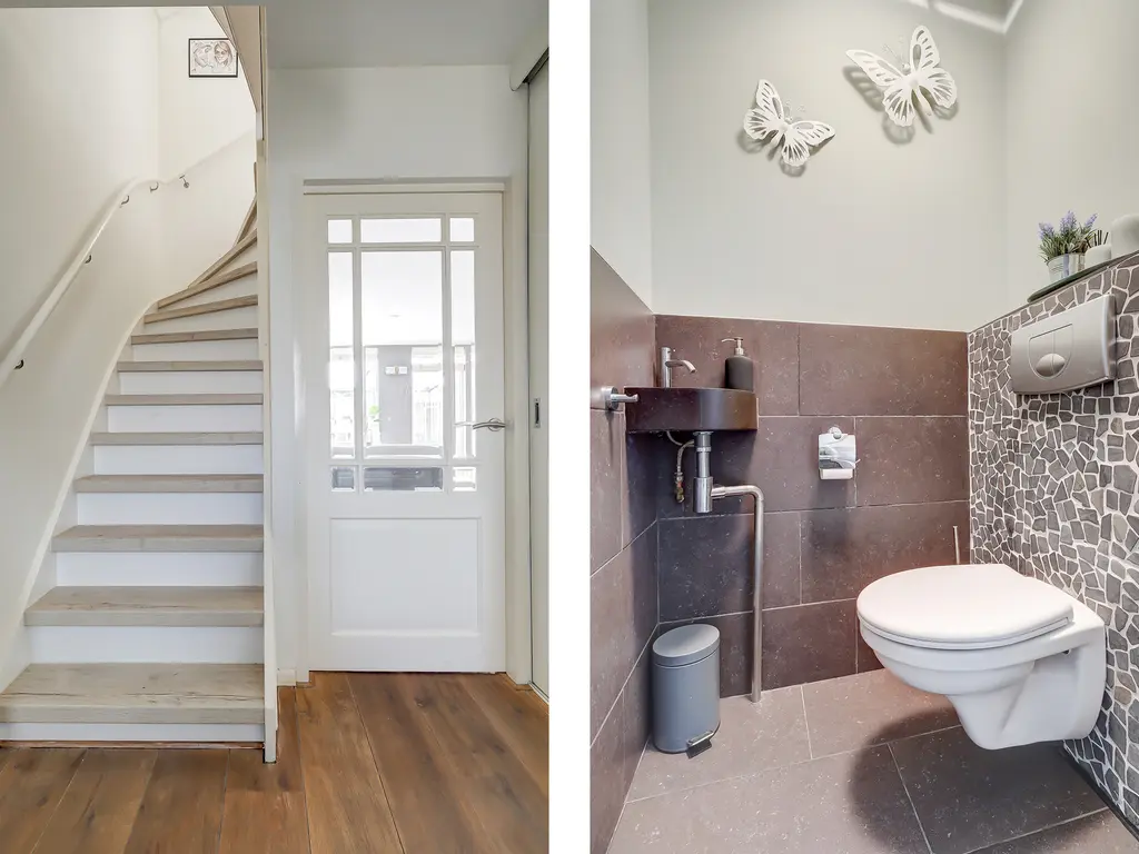 Begane grond: Entree met schuifwandkast, meterkast (11 groepen, 2018) en modern zwevend toilet met fontein.