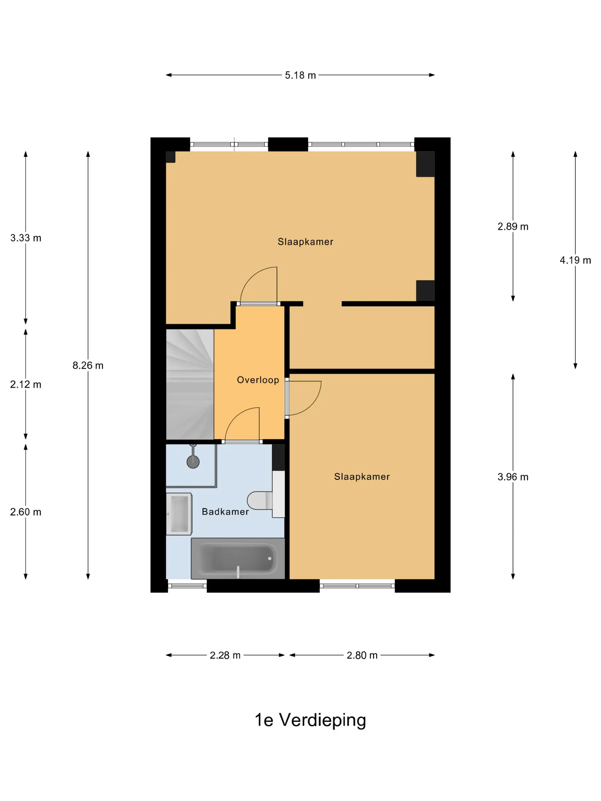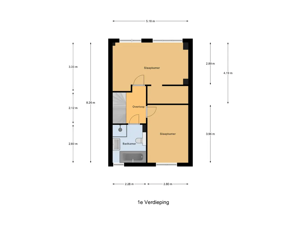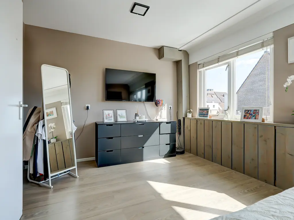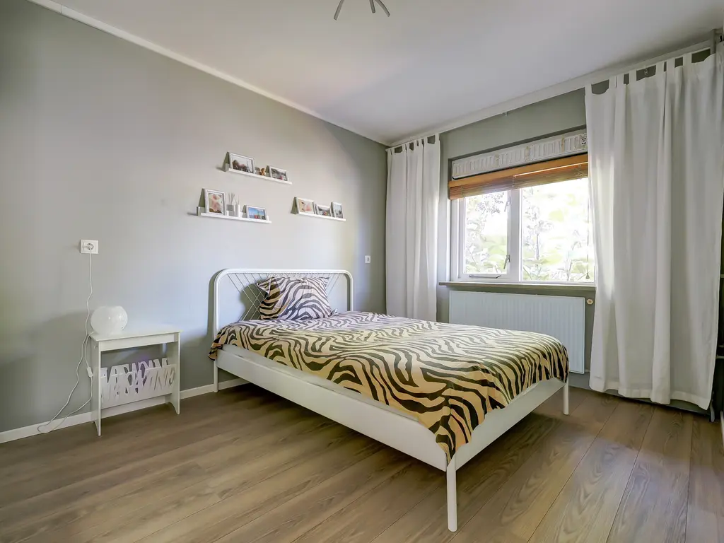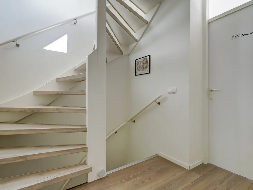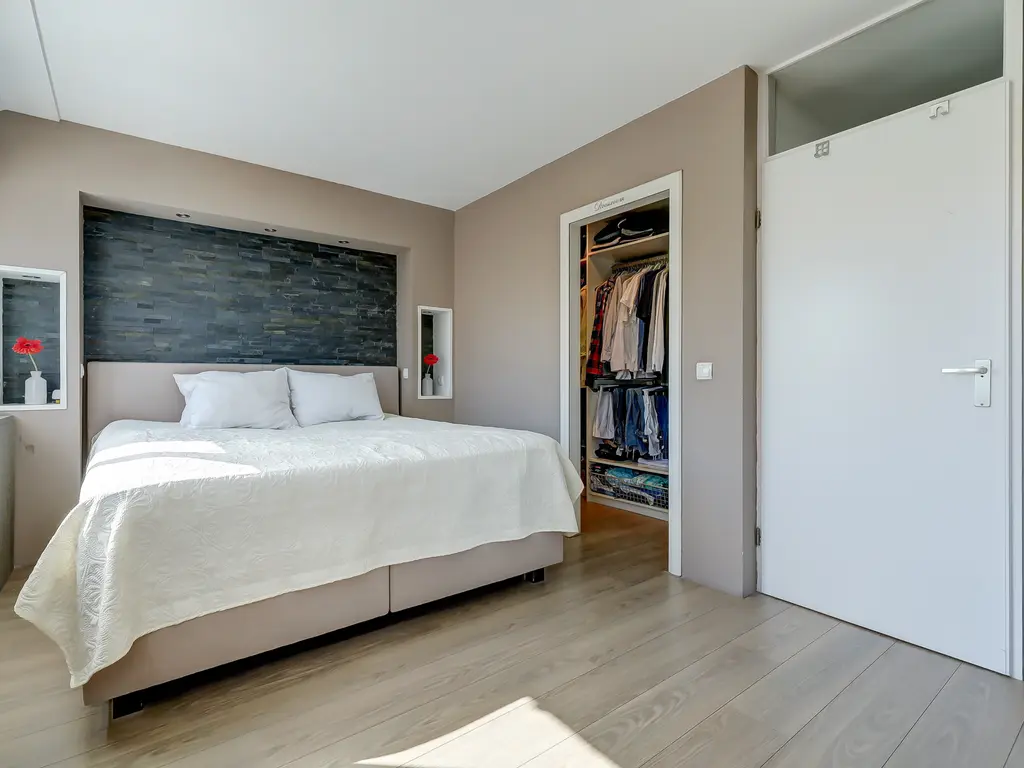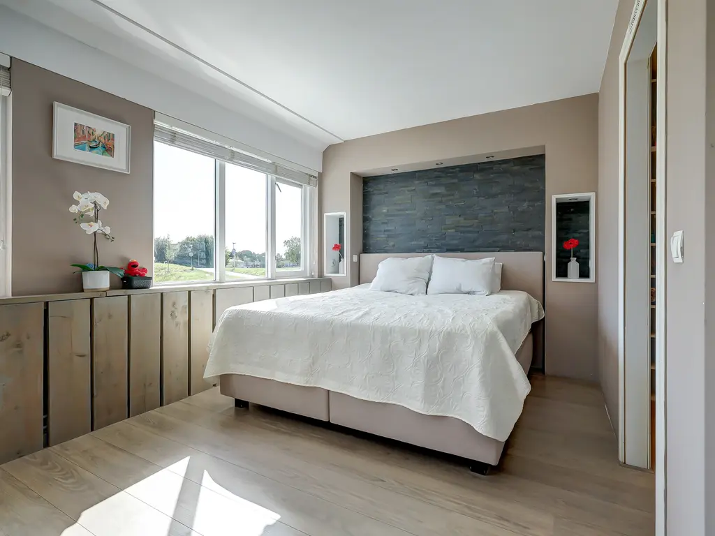 Eerste verdieping: Overloop met toegang tot twee ruime slaapkamers (voorheen drie). De hoofdslaapkamer beschikt over een royale walk-in closet en biedt vrij uitzicht over de Korte Schenkeldijk. Beide kamers zijn strak afgewerkt en voorzien van een doorgelegde laminaatvloer.