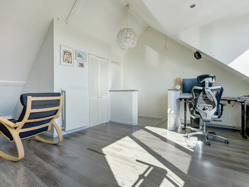 Tweede verdieping: Ruime voorzolder met werkplek, separate wasruimte met opstelplaats voor CV-ketel (Intergas CW 5 bouwjaar 2025), mechanische ventilatie en wasmachine-/drogeraansluiting. Daarnaast een royale derde slaapkamer over de volledige lengte van de woning, voorzien van een dakkapel. Via een vlizotrap is de praktische vliering bereikbaar. Ook deze verdieping is keurig afgewerkt met glad stucwerk en een laminaatvloer.