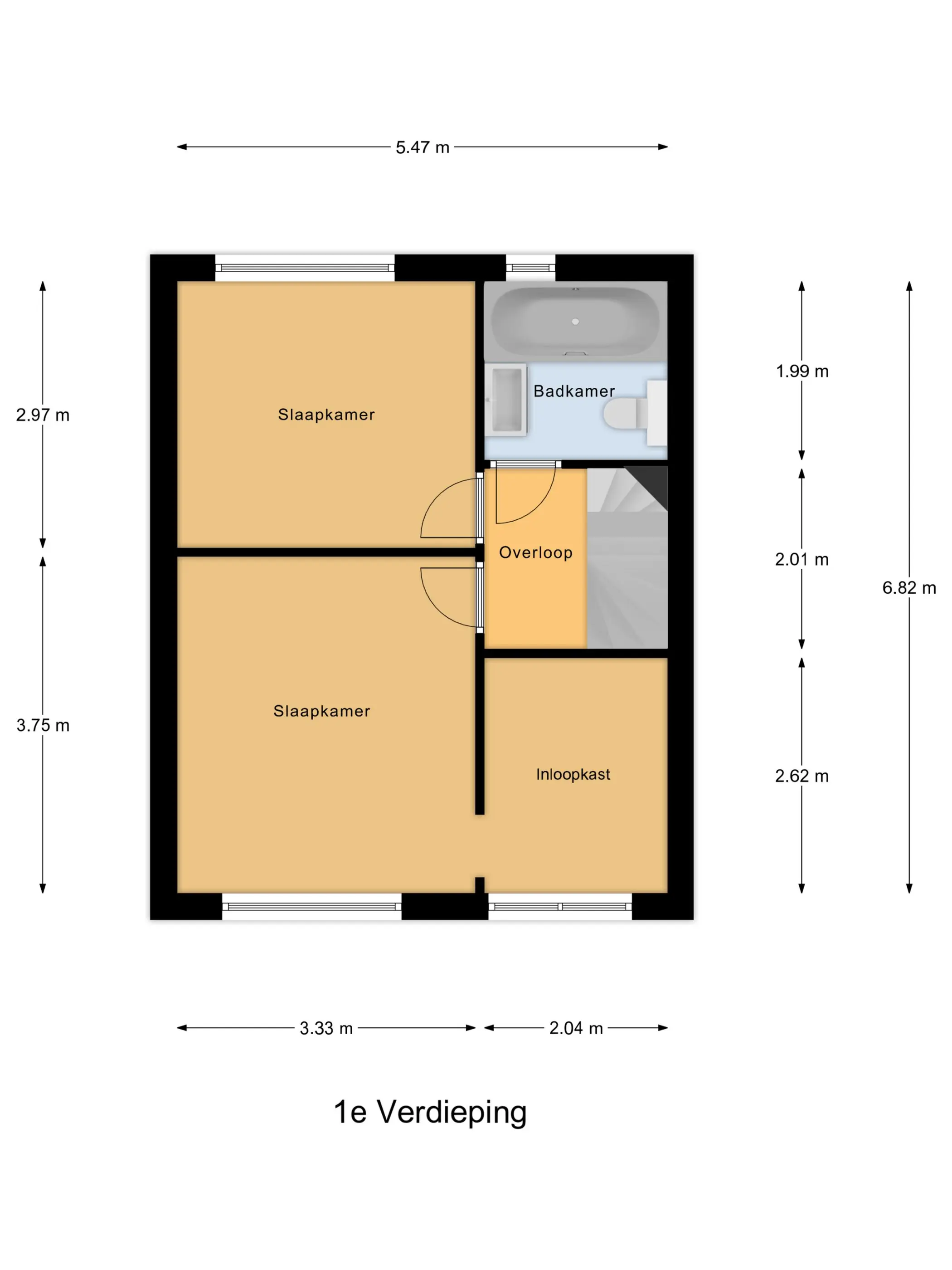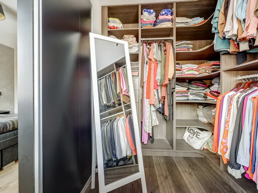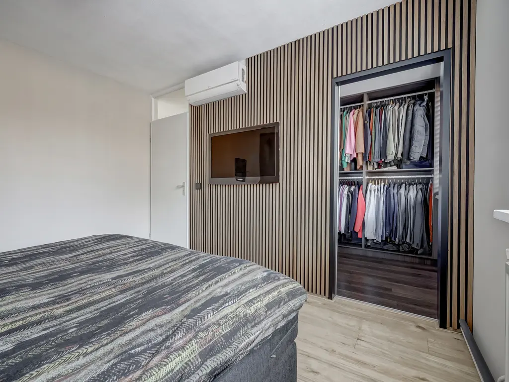 1e Verdieping: De eerste verdieping telt twee ruime slaapkamers (voorheen drie). De hoofdslaapkamer beschikt over een inloopkast en airco voor optimaal comfort. In augustus 2021 is de badkamer volledig vernieuwd en tot bovenaan betegeld, met een ligbad/douche, modern wastafelmeubel en tweede toilet. In juli 2023 zijn de vloeren vervangen en de kamers opnieuw gestuukt en geschilderd.