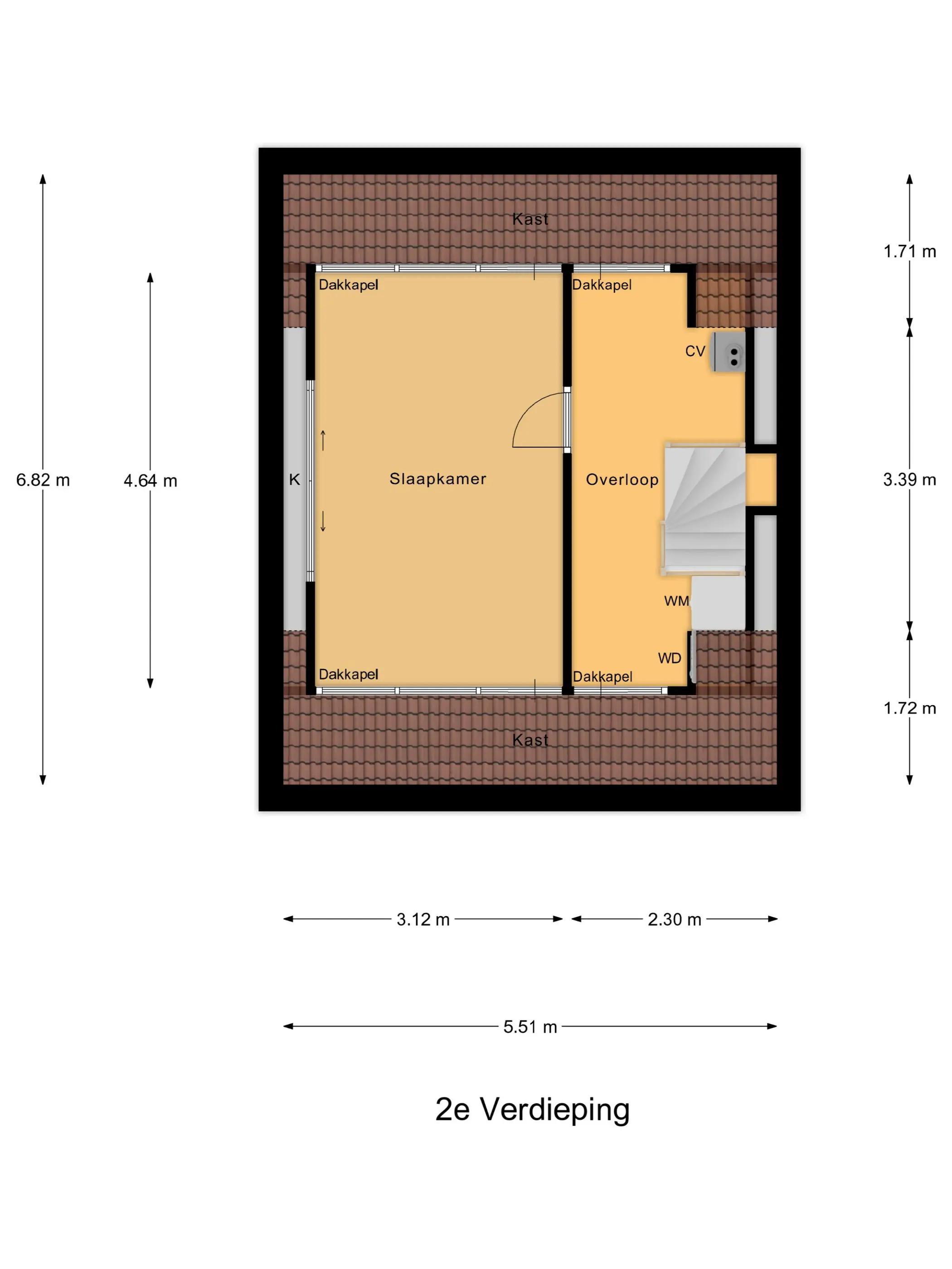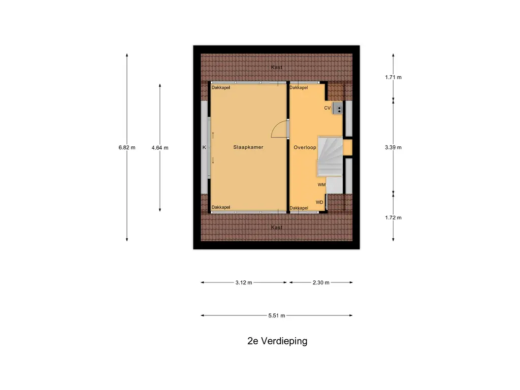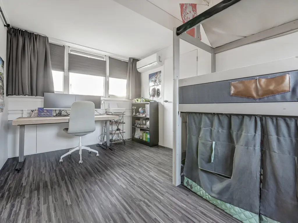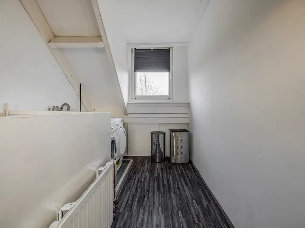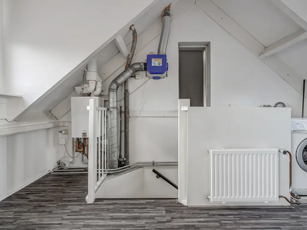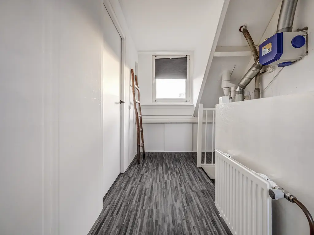 2e Verdieping: De tweede verdieping biedt een ruime zolderkamer met dubbele dakkapel (2015, gehele breedte), eveneens voorzien van airco. Op de voorzolder bevinden zich de CV-ketel (nieuw, juli 2021) en de aansluitingen voor wasmachine en droger. In augustus 2023 is de zolder geheel afgewerkt en voorzien van extra bergruimte.