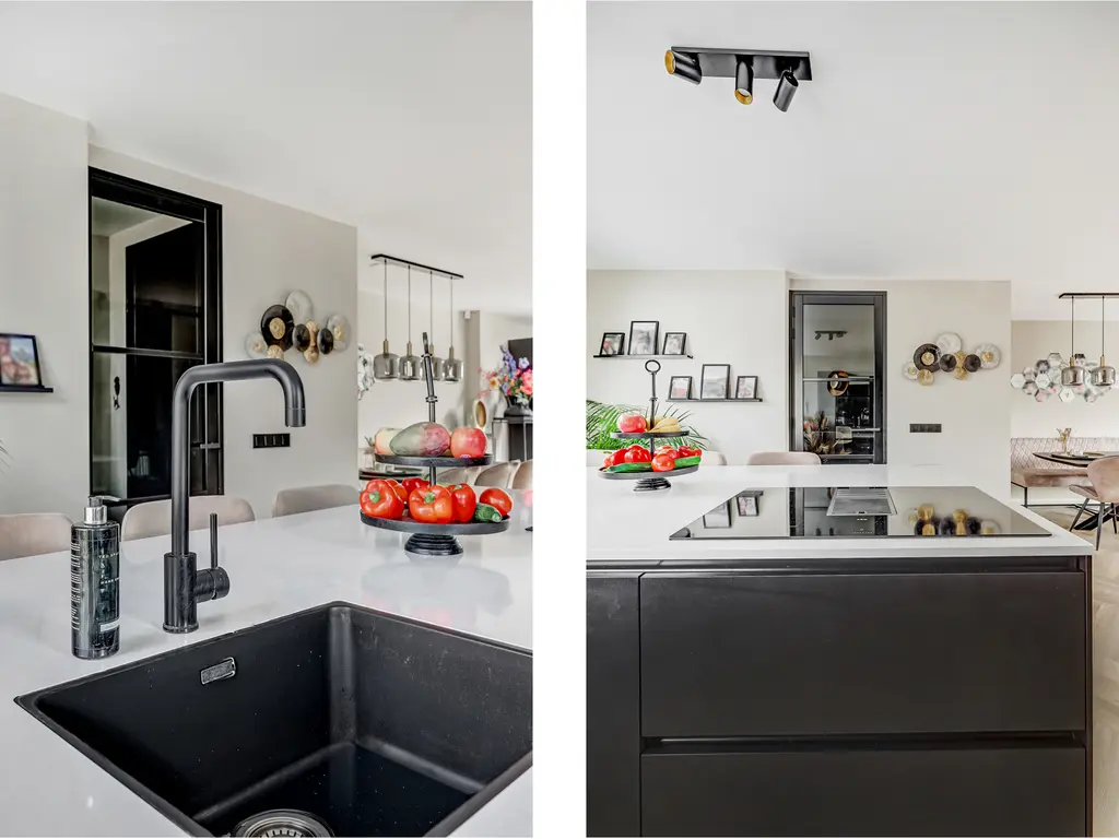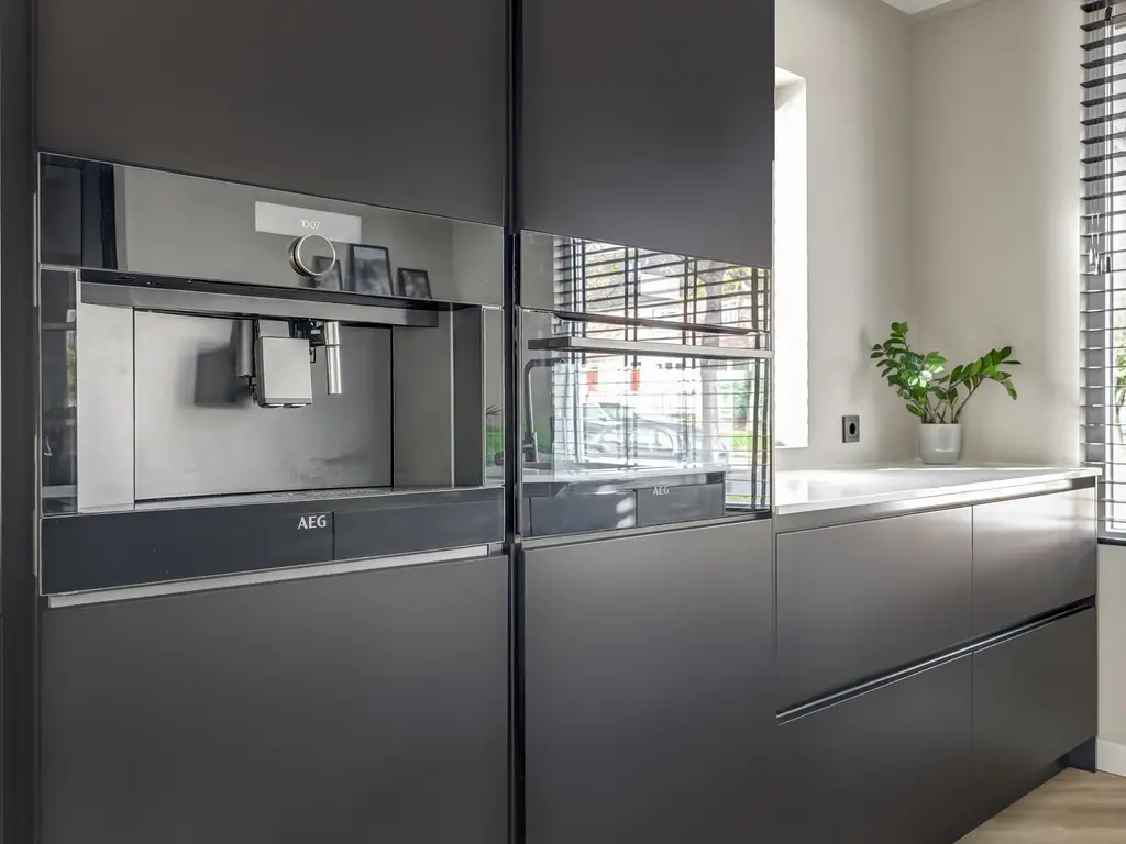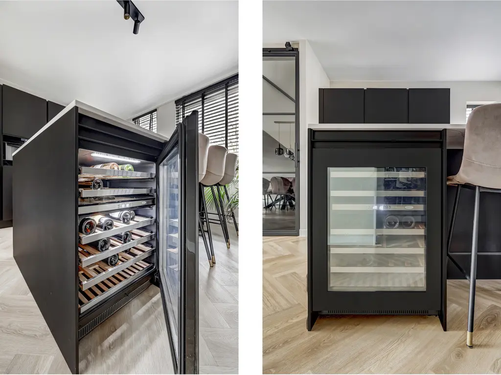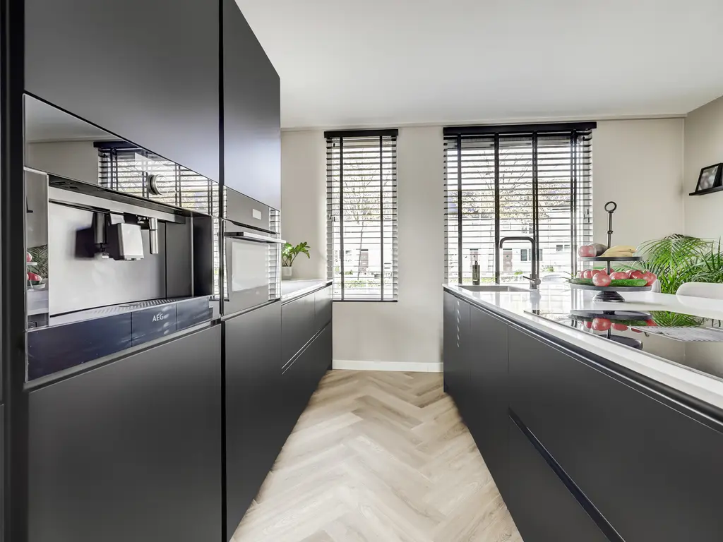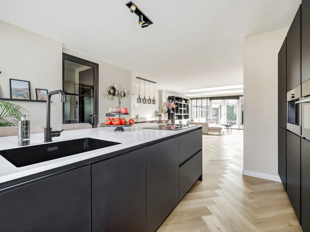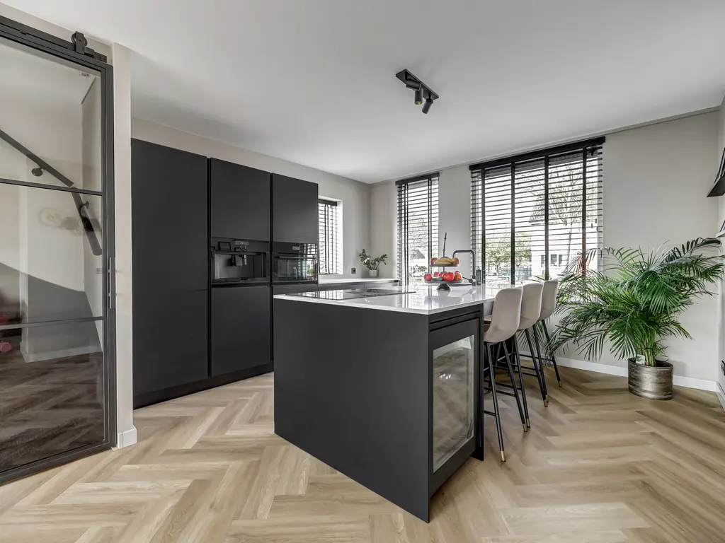 De moderne keuken (2022) aan de voorzijde is een echte eyecatcher: compleet vernieuwd en voorzien van een kookeiland, moderne inbouwapparatuur met o.a. koffiezetapparaat en wijnkoeler en voldoende werk- en opbergruimte. Via de openslaande deuren bereik je de zonnige tuin met vlonder en garage ideaal voor hobby’s of extra bergruimte.