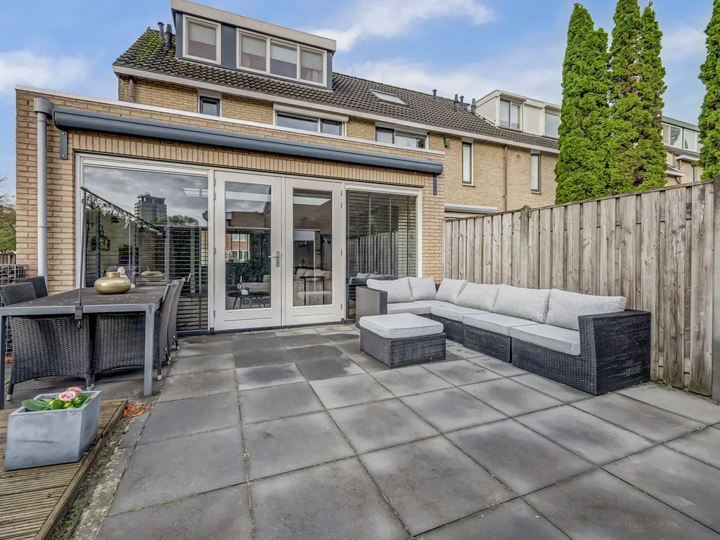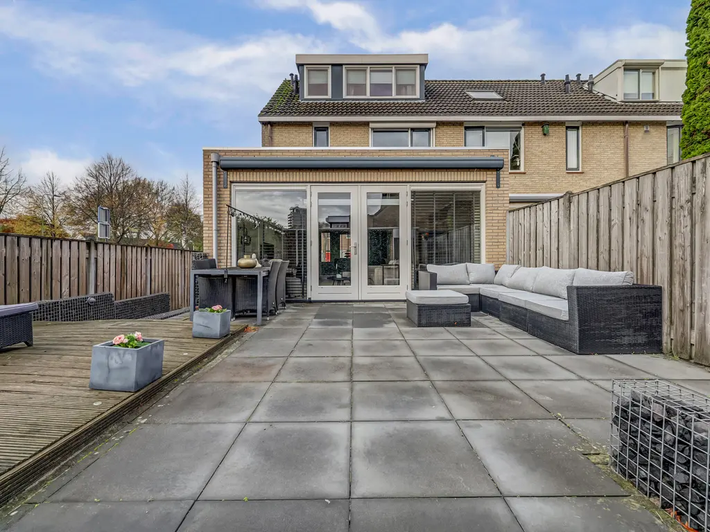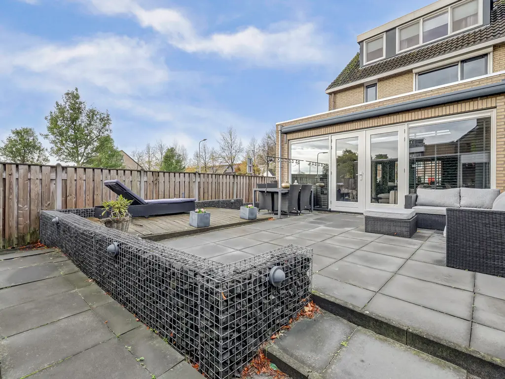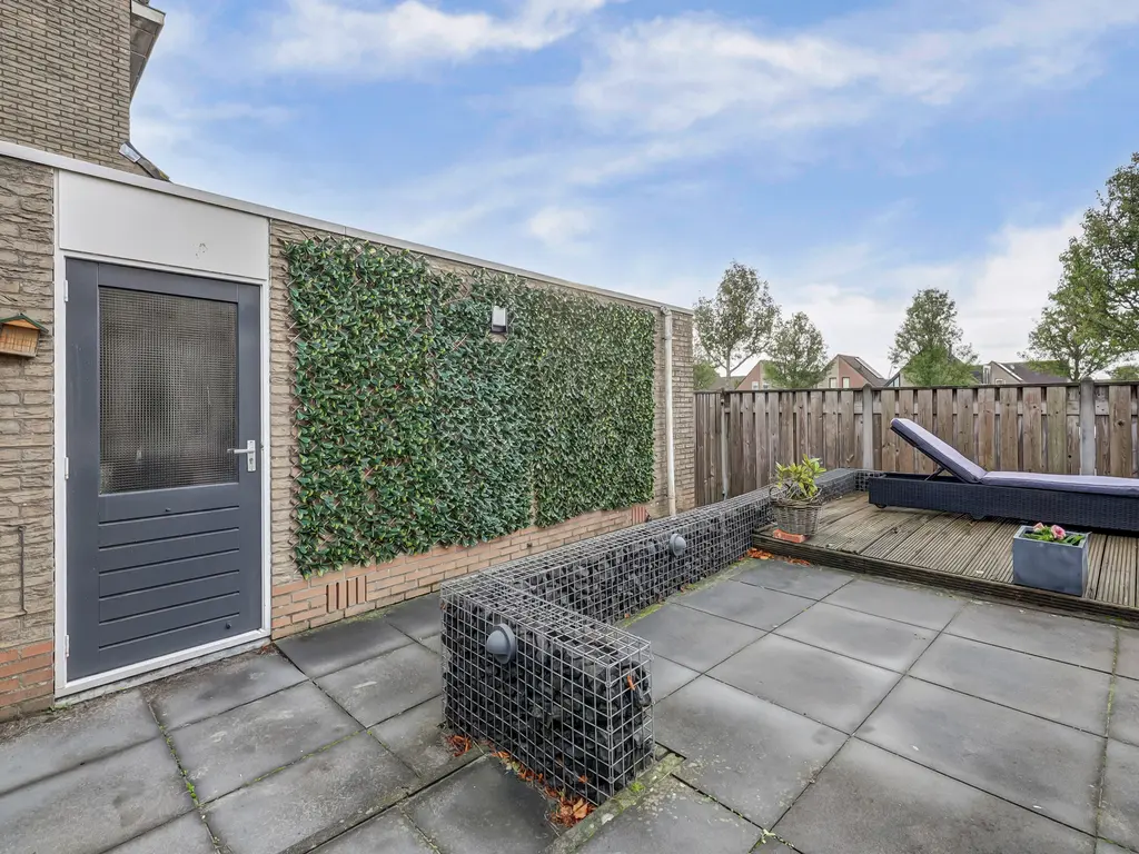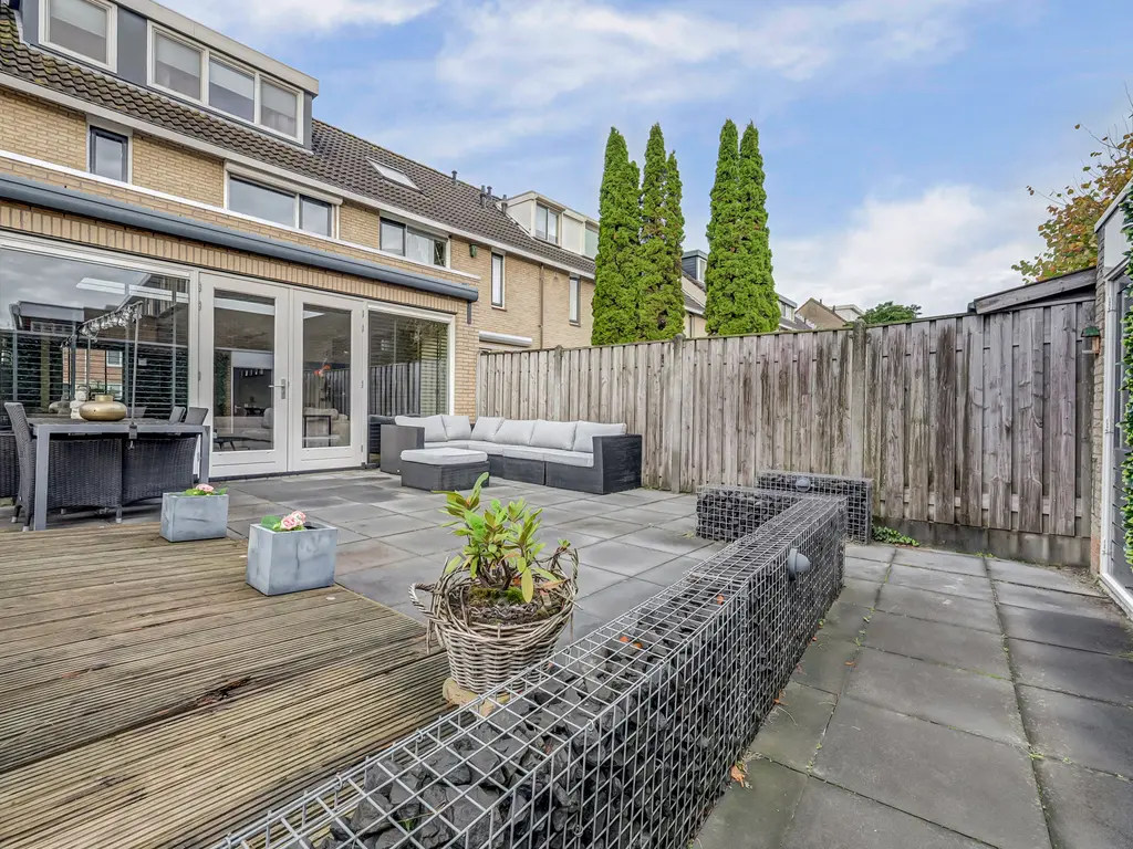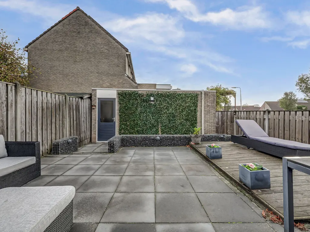 De tuin is verzorgd aangelegd met een vlonder en biedt voldoende ruimte om te genieten van de zon. In 2022 is de buitenzijde geschilderd en is er een nieuw zonnescherm geplaatst.