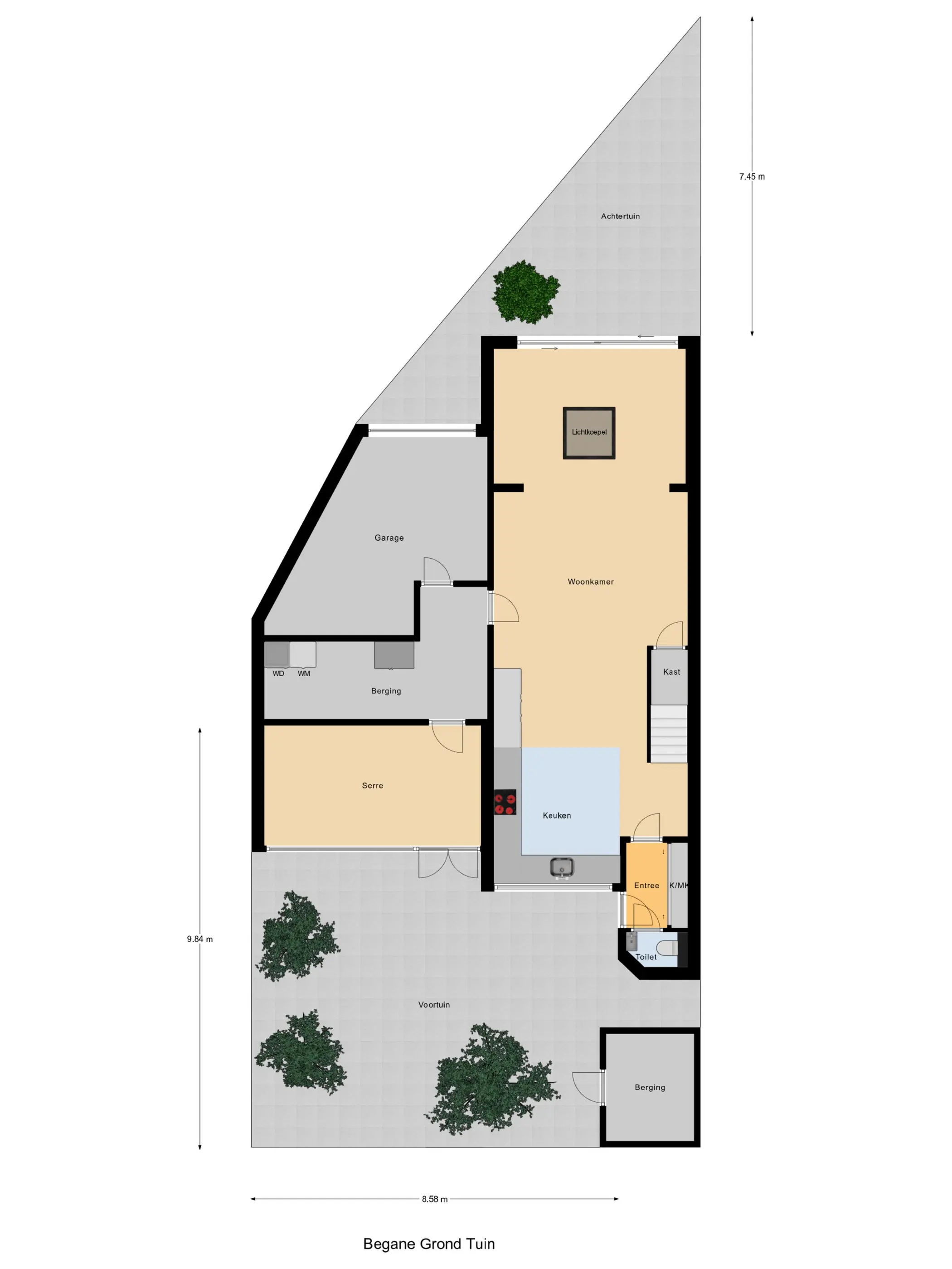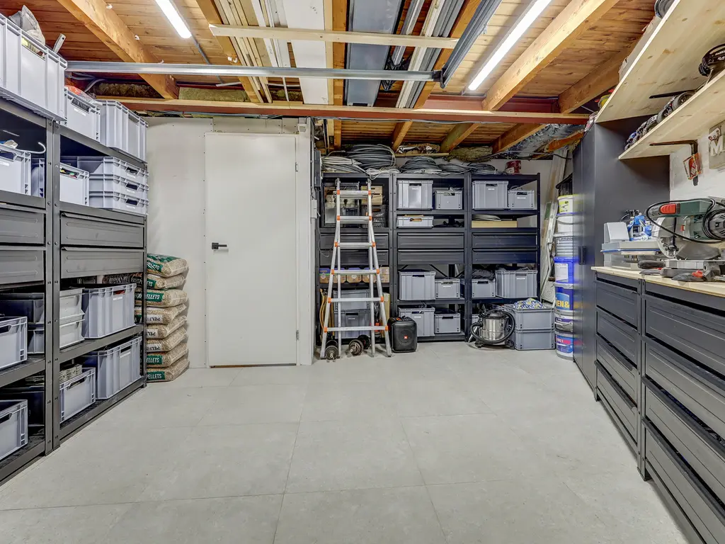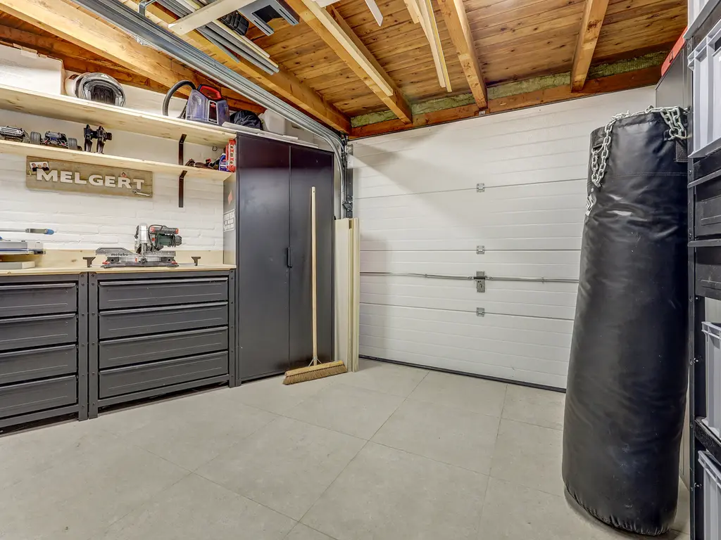De ruime garage is voorzien van water en elektra en biedt volop mogelijkheden voor opslag, hobby of werkruimte. Zowel de bijkeuken als de garage zijn netjes afgewerkt met een tegelvloer.