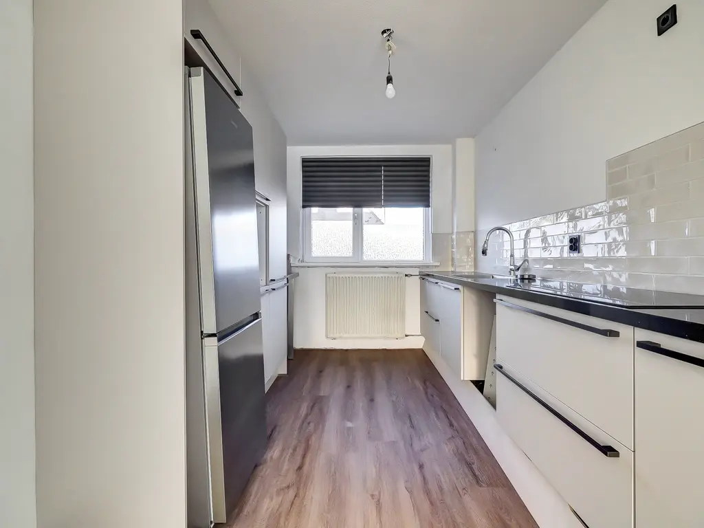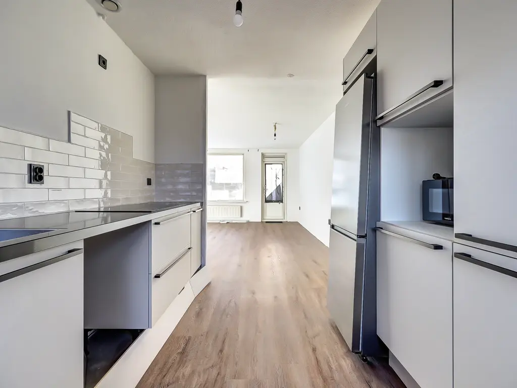 De moderne keuken (2024) is aan de voorzijde van de woning gesitueerd en uitgevoerd in een dubbele wandopstelling. Deze is voorzien van diverse inbouwapparatuur, waaronder een koelkast, inductiekookplaat en afzuigkap.