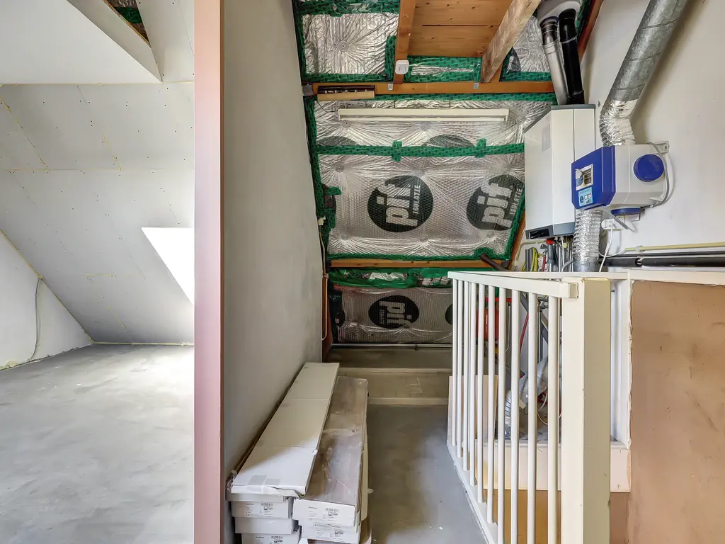 Tweede verdieping: Voorzolder met opstelling van de cv-ketel en aansluitingen voor wasmachine en droger. Daarnaast bevindt zich hier een ruime vierde slaapkamer met dakraam.