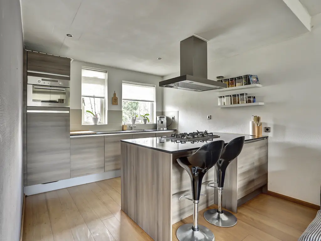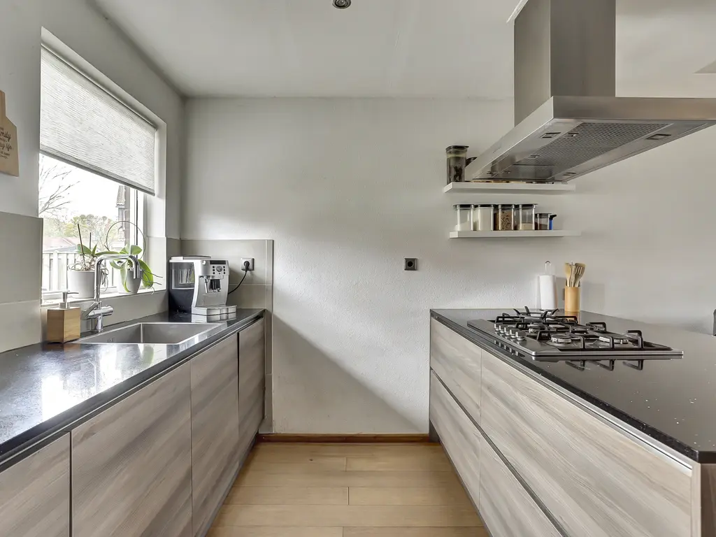 Begane grond: Via de entree komt u in de royale hal met trapopgang, meterkast en een modern zwevend toilet met fonteintje. De tuingerichte en zonnige living is vergroot tot circa 40 m² en beschikt over een tuindeur én een grote schuifpui die zorgen voor een prachtige lichtinval en directe toegang tot de achtertuin. Aan de voorzijde bevindt zich de open keuken in een dubbele wandopstelling v.v. een gaskookplaat, afzuigkap, koelkast, combi-oven en kokend waterkraan.