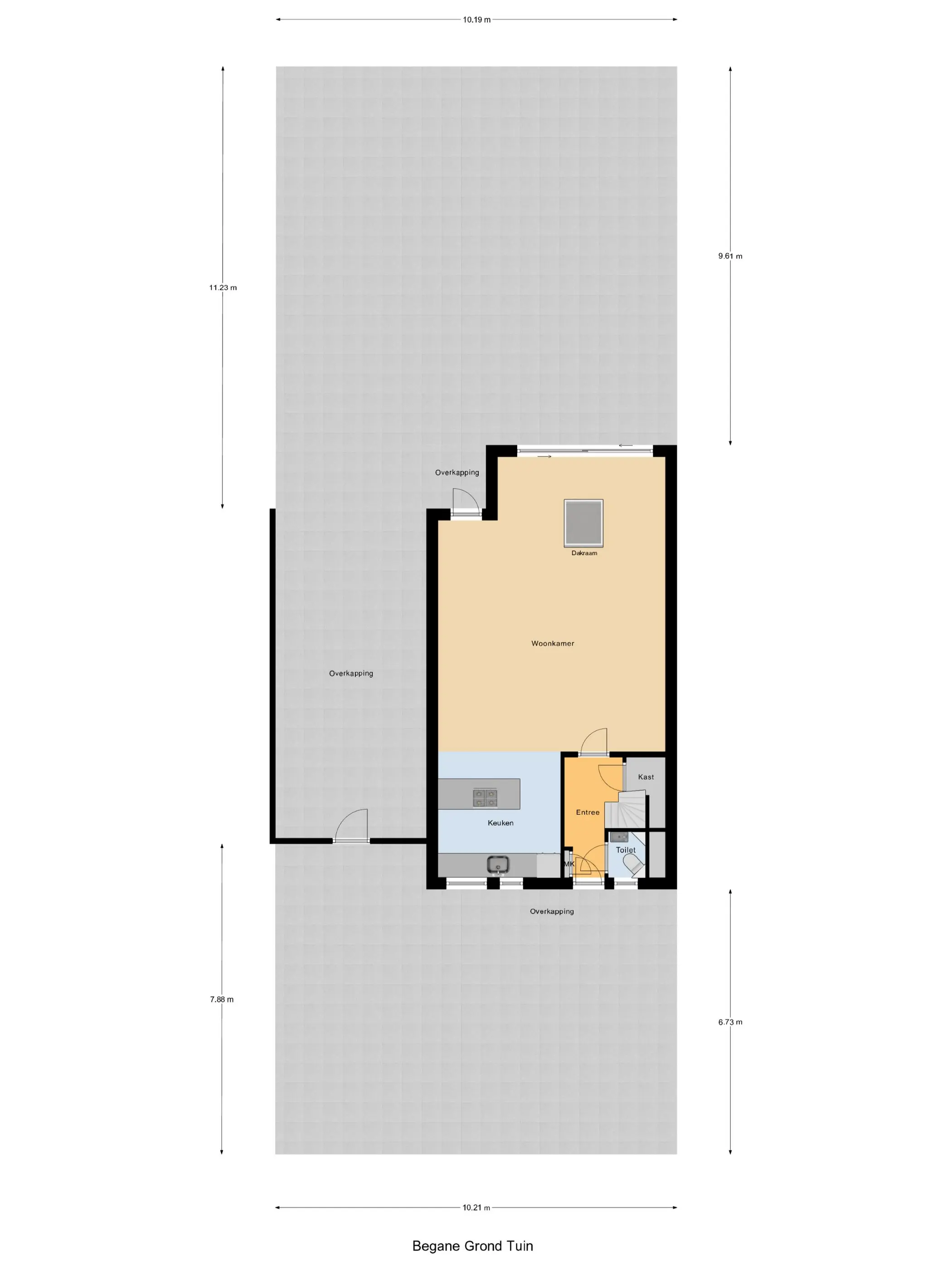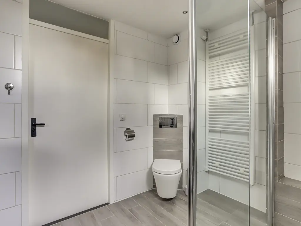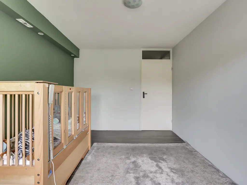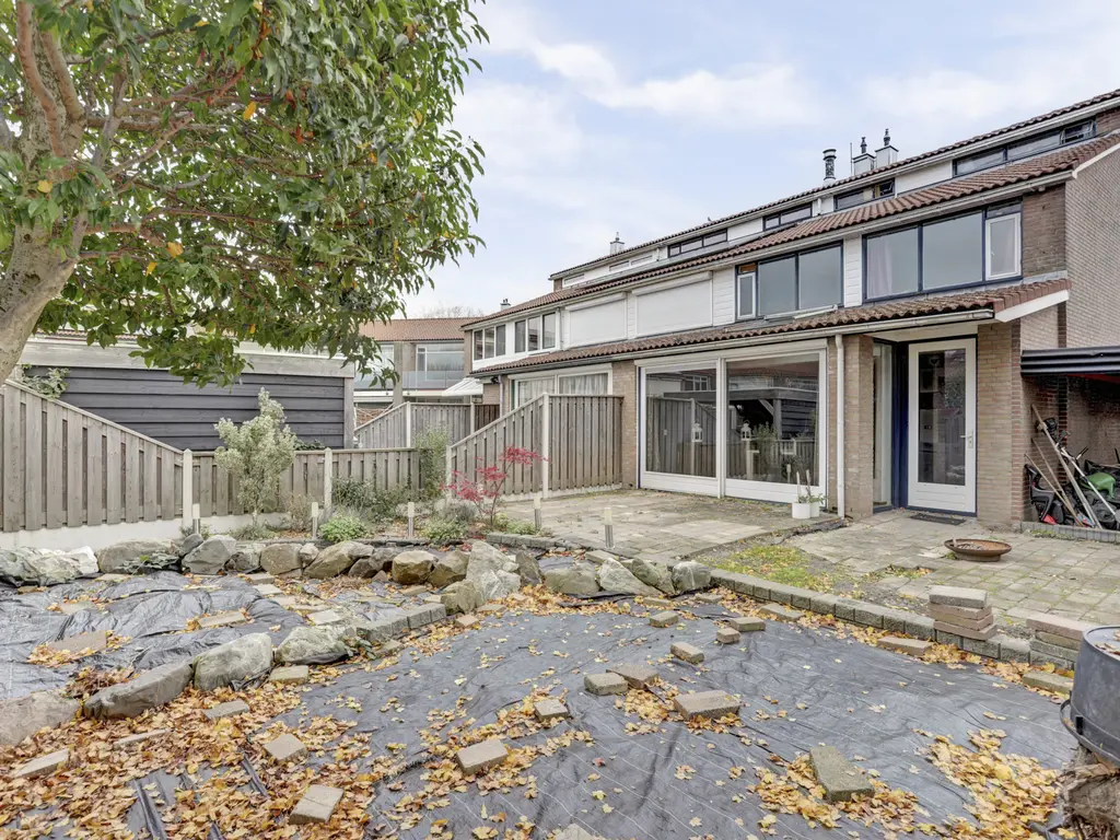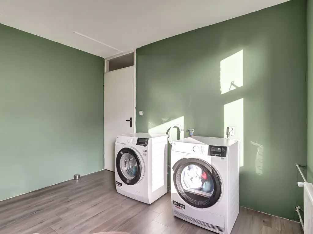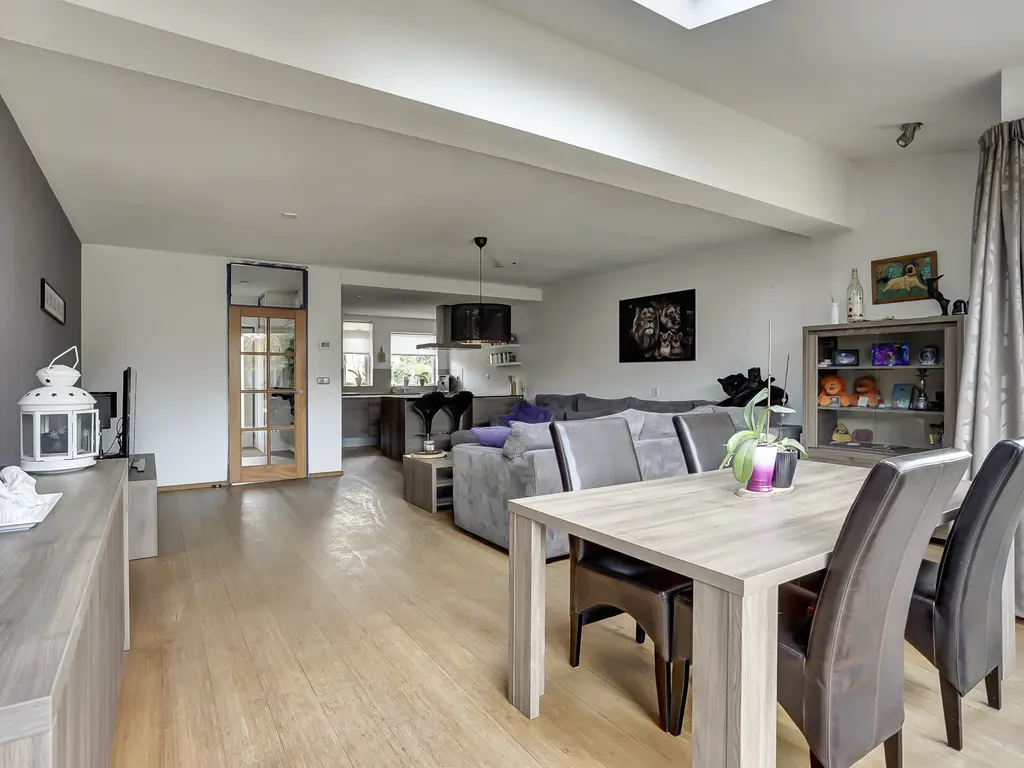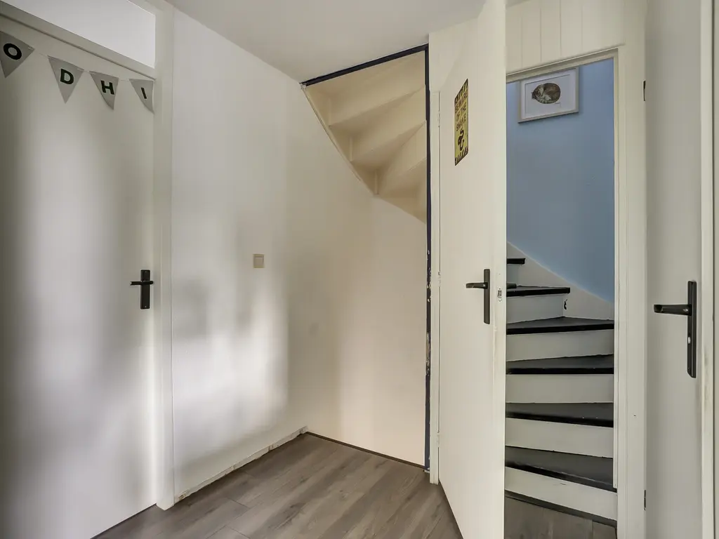 De achtertuin is ruim en geheel naar eigen smaak in te richten. Aan de achterzijde grenst de tuin aan een groenvoorziening, wat zorgt voor een vrij en groen uitzicht. De gehele begane grond is afgewerkt met een houten vloer en spachtelputz wanden.