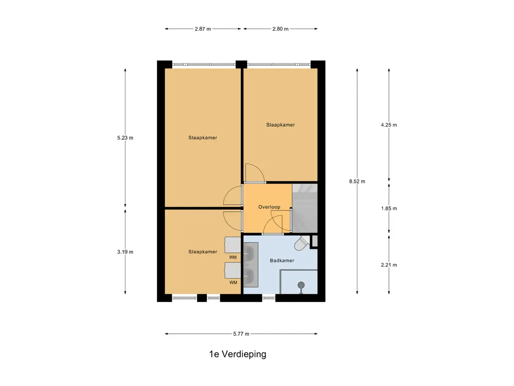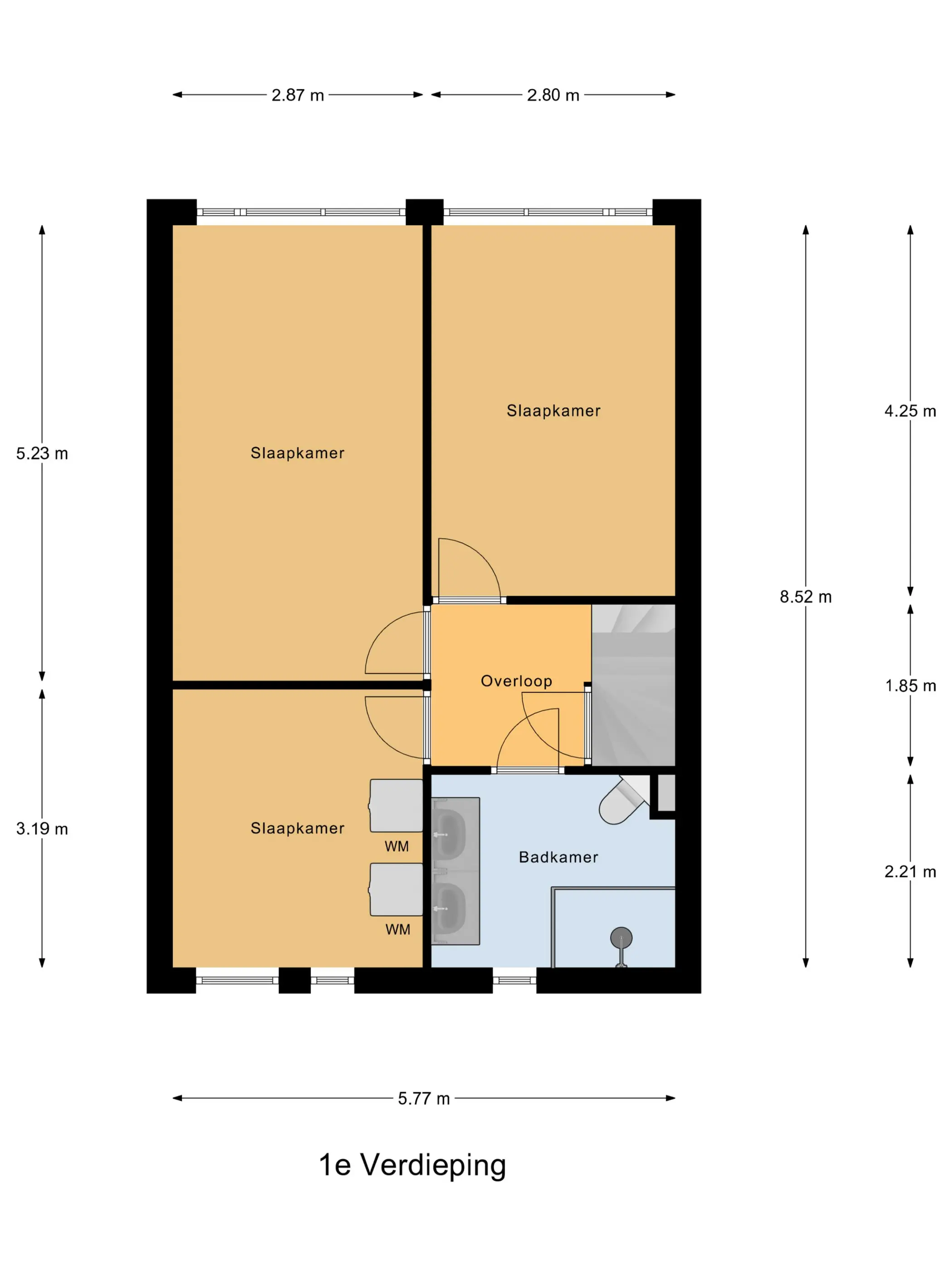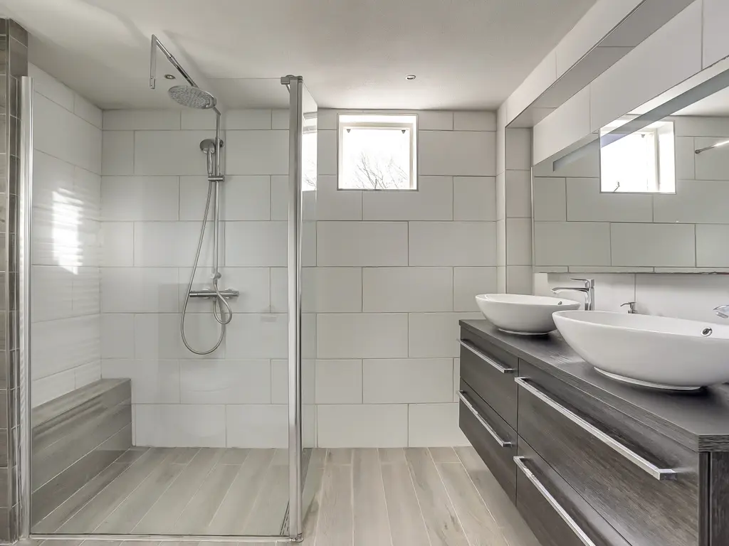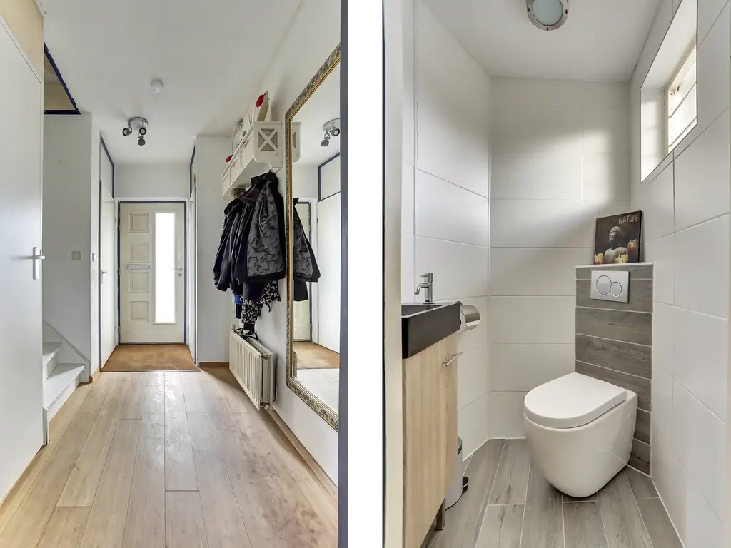 Eerste verdieping: Overloop met toegang tot drie ruime slaapkamers. De volledig betegelde badkamer is voorzien van een inloopdouche, badkamermeubel en een tweede toilet.