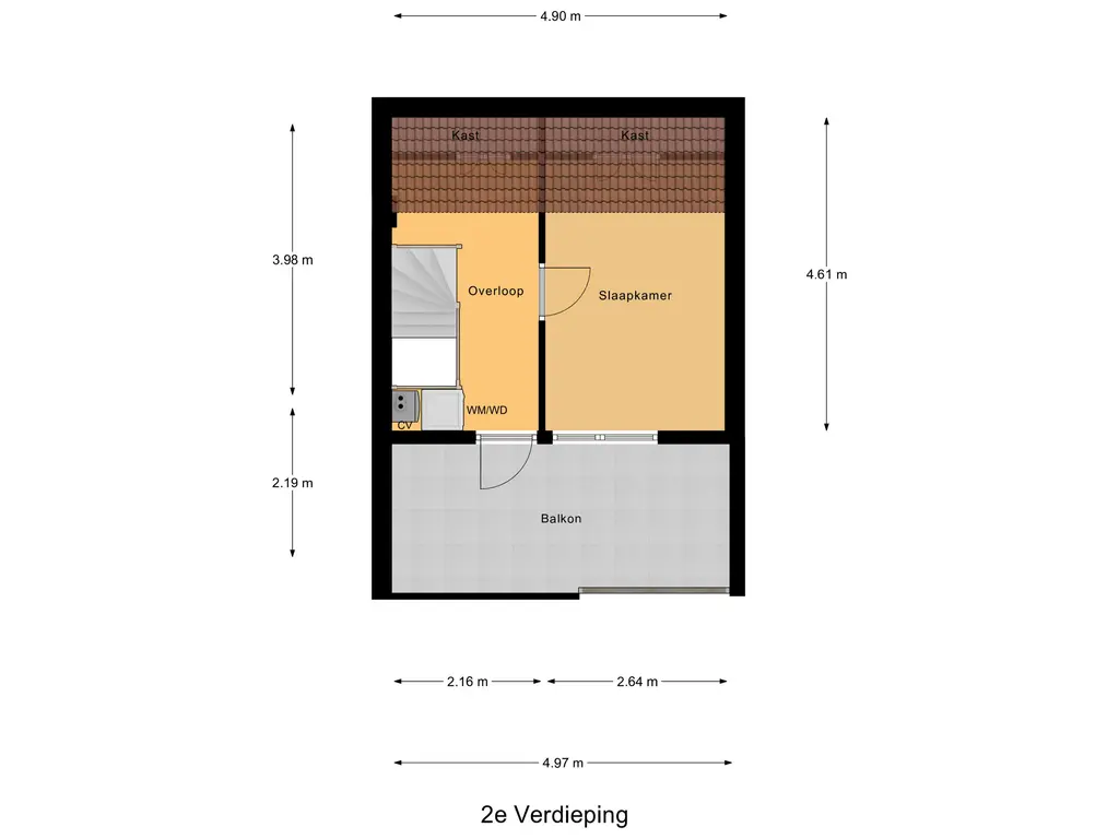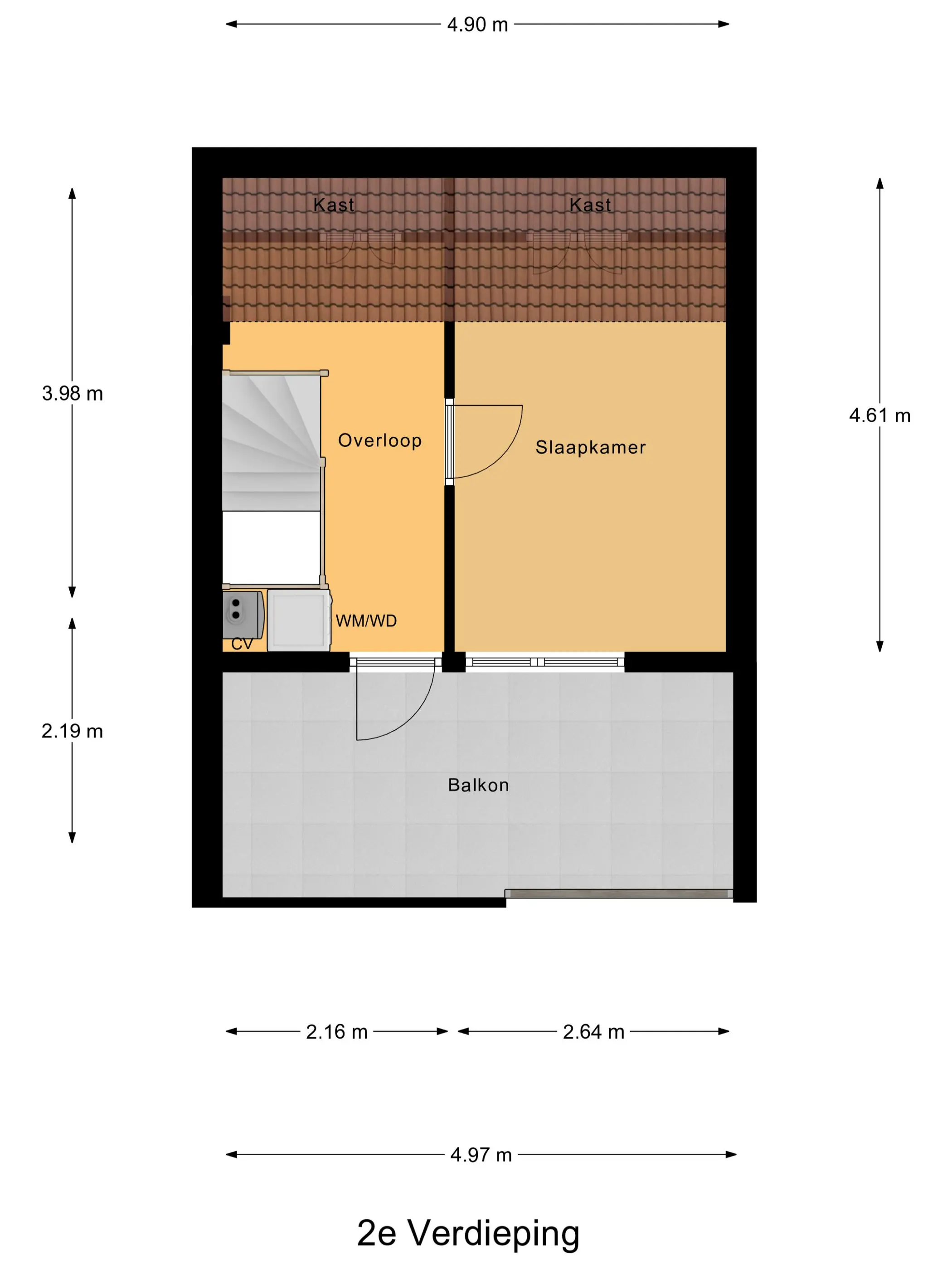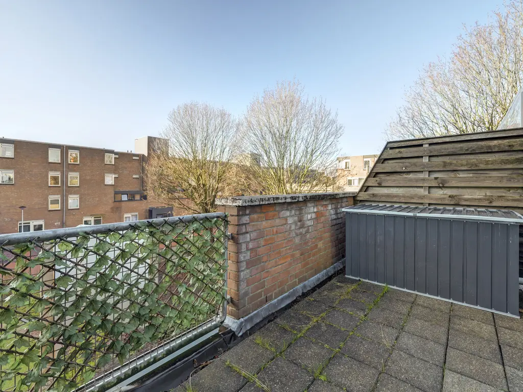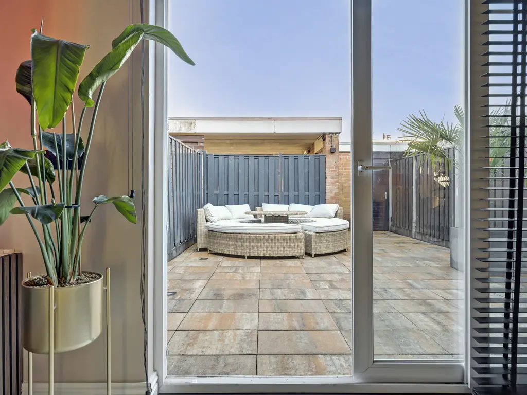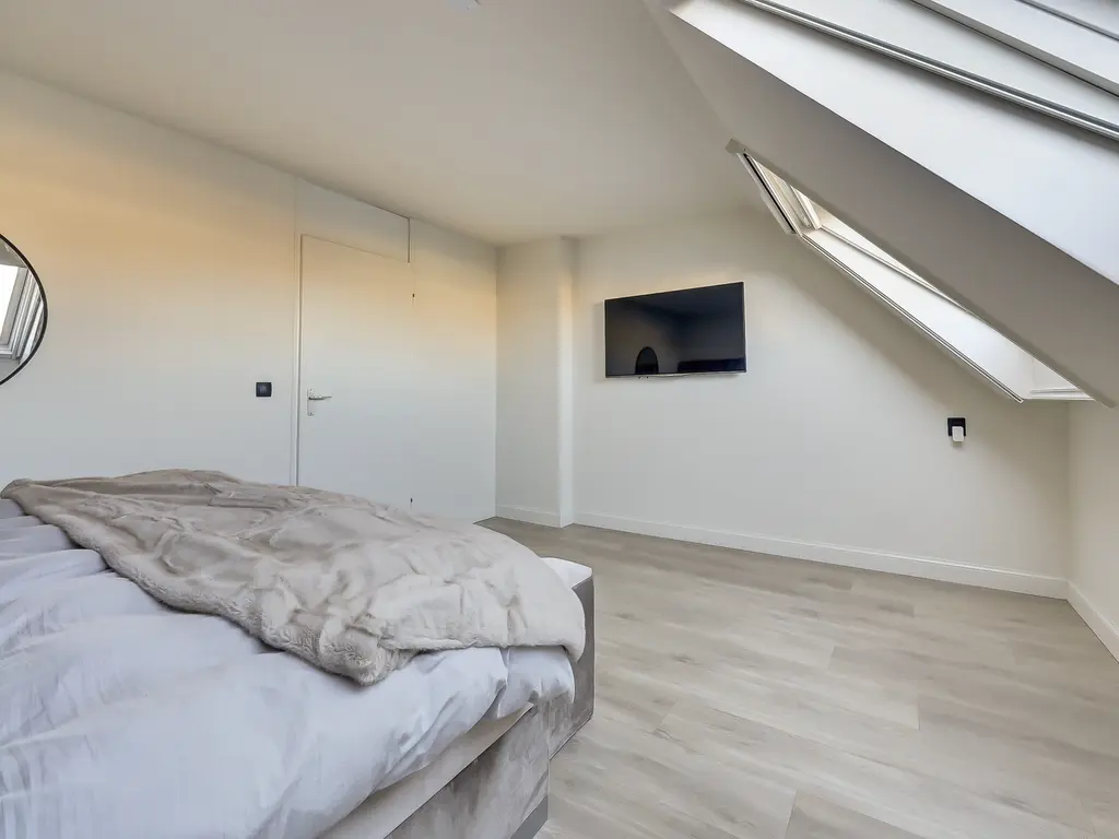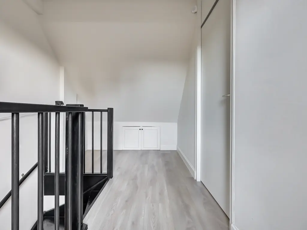Tweede verdieping: Voorzolder met ruimte voor de wasmachine- en drogeraansluiting, opstelling van de Vaillant HR combiketel (2016). Vanuit hier heeft u toegang tot het ruime en zonnige dakterras.