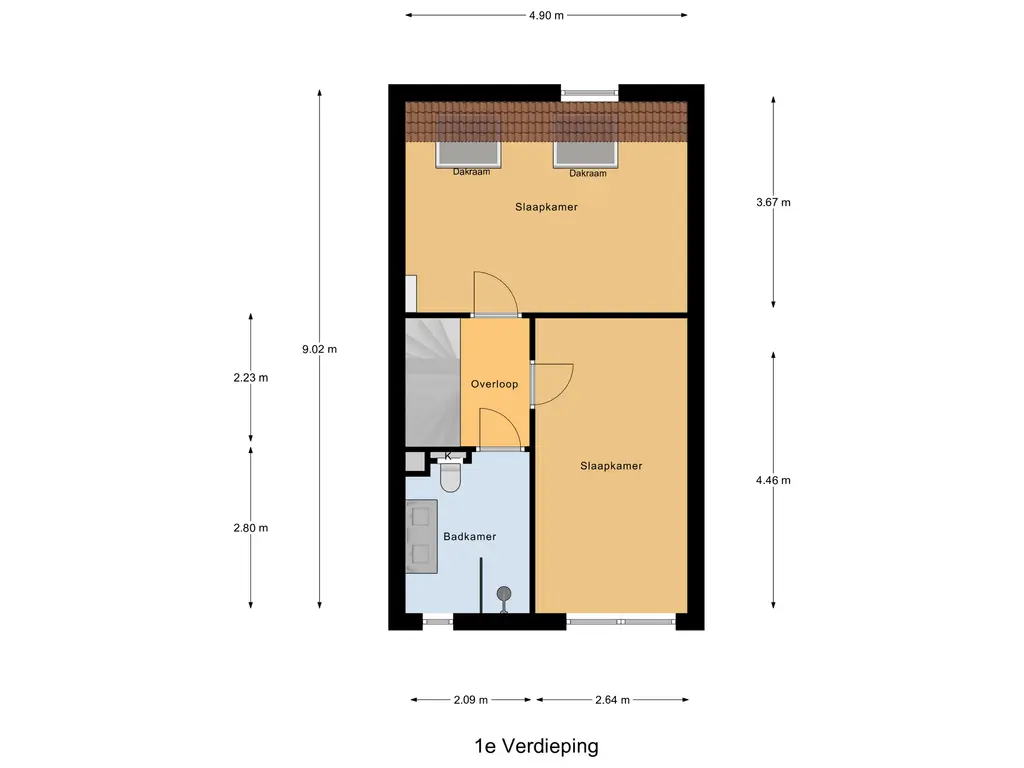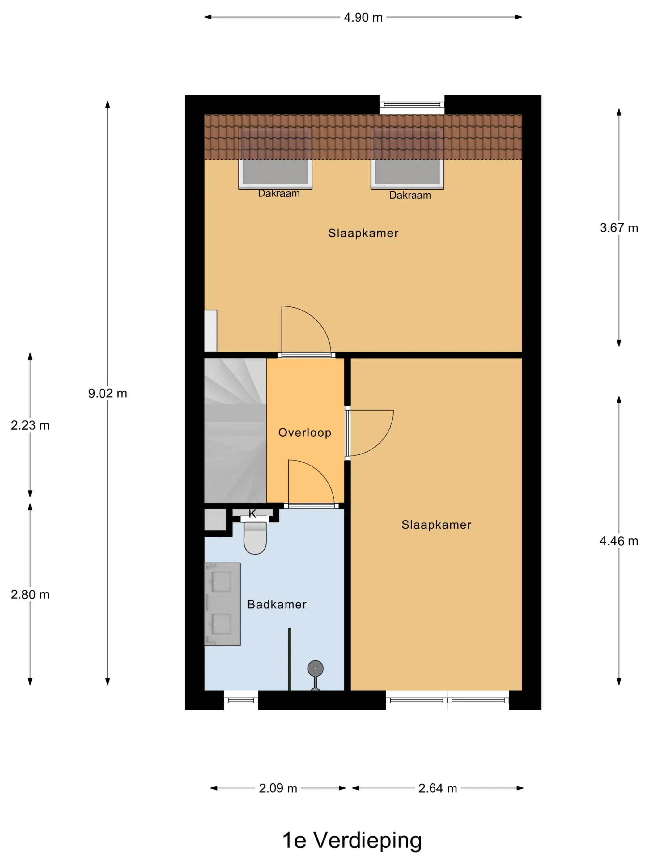 Daarnaast bevindt zich hier de ruime derde slaapkamer met PVC vloer.