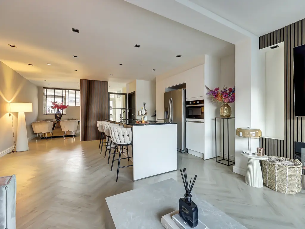 Begane grond: Via de entree/hal met vernieuwde meterkast (2023) bereikt u het moderne toilet met hangend closet en fonteintje en de trapopgang naar de eerste verdieping. De royale woonkamer van ca. 32 m² is heerlijk licht dankzij de uitbouw aan de achterzijde en biedt direct toegang tot de achtertuin. De prachtige open keuken (2023) vormt het middelpunt van de woonkamer en is uitgevoerd met een modern kookeiland en diverse hoogwaardige inbouwapparatuur, waaronder een inductiekookplaat met geïntegreerde afzuiging, kokendwaterkraan, combi-oven, vaatwasser, Amerikaanse koelkast en spoelbak.