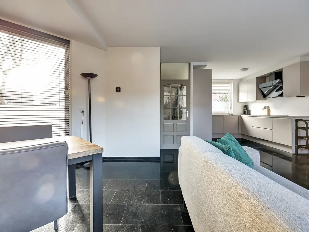 Begane grond: Entree/hal met vernieuwde meterkast en keurig toilet met fonteintje. De woonkamer is voorzien van spachtelputz wanden, een granieten vloer met vloerverwarming en een kunststof schuifpui naar de in 2019 aangelegde tuin. De moderne keuken uit 2024 is van alle gemakken voorzien: inductiekookplaat, afzuigkap, vaatwasser, koel-vriescombinatie, combi-oven, stoomoven en Quooker.