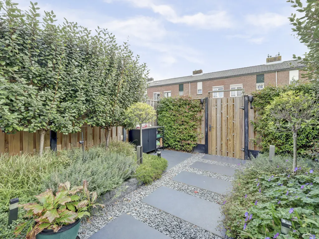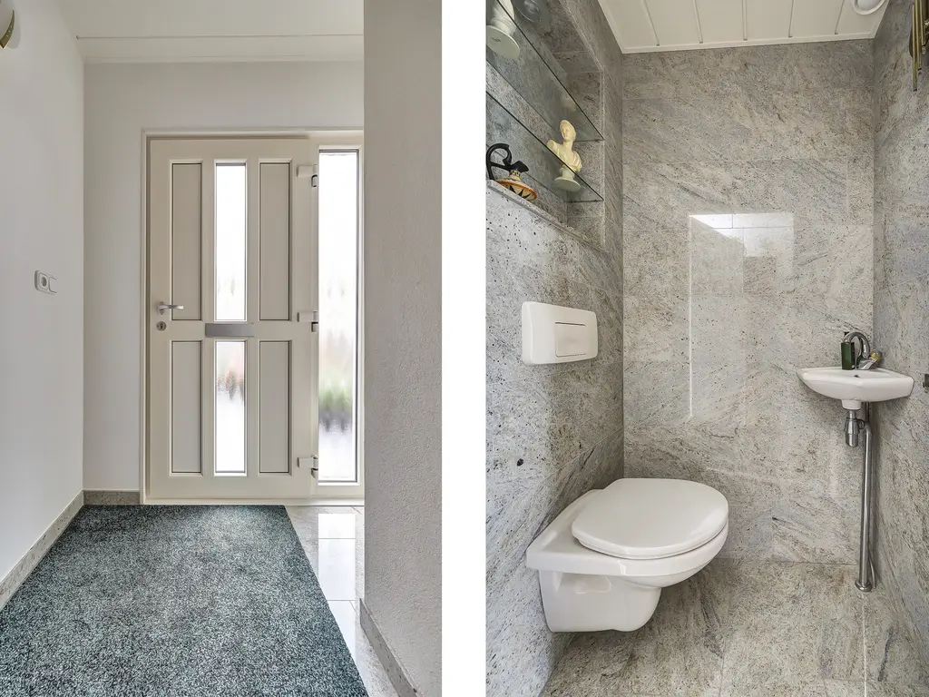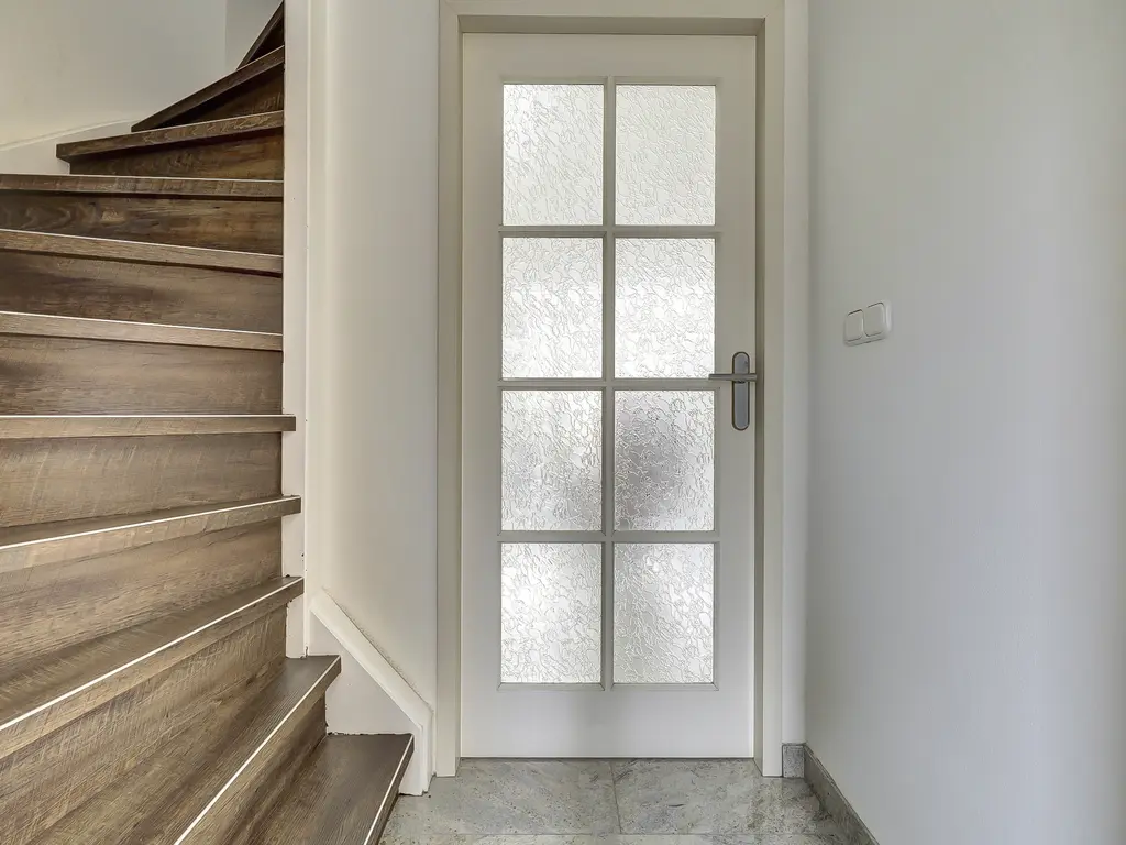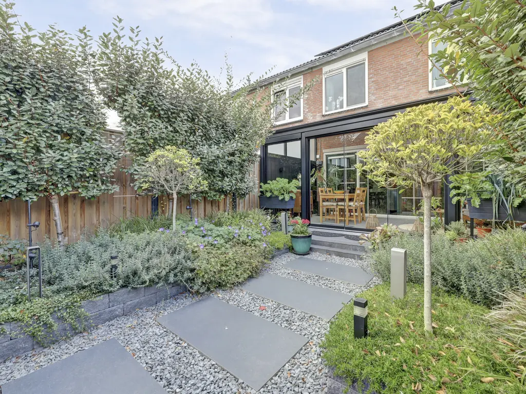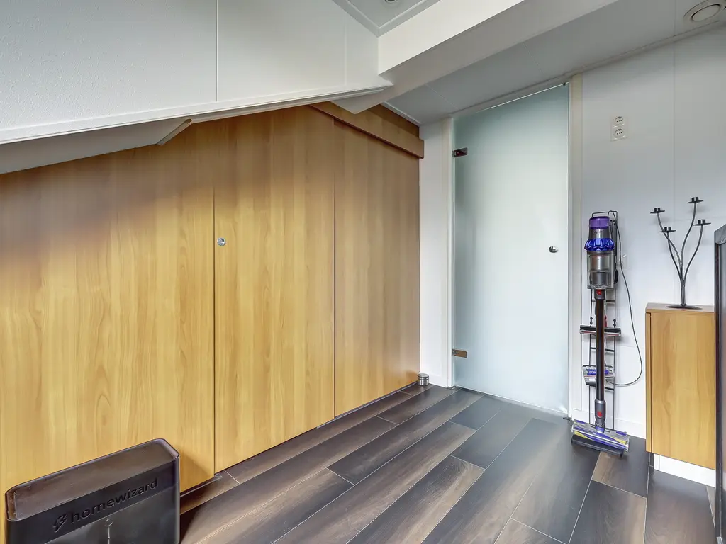 Begane grond: Via de entree met modern toilet kom je in de lichte, tuingerichte woonkamer. Dankzij de grote schuifpui staat de ruimte in direct contact met de prachtige, afsluitbare overkapping/tuinkamer (geplaatst in 2021), een heerlijke plek om het hele jaar door van het buitenleven te genieten. De achtertuin, gelegen op het zonnige zuidoosten, biedt veel privacy en nodigt uit tot ontspannen. De gehele begane grond is voorzien van vloerverwarming. Aan de voorzijde bevindt zich de moderne, halfopen keuken, uitgerust met diverse inbouwapparatuur, waaronder een kookplaat, combi-oven, klimaatkast, koelkast, vaatwasser en Quooker. Een stijlvolle en praktische plek waar koken een echt plezier is.