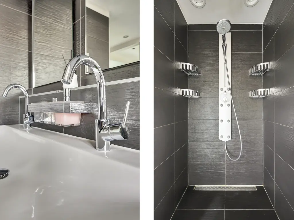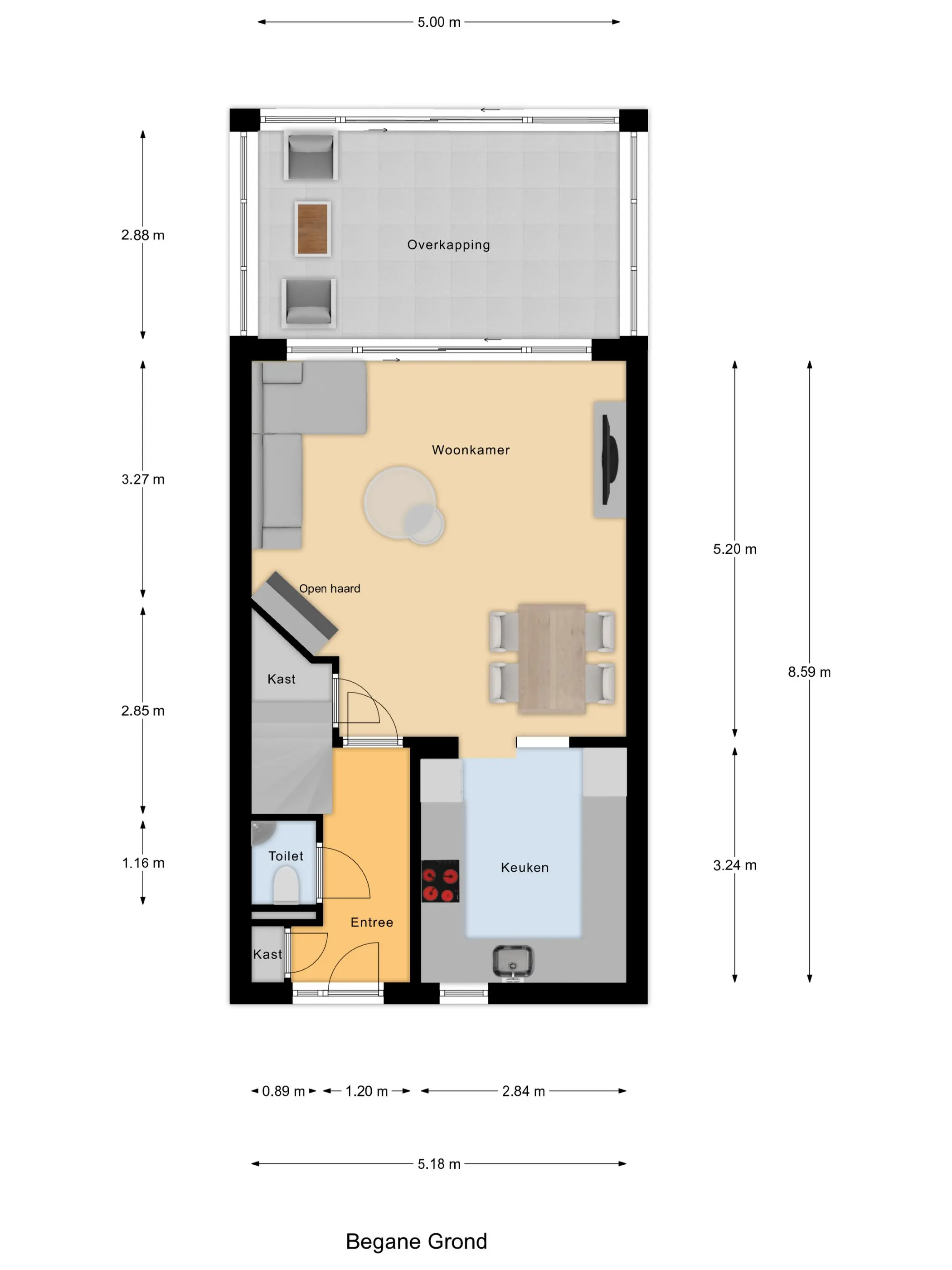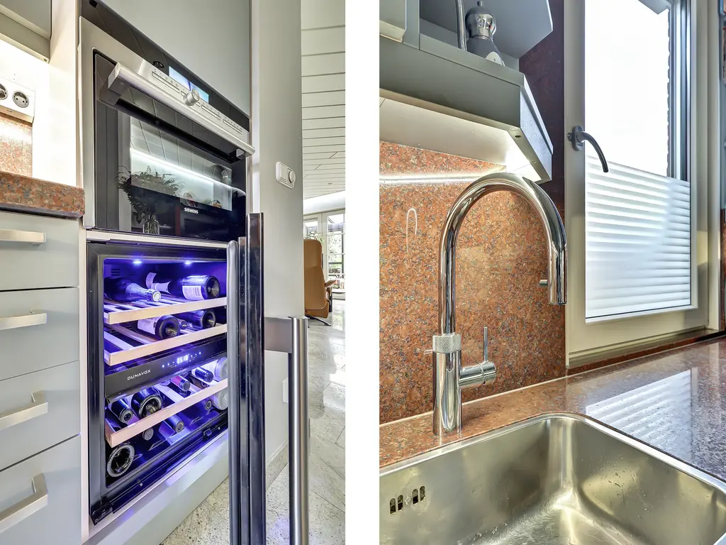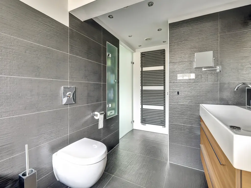 Begane grond: Via de entree met modern toilet kom je in de lichte, tuingerichte woonkamer. Dankzij de grote schuifpui staat de ruimte in direct contact met de prachtige, afsluitbare overkapping/tuinkamer (geplaatst in 2021), een heerlijke plek om het hele jaar door van het buitenleven te genieten. De achtertuin, gelegen op het zonnige zuidoosten, biedt veel privacy en nodigt uit tot ontspannen. De gehele begane grond is voorzien van vloerverwarming. Aan de voorzijde bevindt zich de moderne, halfopen keuken, uitgerust met diverse inbouwapparatuur, waaronder een kookplaat, combi-oven, klimaatkast, koelkast, vaatwasser en Quooker. Een stijlvolle en praktische plek waar koken een echt plezier is.