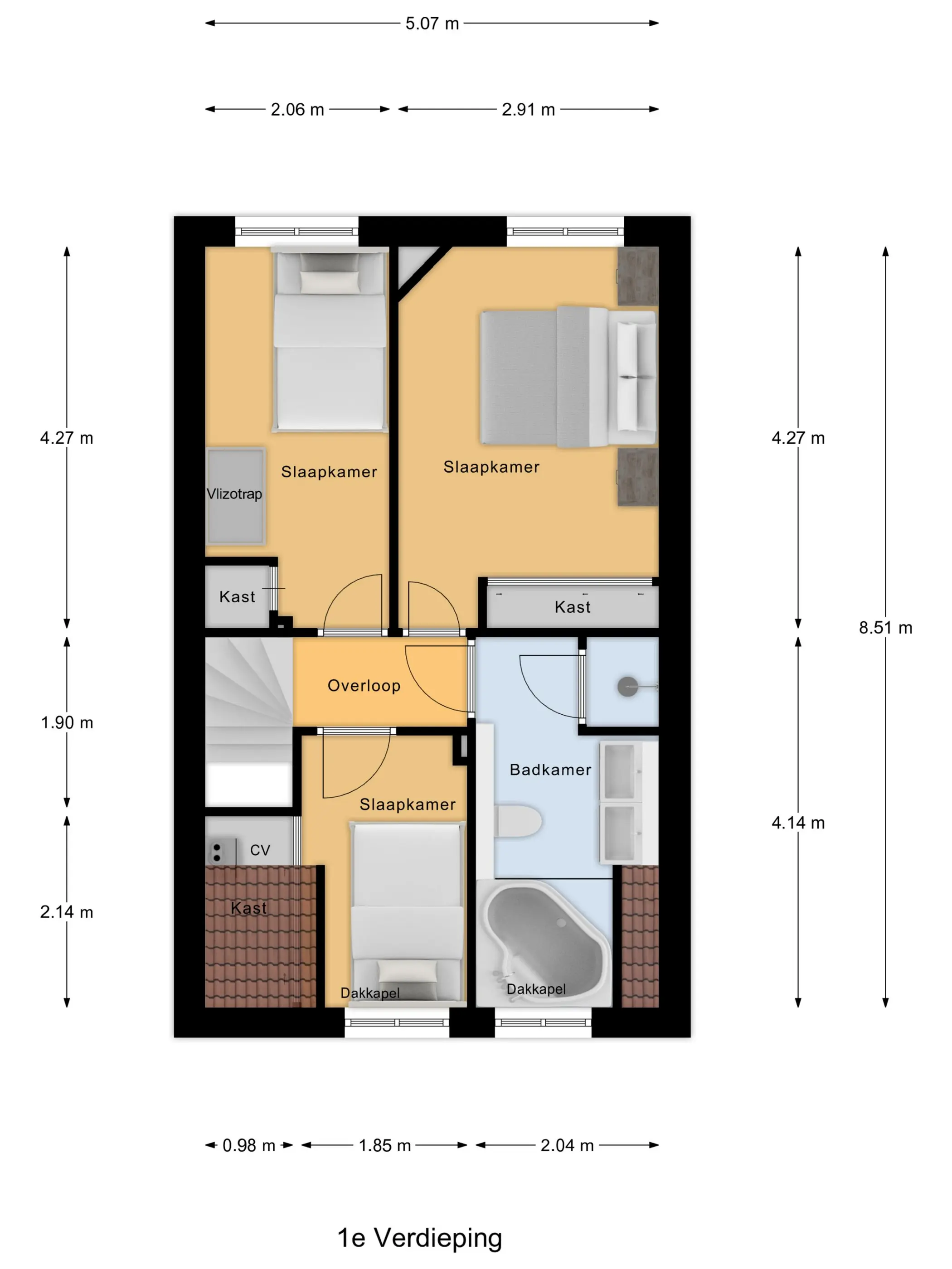 Eerste verdieping: De overloop geeft toegang tot drie slaapkamers, waarvan twee aan de achterzijde en één aan de voorzijde. De slaapkamer aan de voorzijde beschikt over een dakkapel, wat zorgt voor extra ruimte en veel lichtinval. Ook de badkamer aan de voorzijde is voorzien van een dakkapel, waardoor deze opvallend ruim en licht is. De moderne badkamer is uitgerust met een dubbele wastafel, douche, toilet en whirlpool, een heerlijke plek om te ontspannen na een lange dag.