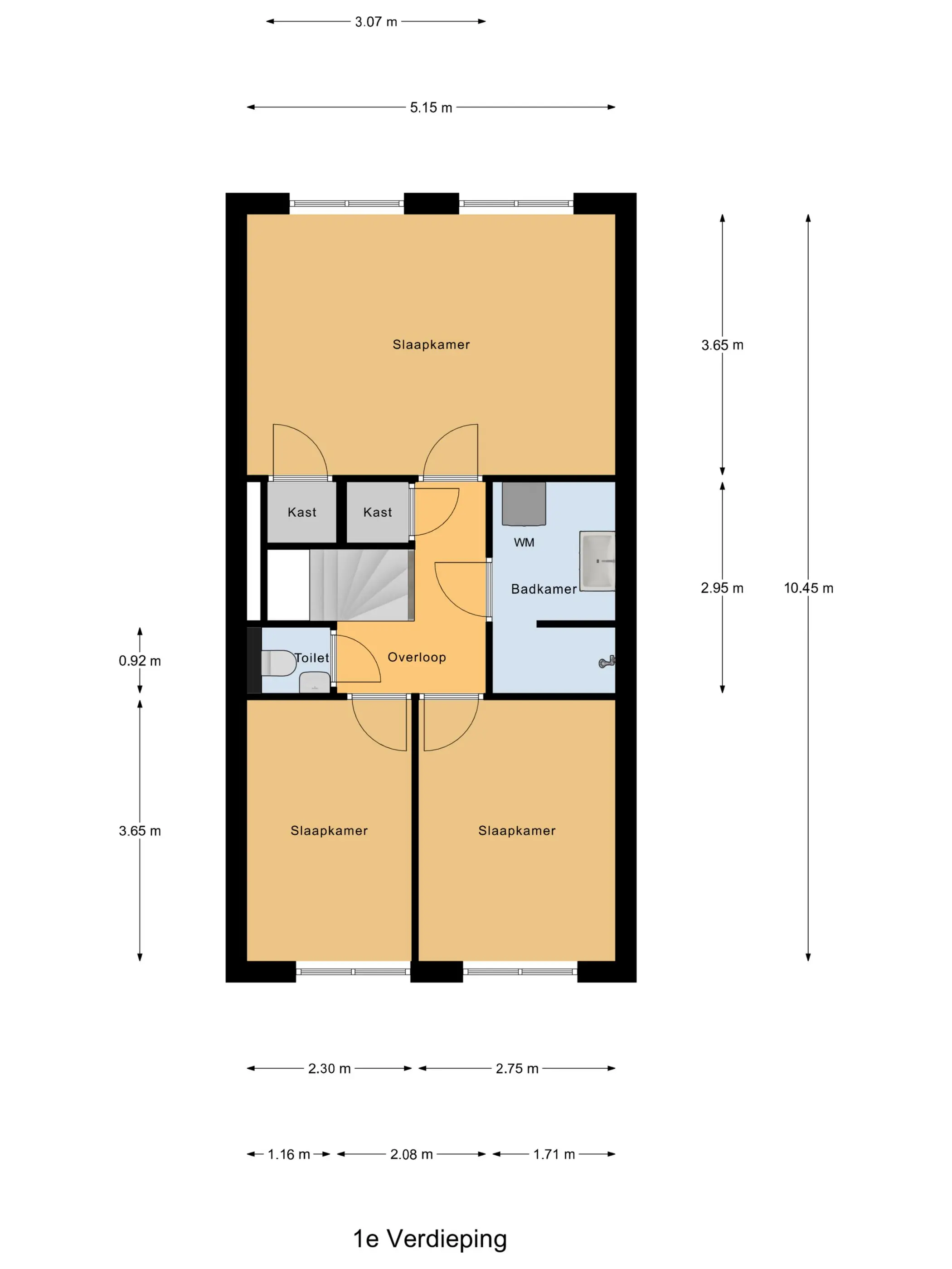 1e verdieping: Ruime overloop met lichtkoepel. Drie goed bemeten slaapkamers, allemaal voorzien van een nette laminaatvloer; de hoofdslaapkamer beschikt bovendien over airconditioning. Een modern separaat toilet en een frisse badkamer, volledig betegeld en uitgerust met inloopdouche, wastafelmeubel en wasmachineaansluiting. Daarnaast is er een aparte ruimte met CV-combiketel (Intergas, 2022, lease).