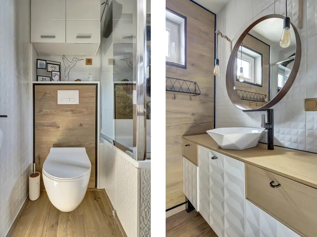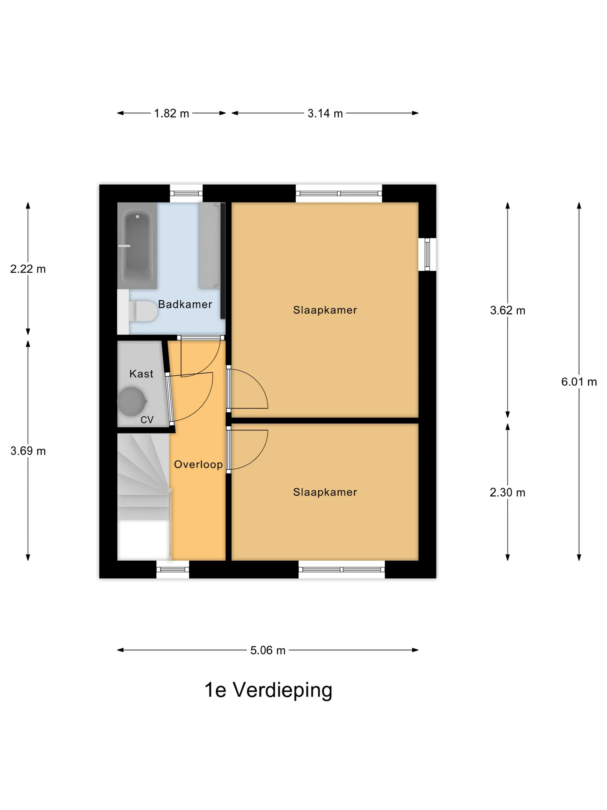 De overloop biedt toegang tot twee ruime slaapkamers, beide voorzien van een nette laminaatvloer. Daarnaast is er een aparte wasruimte met aansluitingen voor wasmachine en droger. De moderne badkamer is geheel betegeld en beschikt over een ligbad/douche, wastafelmeubel en een tweede toilet.