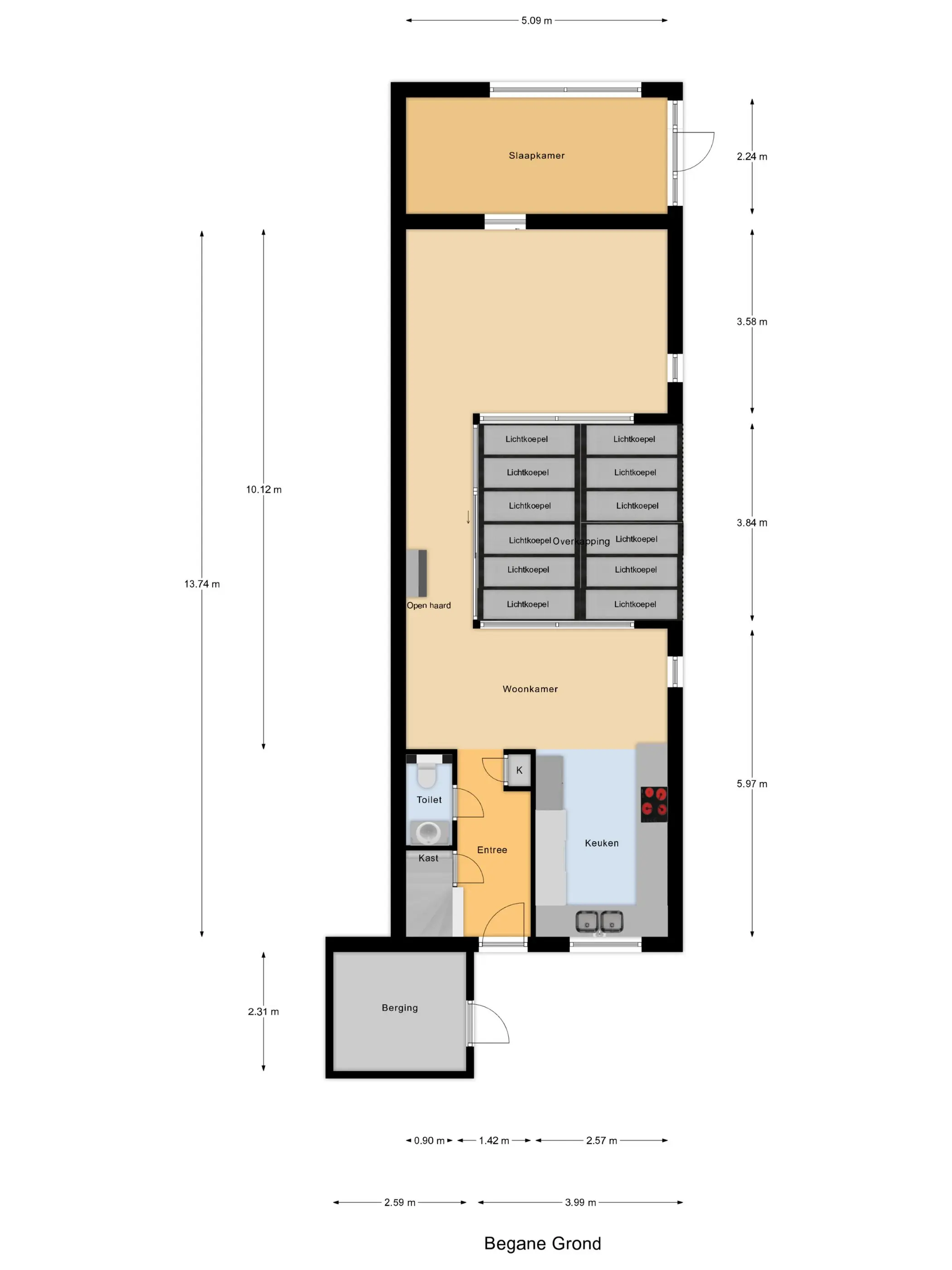Via de entree komt u in de hal met trapopgang, trapkast, moderne toiletruimte en meterkast. De ruime moderne keuken aan de voorzijde is uitgevoerd in een praktische U-opstelling en voorzien van diverse inbouwapparatuur: een inductiekookplaat, afzuigkap, oven, magnetron, vaatwasser en een grote Amerikaanse koelkast.