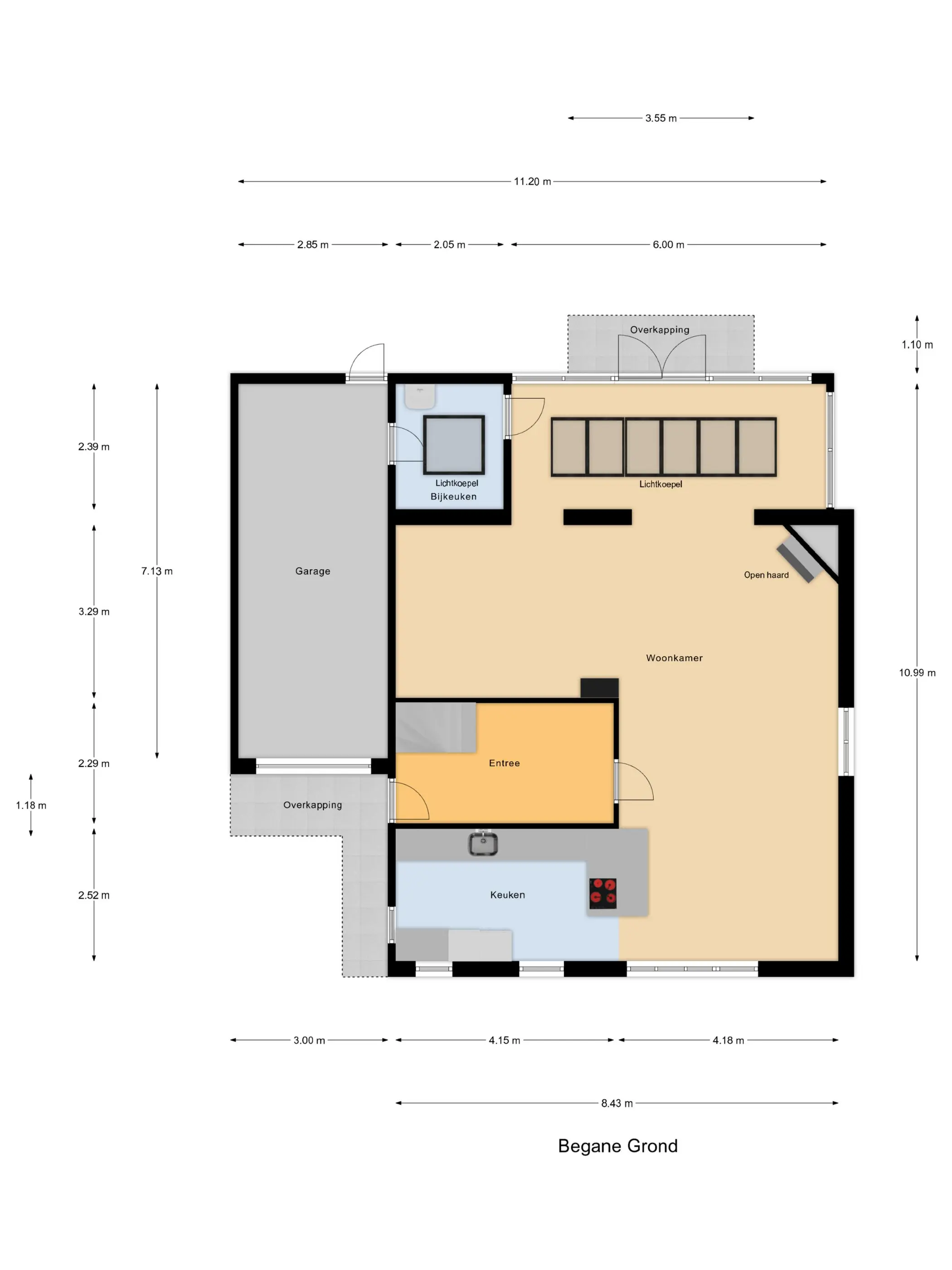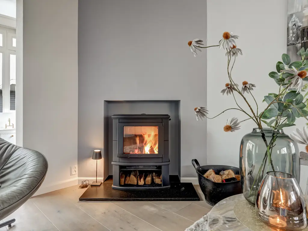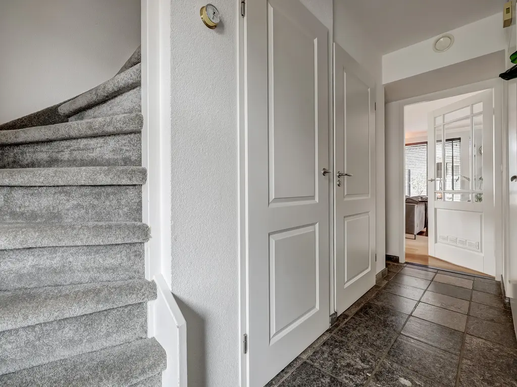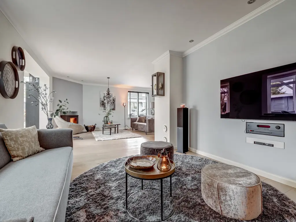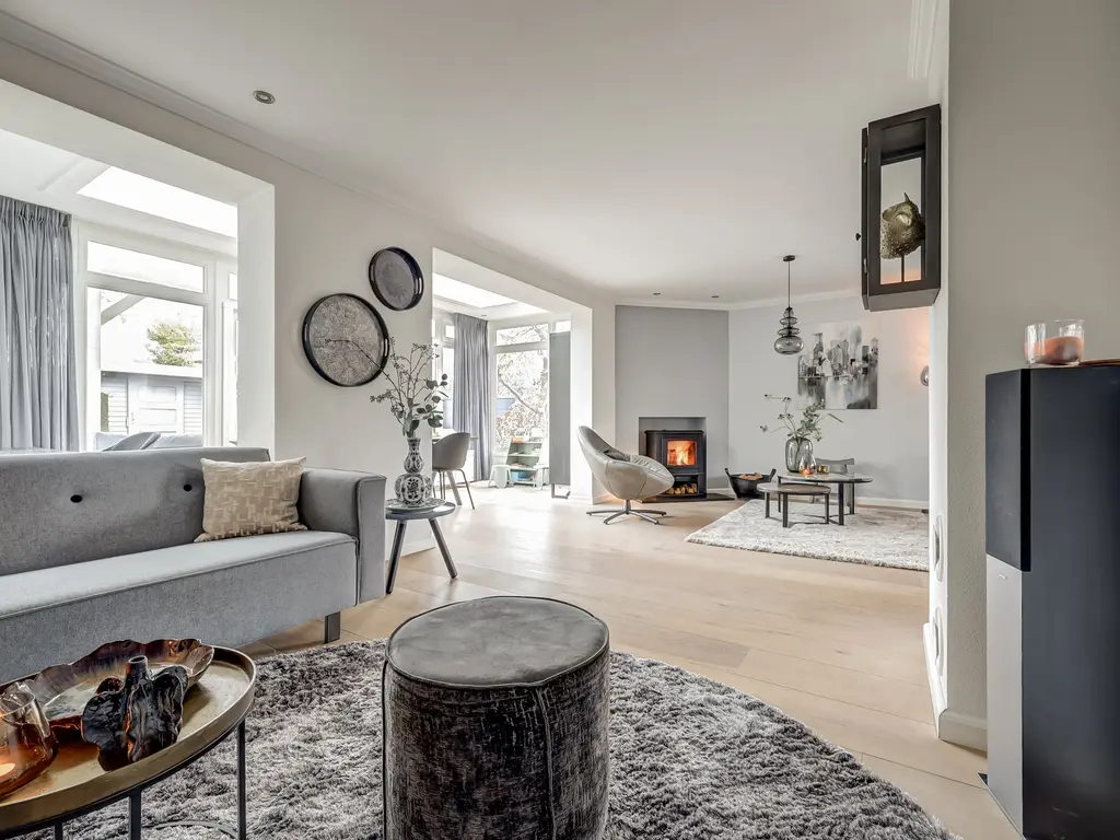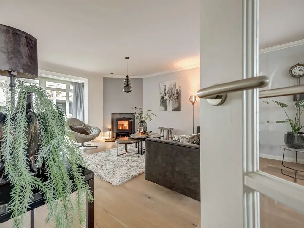 Begane grond: Via de ruime entree met meterkast, trapopgang en modern zwevend toilet betreed je de sfeervolle woonkamer. Deze royale leefruimte biedt meerdere gezellige zitgedeeltes, waaronder een fijne tv-hoek, een knusse openhaardhoek met open haard en een lichte serre met prachtige lichtstraat en airco. Dankzij de grote raampartijen en de open indeling geniet je hier de hele dag van natuurlijk licht en een heerlijke sfeer.