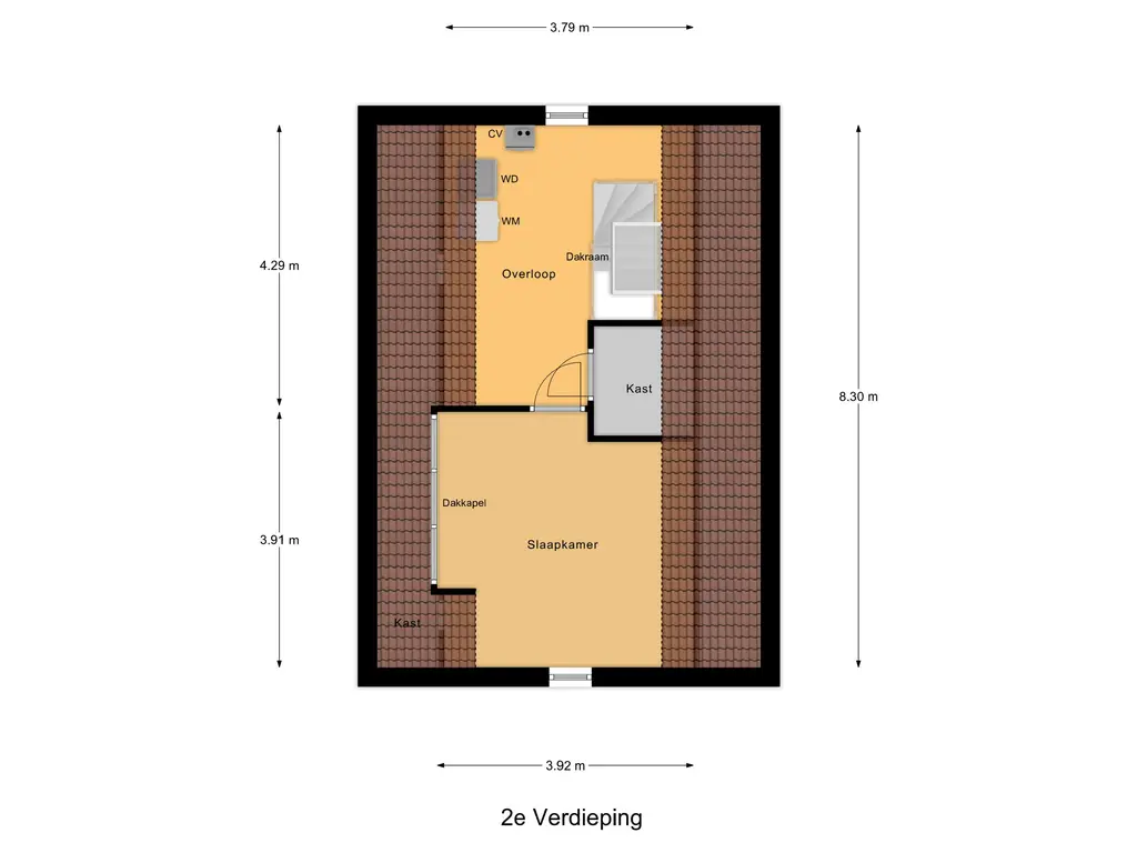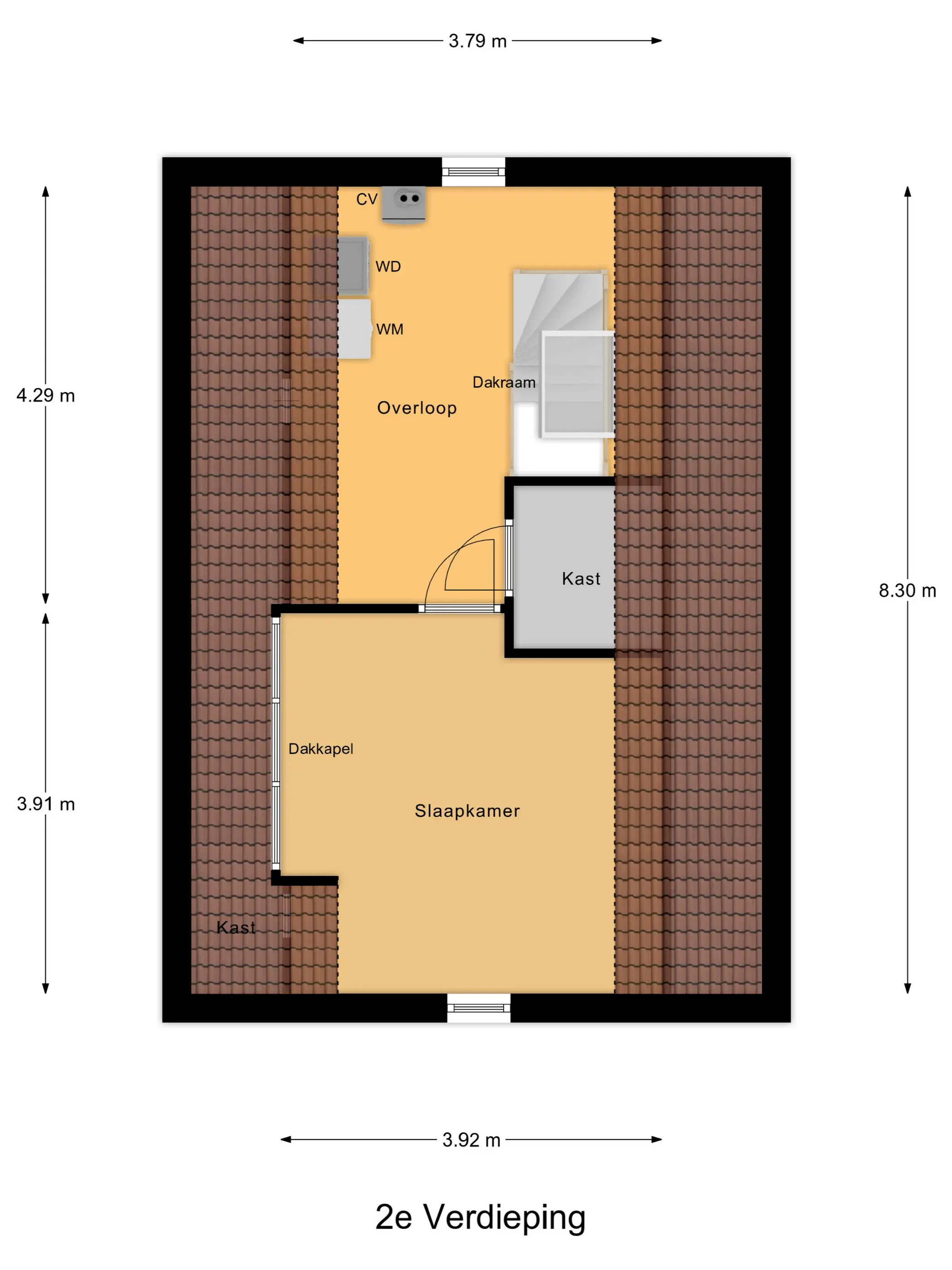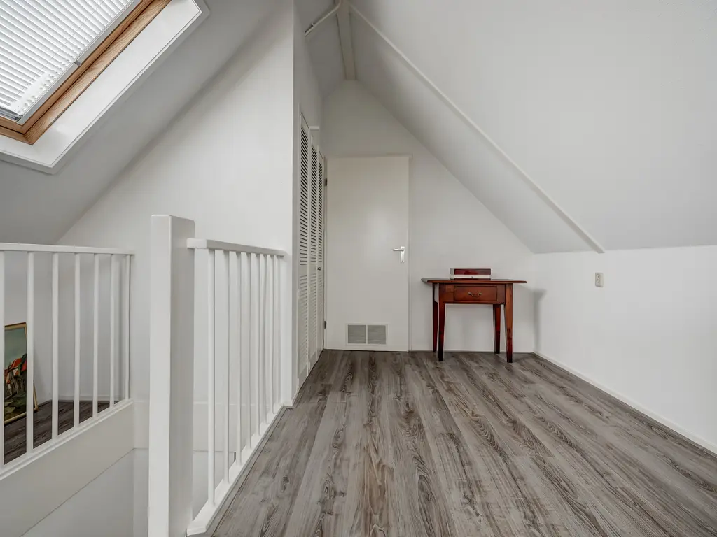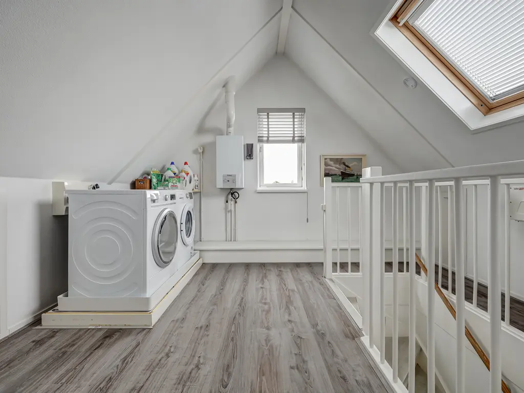 Tweede verdieping: Via een vaste trap bereik je de ruime zolderverdieping. Hier vind je de voorzolder met opstelplaats voor de cv-ketel en wasapparatuur, en een vierde ruime slaapkamer met dakkapel.