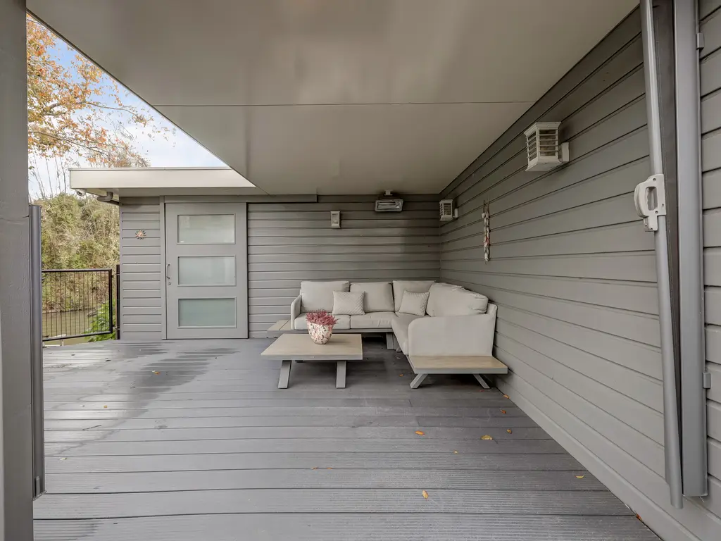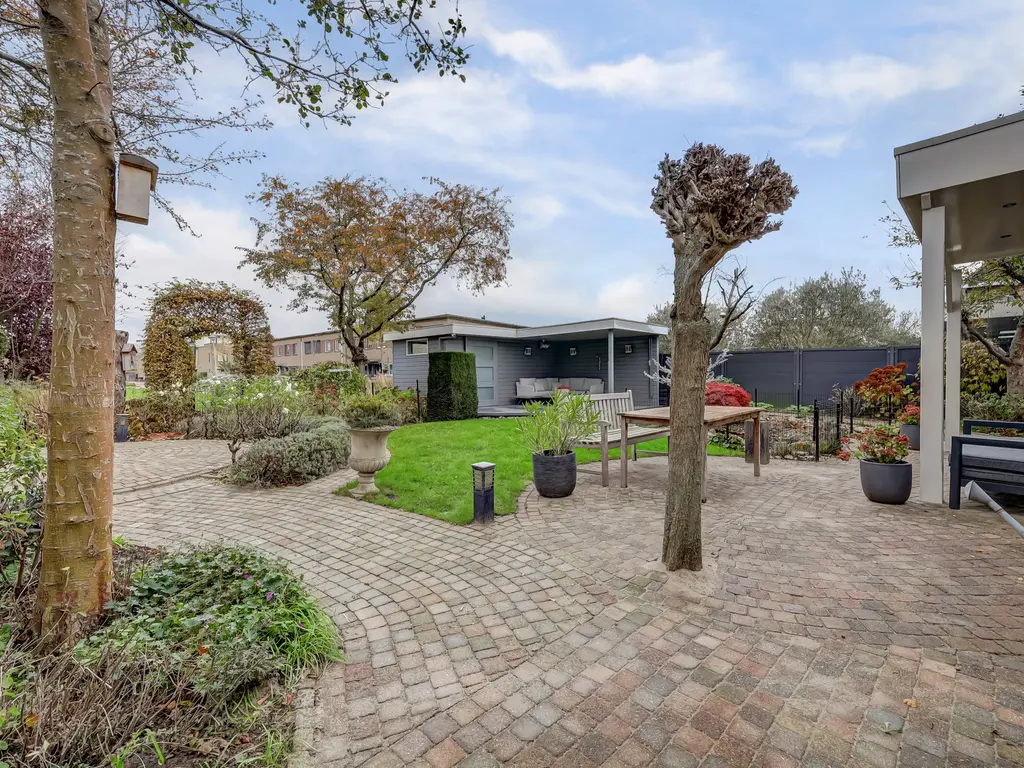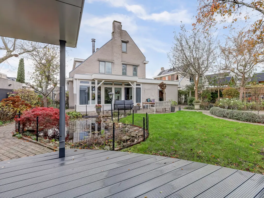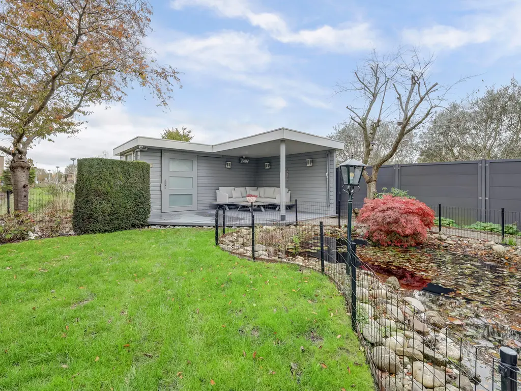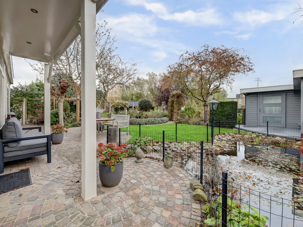 Tuin: De prachtig aangelegde tuin is een echte oase van rust. Gelegen aan het water en voorzien van meerdere terrassen, waaronder een sfeervol vlonderterras bij de berging, is dit de perfecte plek om te ontspannen of te genieten met familie en vrienden. De grote houten berging met overkapping maakt het plaatje compleet, hier kun je het hele jaar door heerlijk buiten zitten.
