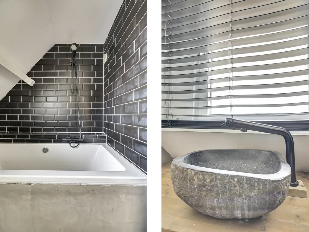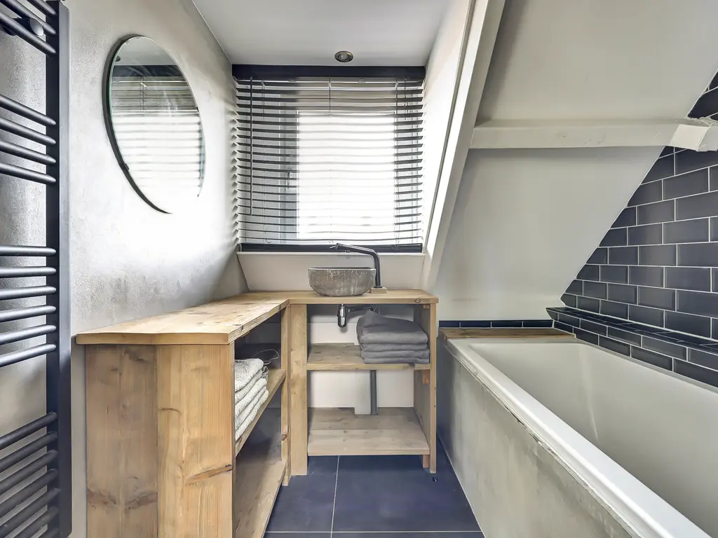 3e Verdieping: Overloop met opstelplaats voor de CV-ketel en de aansluiting voor de wasmachine. De ruime slaapkamer is voorzien van twee dakkapellen en een grote vaste kast. De moderne badkamer (2018) is ingericht met een ligbad, meubel met waskom en een handdoekenradiator.