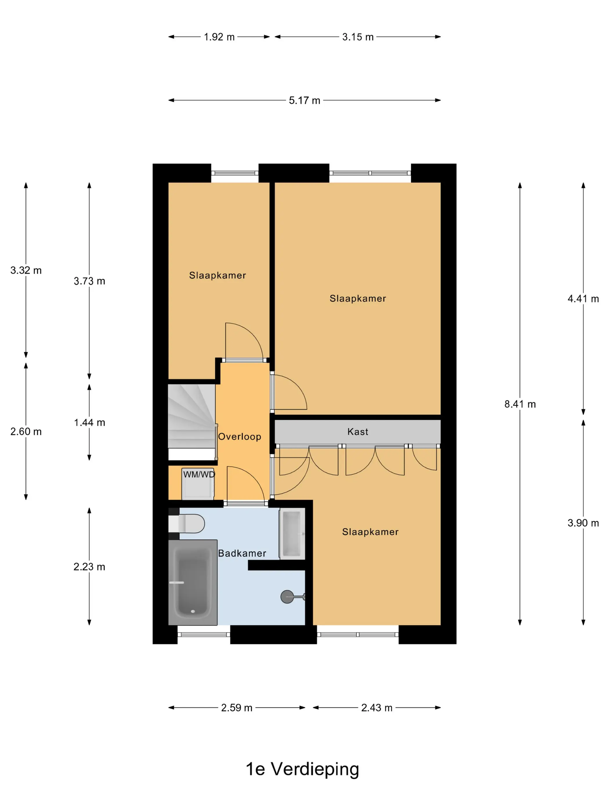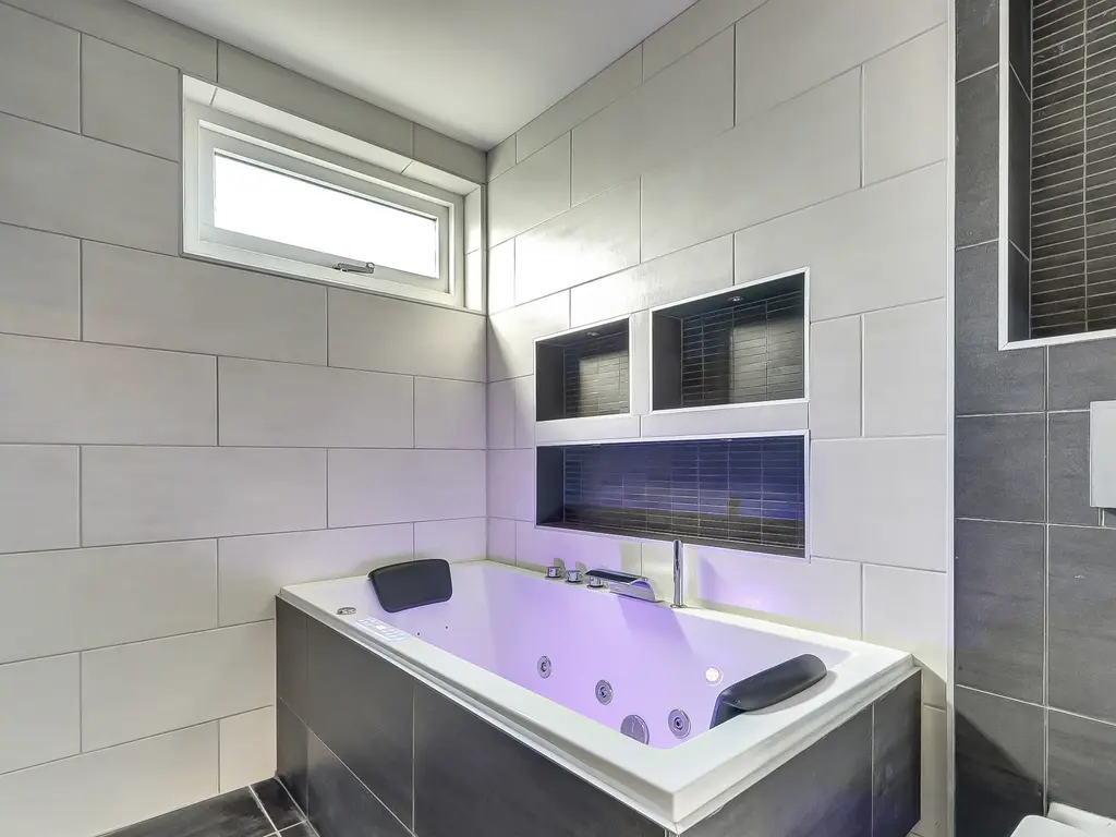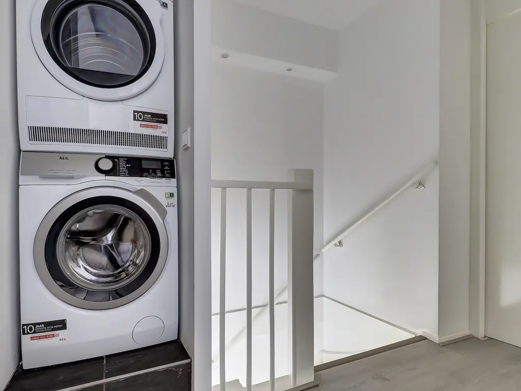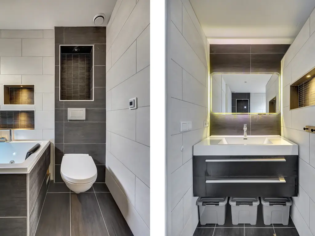 1e Verdieping: Vanaf de overloop heb je toegang tot drie ruime slaapkamers, allemaal met laminaatvloer en rechte gevels, waardoor de kamers optimaal in te delen zijn. De moderne badkamer is vergroot en tot bovenaan betegeld en beschikt over een inloopdouche, whirlpool, wastafel met meubel, zwevend toilet en elektrische vloerverwarming. De overloop beschikt over een ruimte voor de wasmachine en droger.