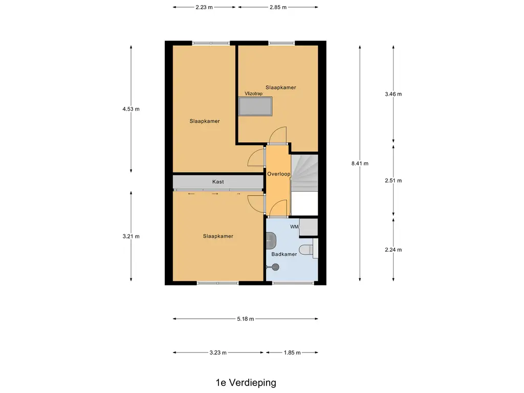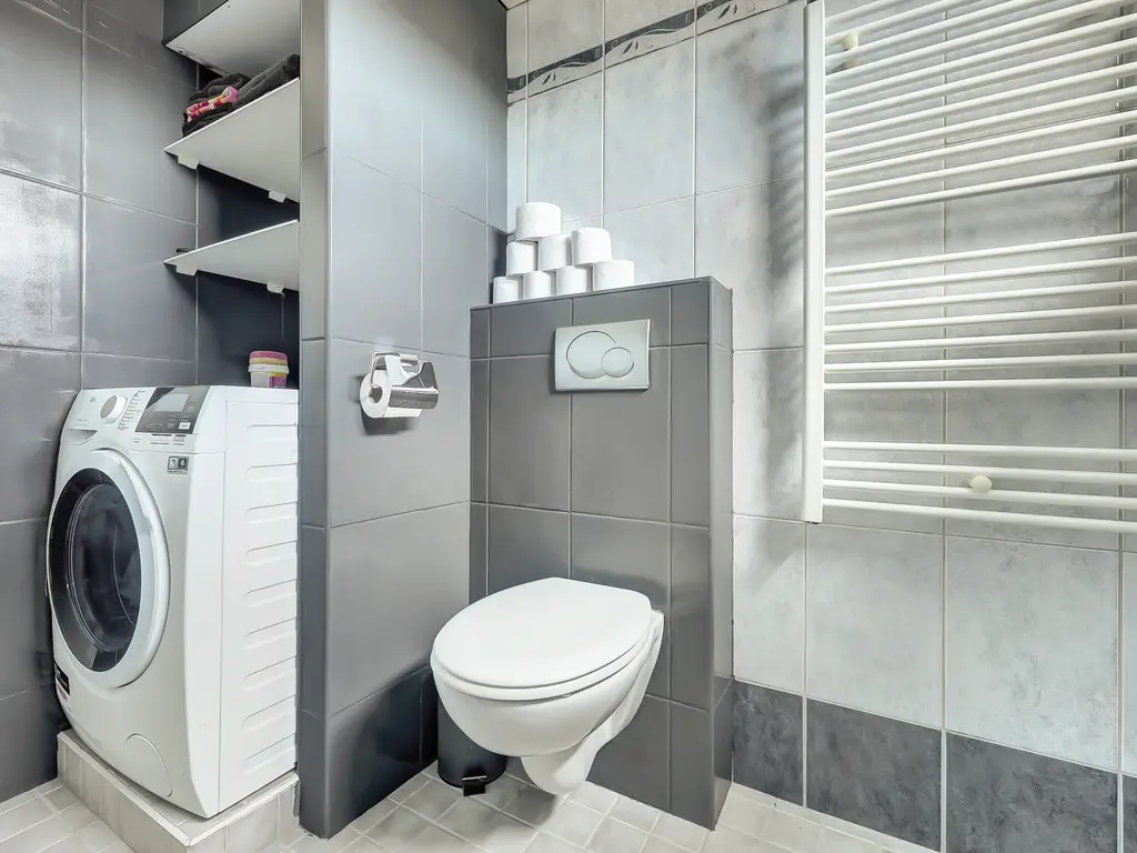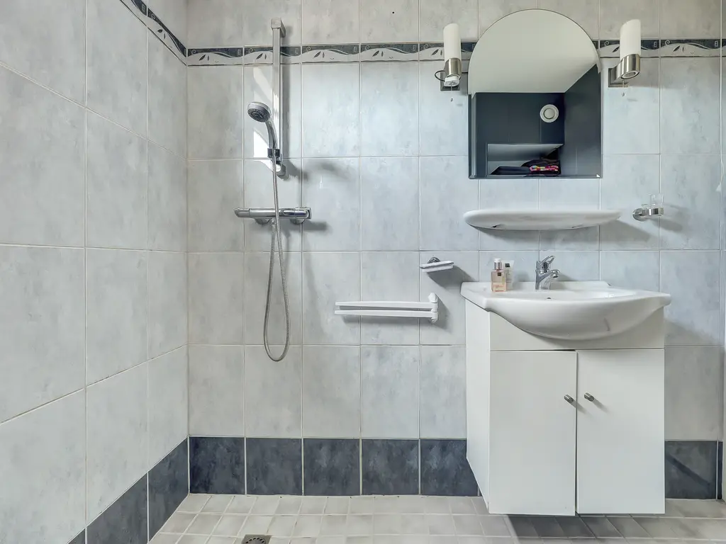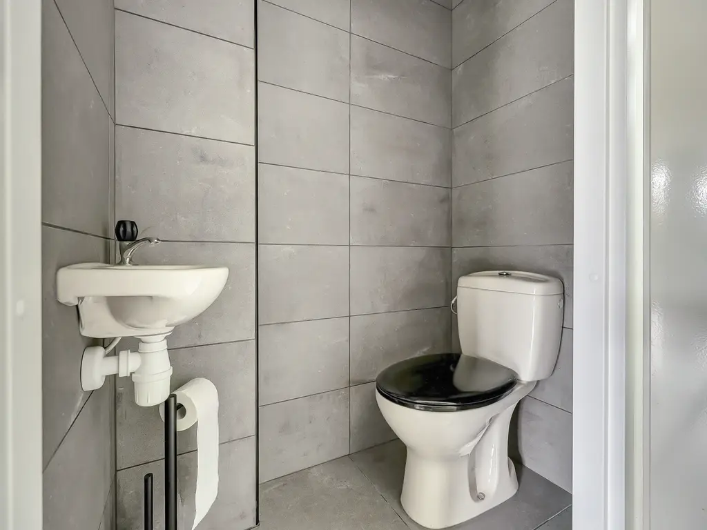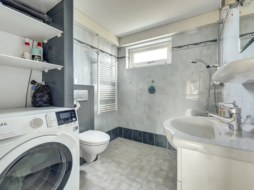 1e Verdieping: De overloop biedt toegang tot drie ruime slaapkamers, allemaal met laminaatvloer en een rechte geveloptrek. De badkamer is voorzien van een douche, wastafel en hangend toilet. Ook de aansluiting voor wasmachine en droger vind je hier.