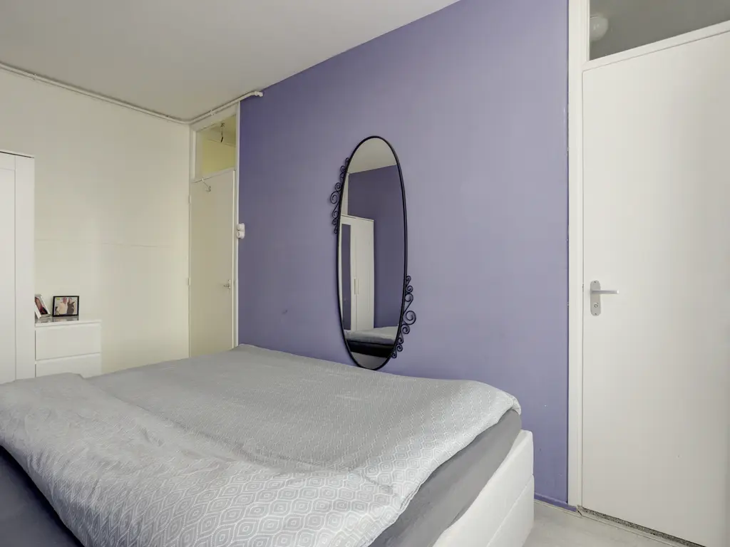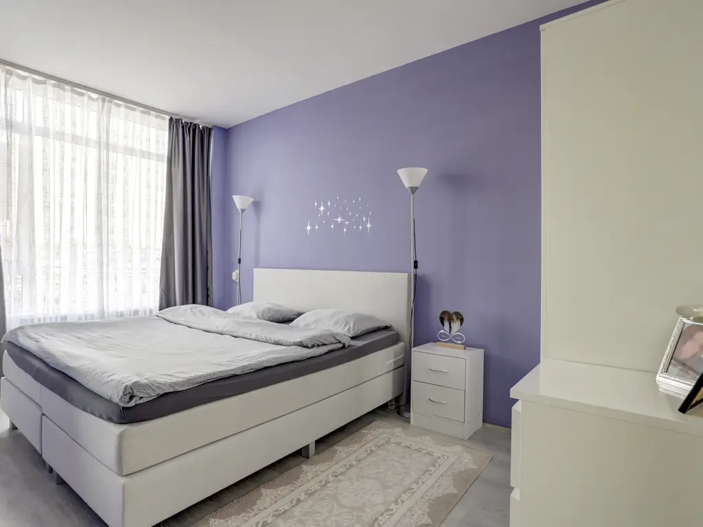 Slaapkamer 1: De ouderslaapkamer (ca. 12 m²) ligt aan de achterzijde van het appartement en is zowel vanuit de woonkamer als vanuit de hal te bereiken. De kamer beschikt over een balkon van ca. 2.51 m x 1.05 m, gesitueerd op het westen.
