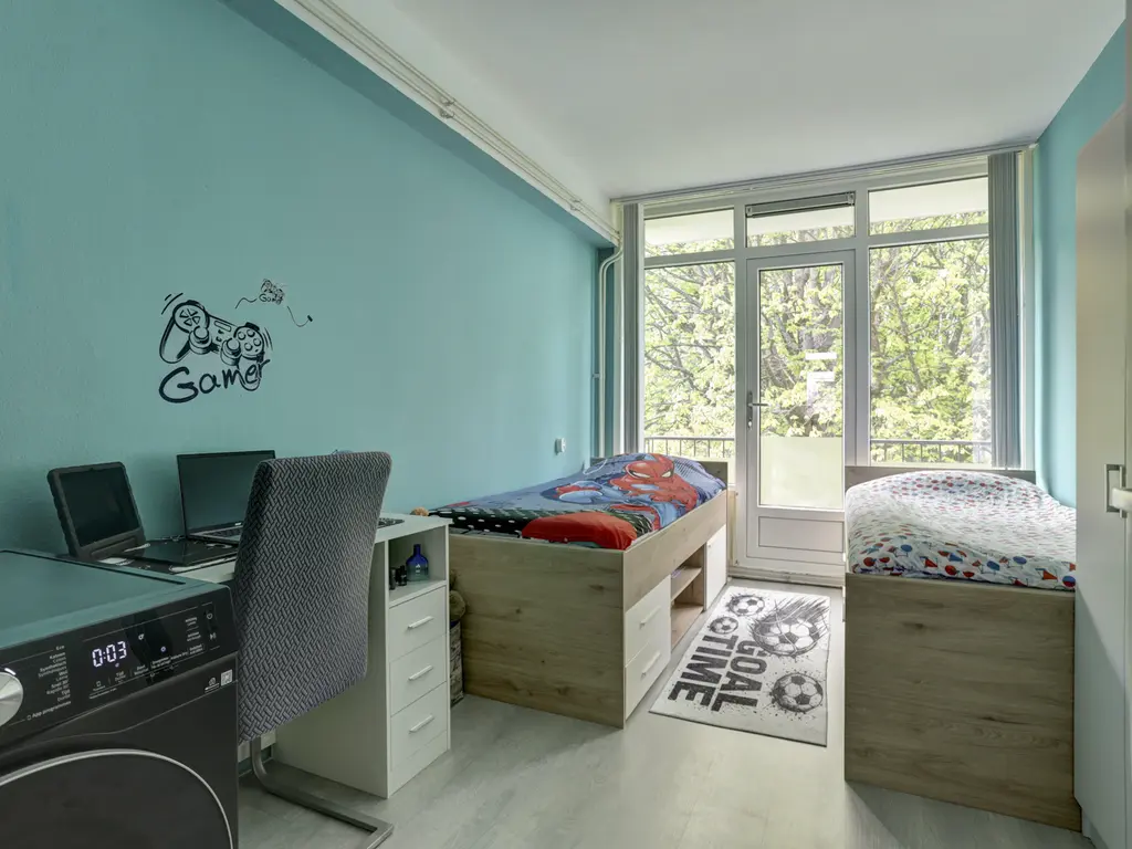 Slaapkamer 2: Deze kamer (ca. 11 m²) bevindt zich aan de voorzijde van de woning en geeft toegang tot de naastgelegen badkamer.