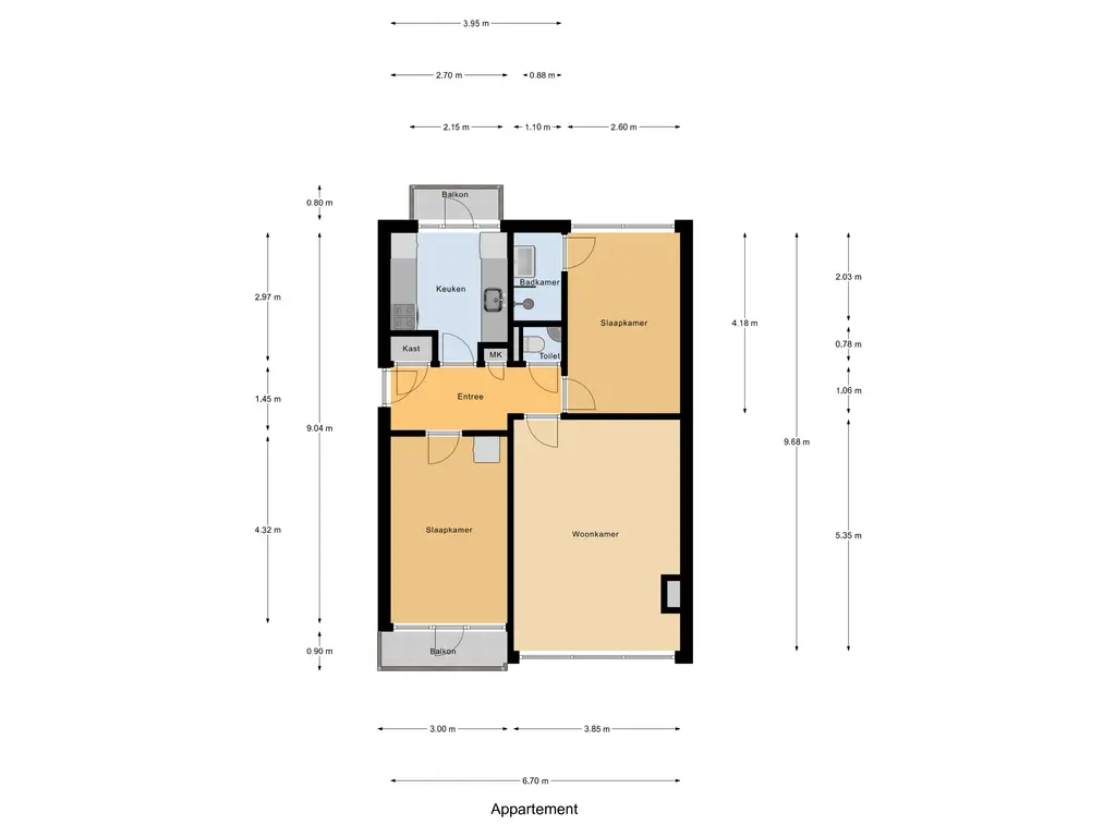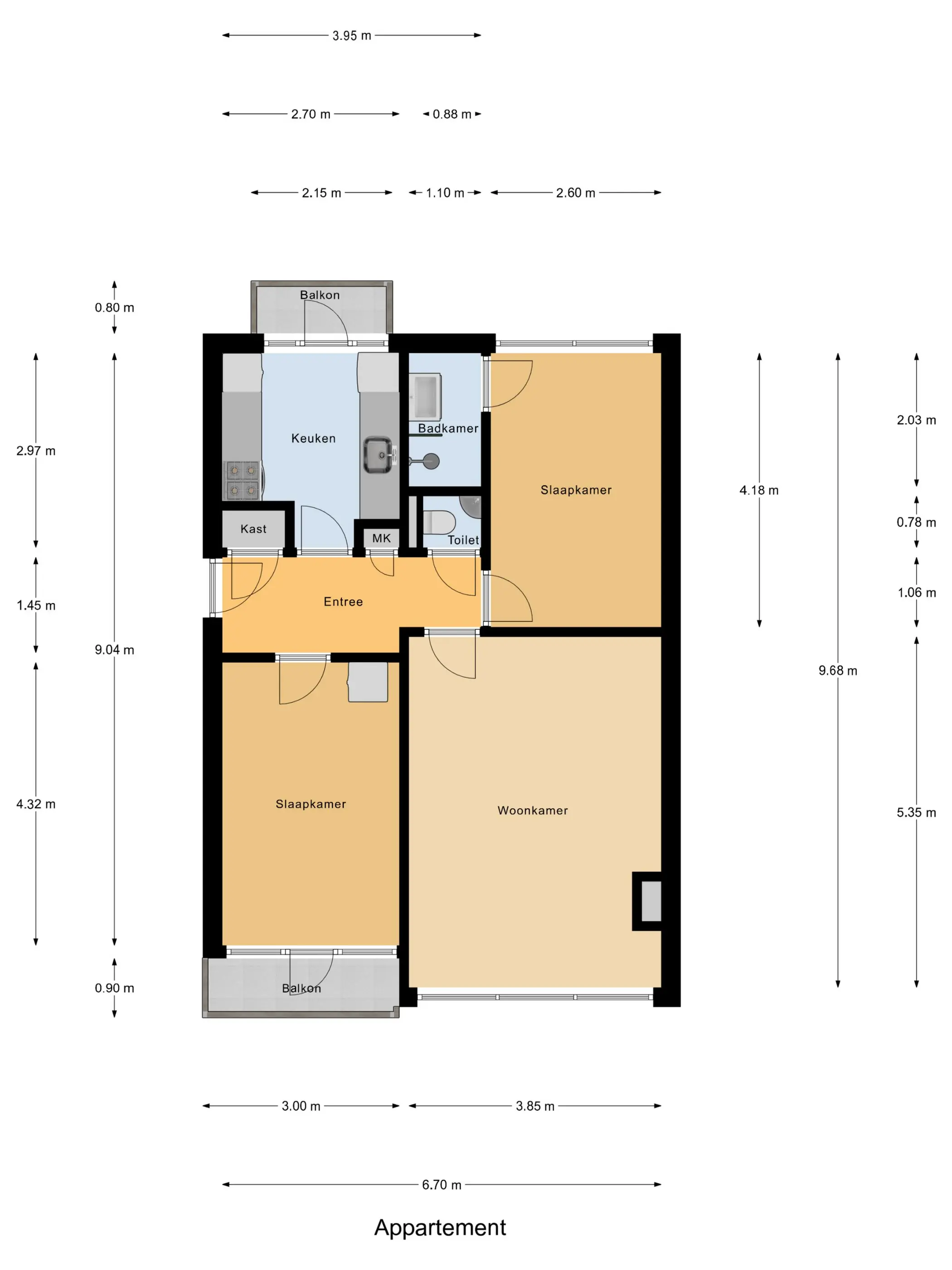 Keuken: De separate keuken is uitgerust met een verzorgde inrichting. Via de keuken is er toegang tot het balkon aan de voorzijde (ca. 2.14 x 1.06 m).