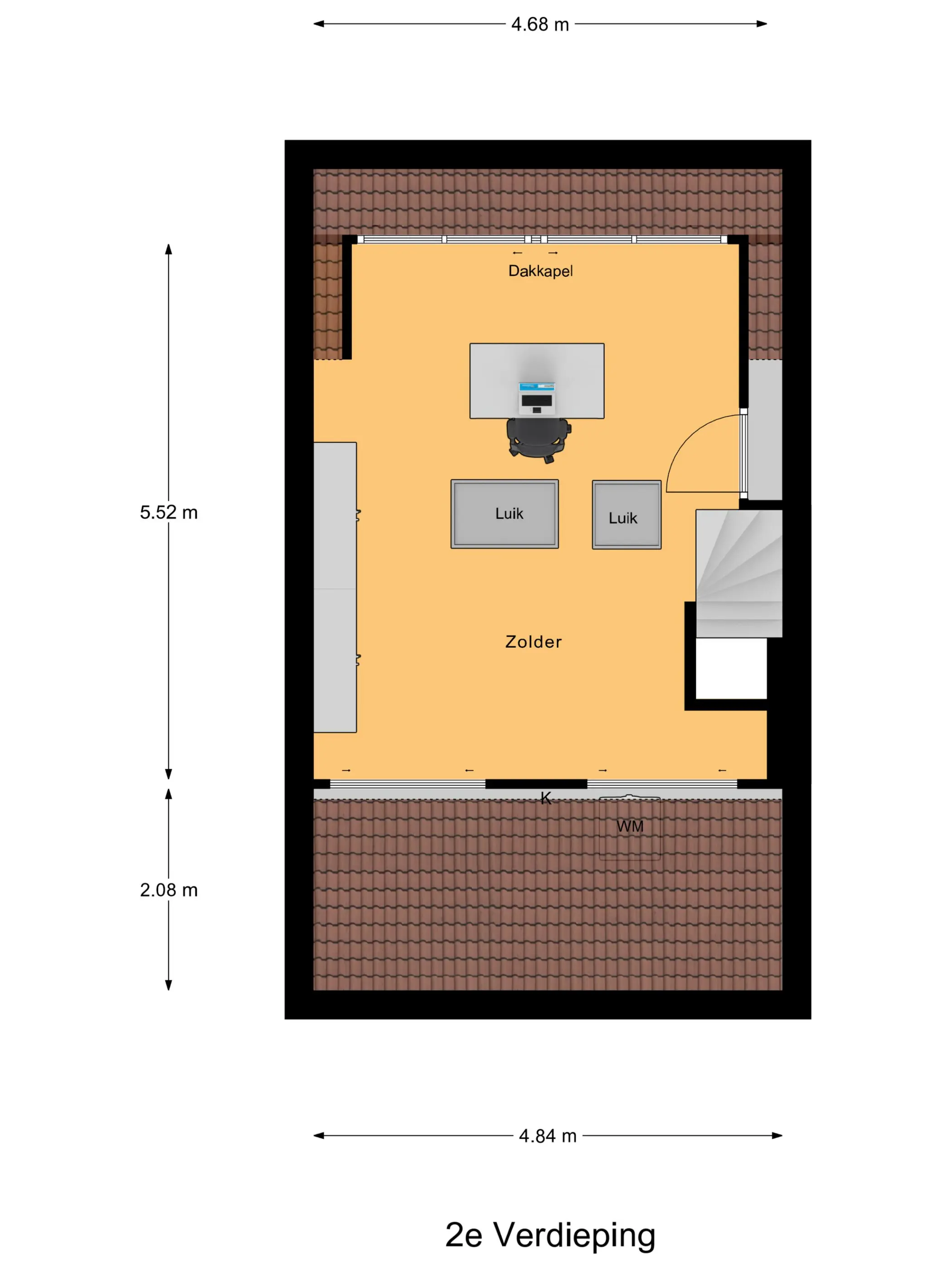 Tweede verdieping: Op deze verdieping bevindt zich een royale vierde slaapkamer met dakkapel, veel bergruimte en een praktisch keukenblok. Daarnaast is er een aparte ruimte met de Vaillant HR-combiketel (2019) en aansluitingen voor wasmachine en droger. Tevens is er een bergvliering aanwezig.