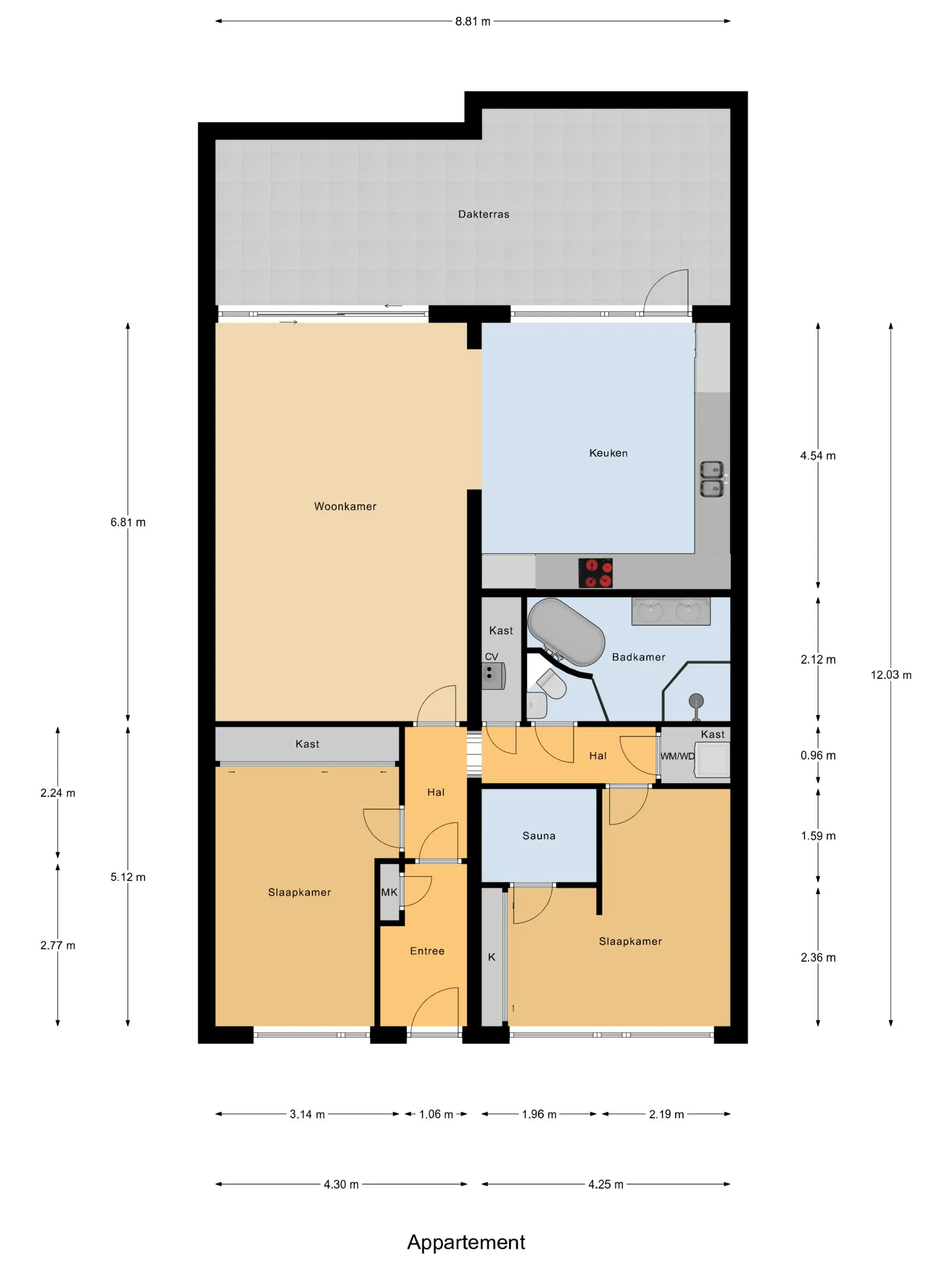 Het appartement heeft twee slaapkamers aan de galerijkant (noordzijde), waardoor het in de zomer heerlijk koel blijft. Beide slaapkamers beschikken over een vaste schuifwandkast, en de tweede slaapkamer tevens over een eigen sauna.
